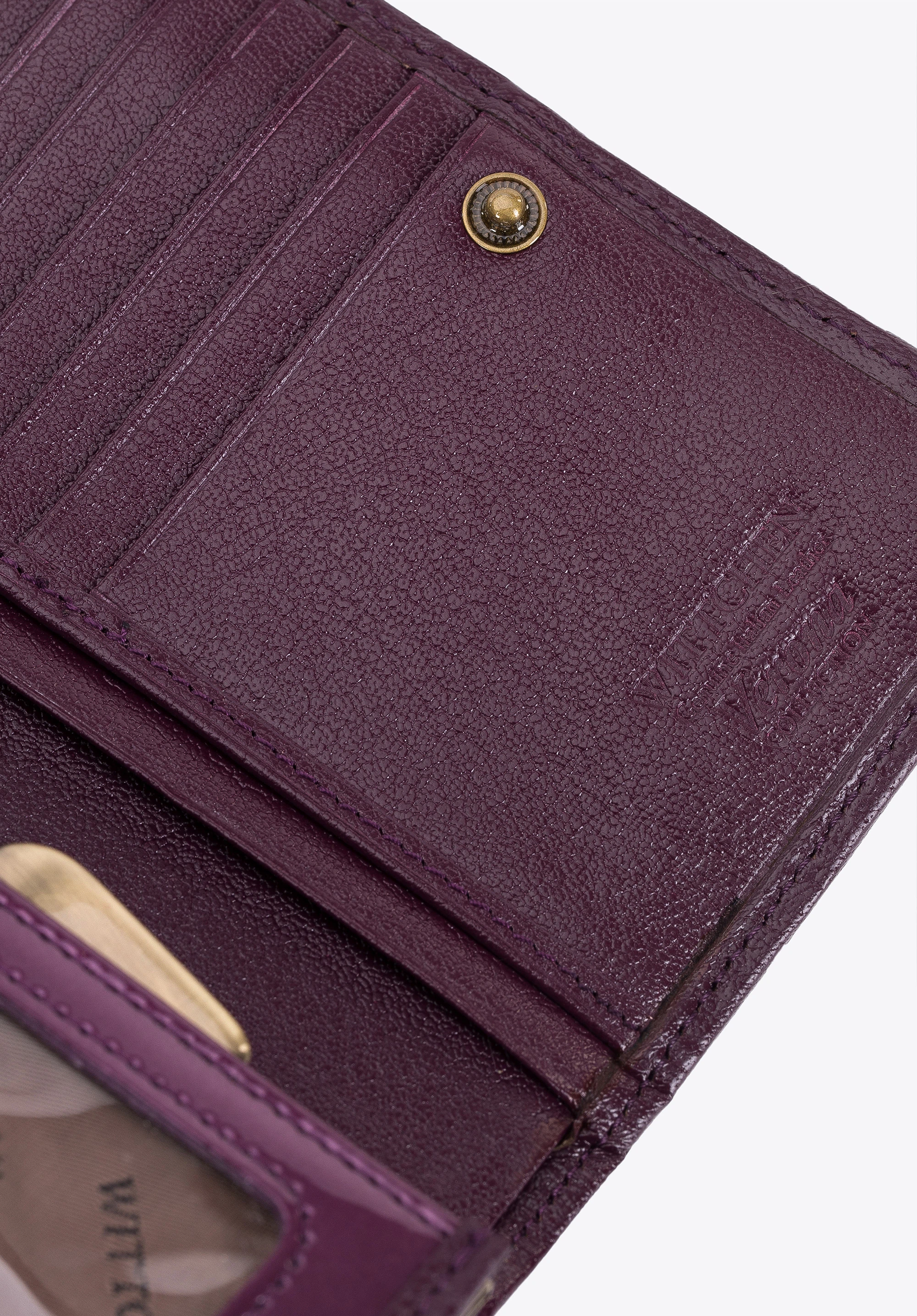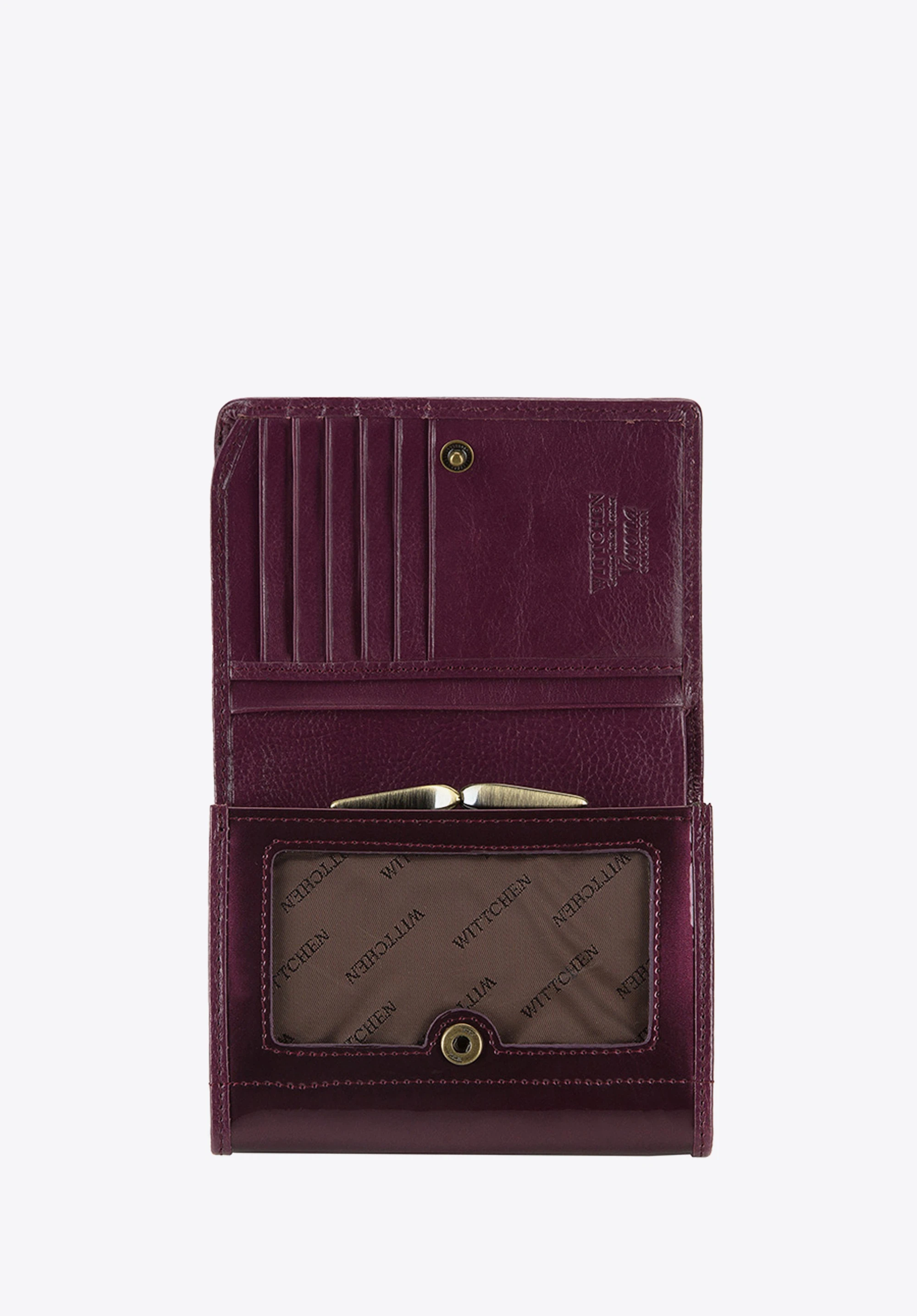 - portmonetka posiada zdobienie w postaci blaszki z herbem WITTCHEN w kolorze starego złota;