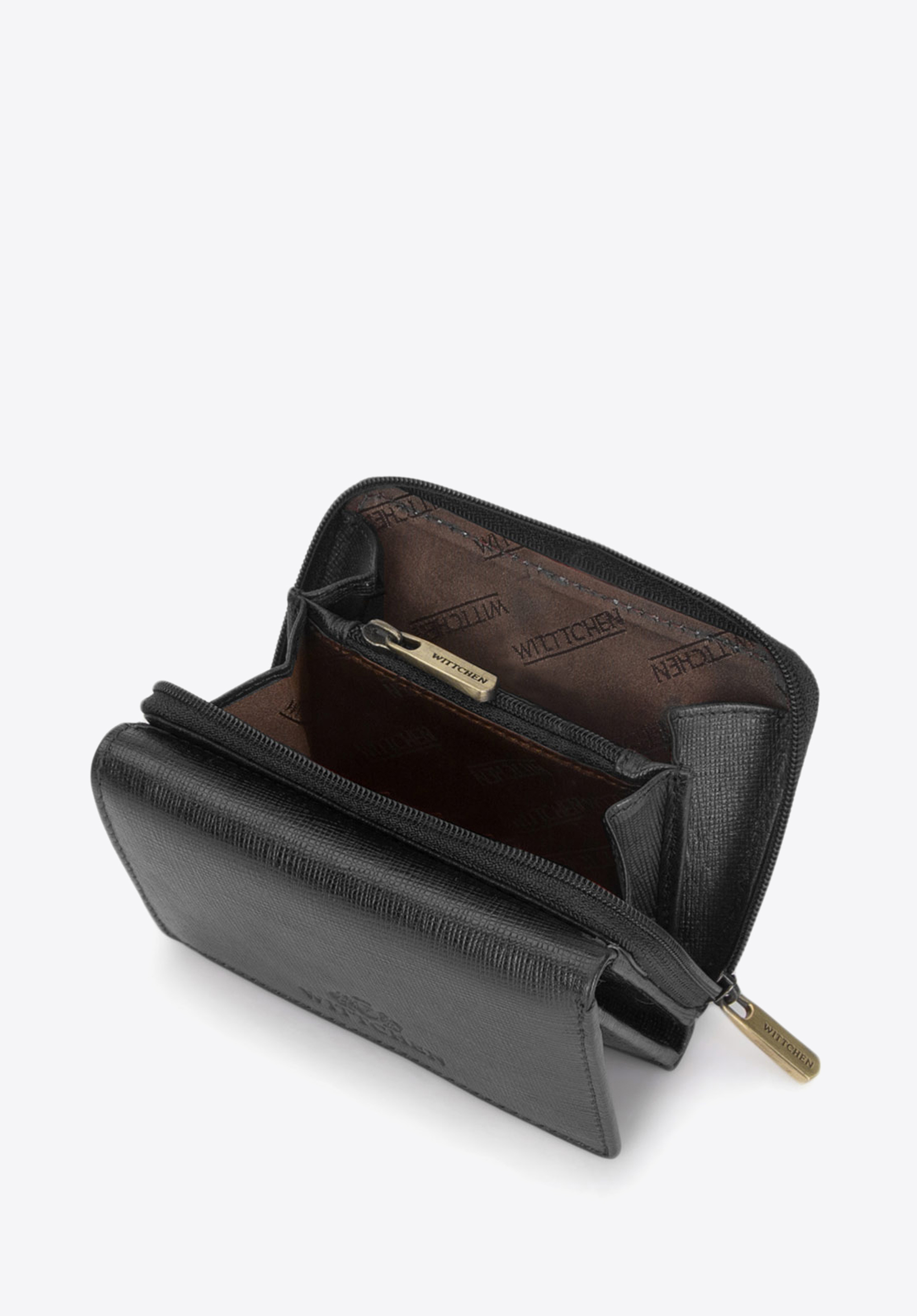 - portfel posiada zdobienie w postaci herbu WITTCHEN wytłoczonego w skórze;