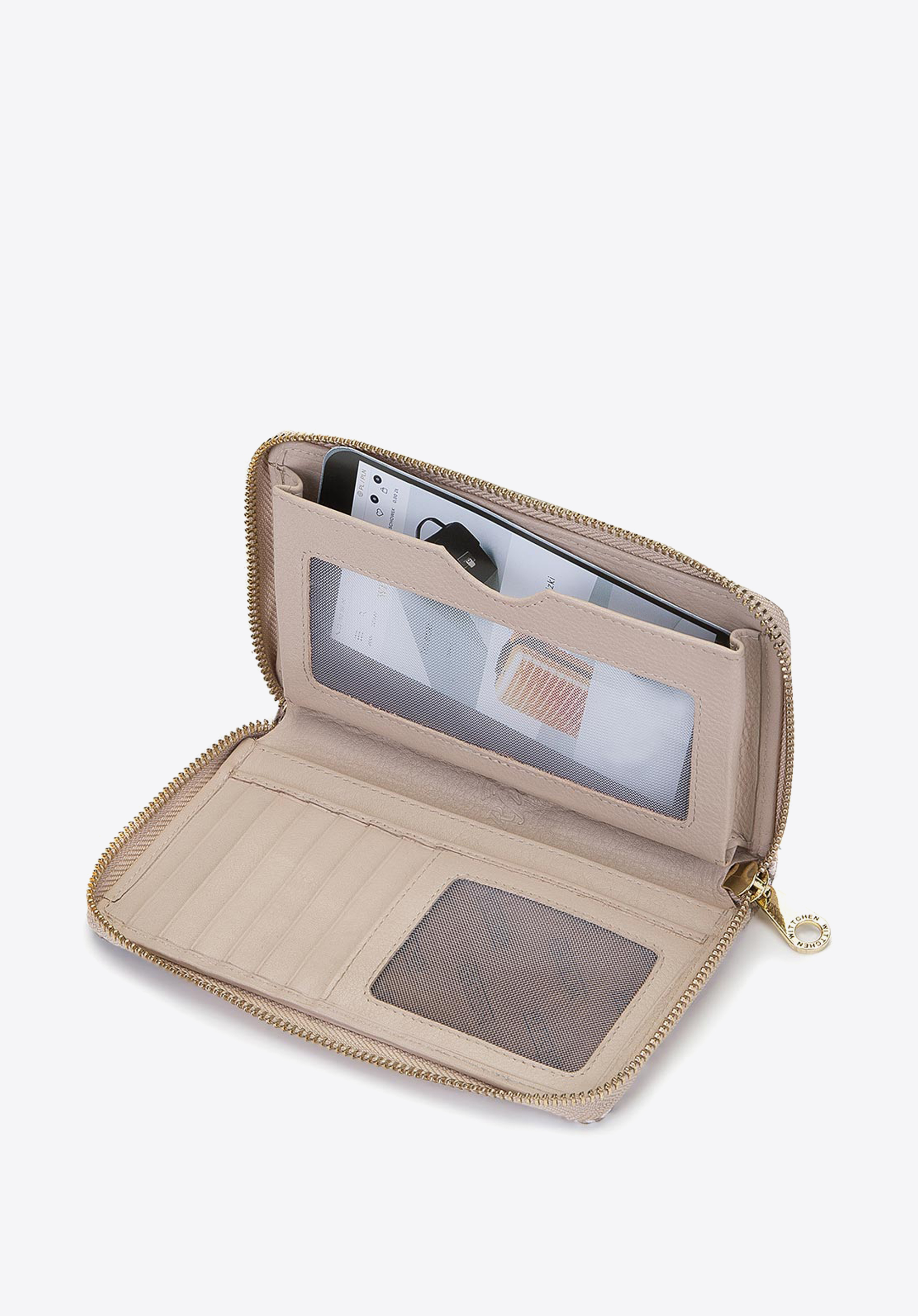 - kieszeń na bilon zamykana na suwak;