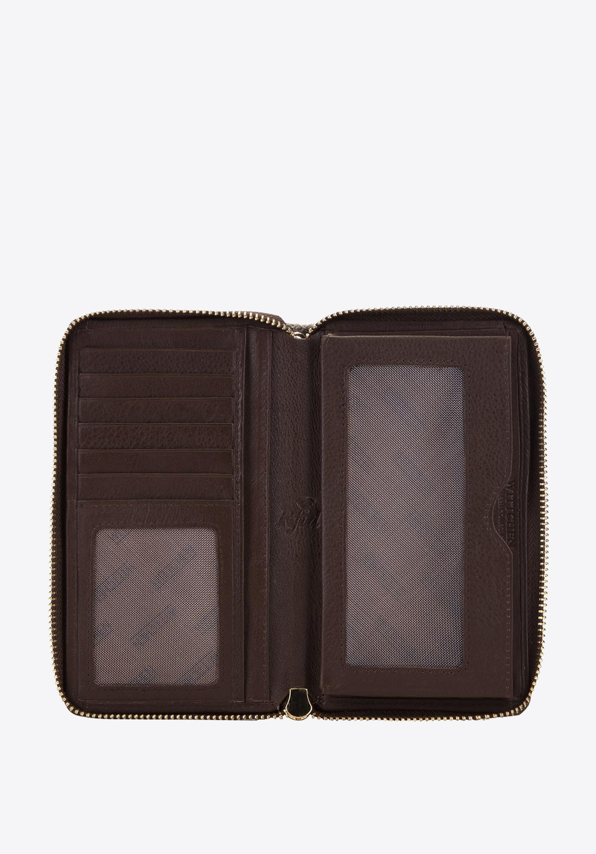 - portfel posiada zdobienie w postaci metalowej blaszki z logo WITTCHEN w kolorze żółtego złota;