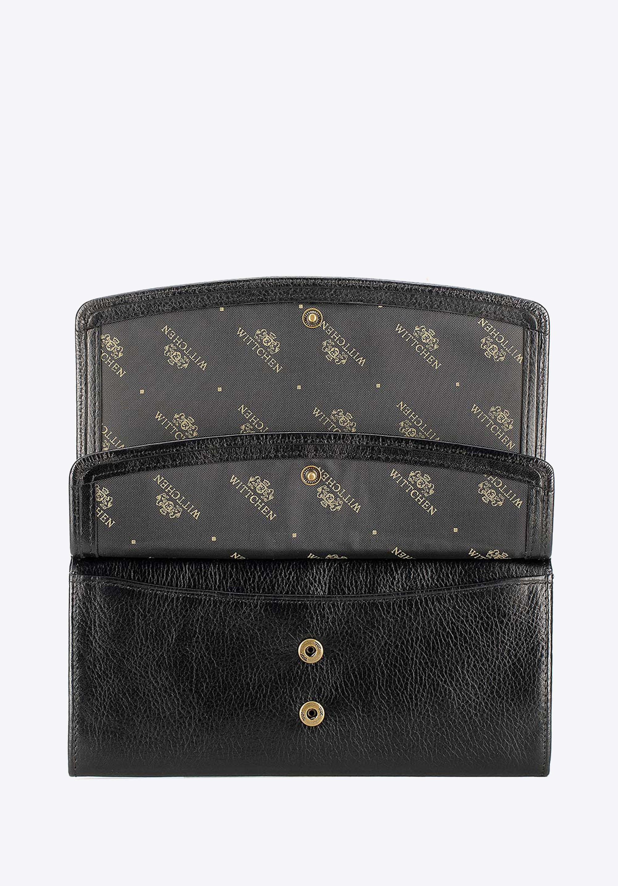 Damski portfel ze skóry z podwójnym zatrzaskiem będzie trafionym dodatkiem dla osób ceniących klasykę i pewne zamknięcie na co dzień. Wytrzymała skóra naturalna, przemyślany układ przegródek oraz ukryta kieszeń ułatwiają organizację banknotów, bilonu i kart w eleganckiej oprawie.