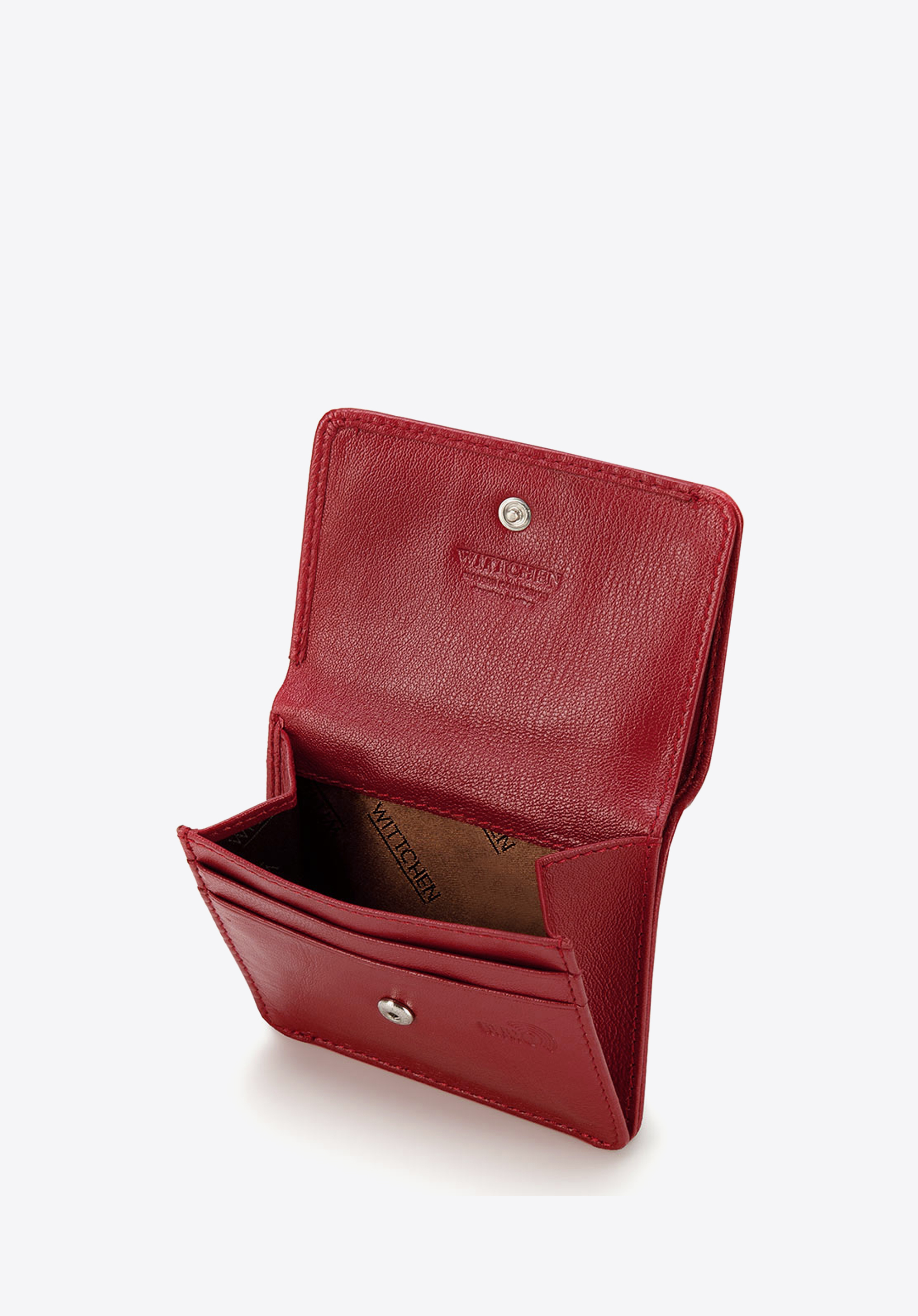 Lekki i zgrabny damski portfel, który pomieści to, co najważniejsze. Ma miejsce na bilon, banknoty i dwie karty. Dzięki niewielkiemu rozmiarowi jest bardzo poręczny i nie zajmie wiele miejsca w torebce, nawet małej. Zapina się go wygodnie na zatrzask. Ma prosty design i kształt kwadratu. Został uszyty z najwyższej jakości skóry naturalnej, która jest nie tylko przyjemna w dotyku, ale i trwała. Portfel ma podszewkę RFID, która chroni Twoje karty przed kradzieżą danych. Zdobi go dyskretne tłoczenie z logo WITTCHEN. To także świetny pomysł na prezent – jest zapakowany w eleganckie pudełko.
