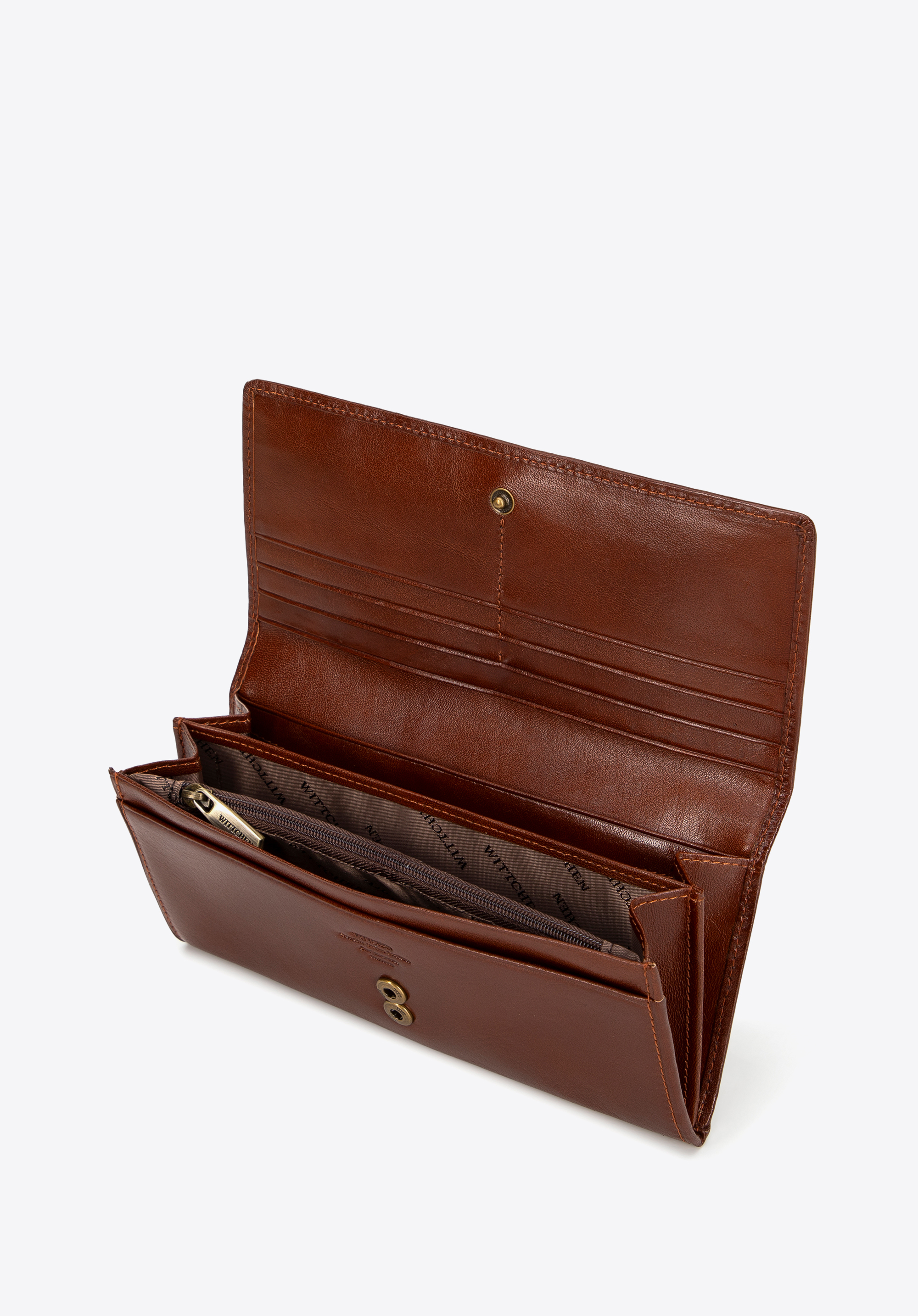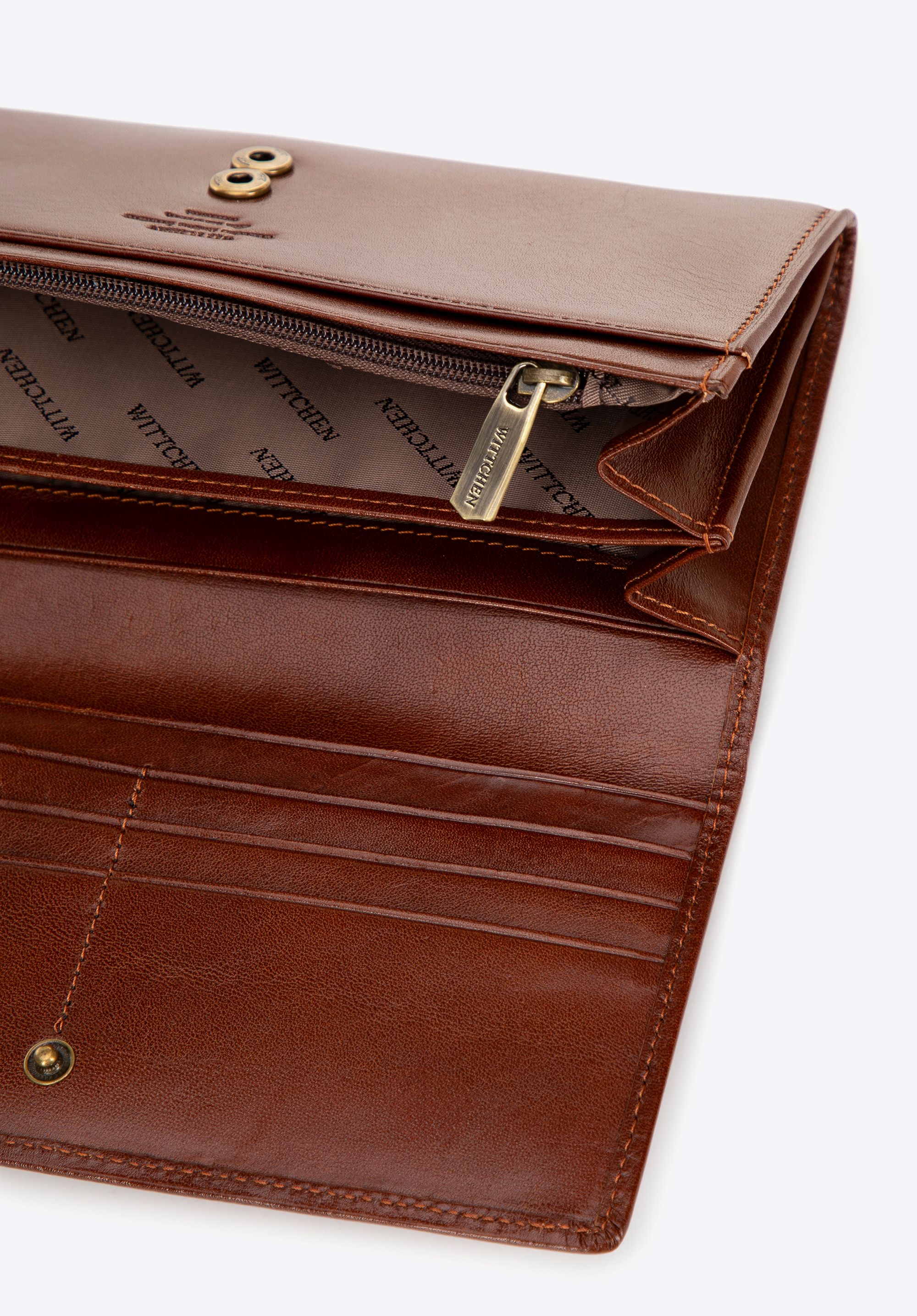 - Eleganckie wykończenie: Ozdobiony metalową blaszką z herbem WITTCHEN w kolorze starego złota, nadaje portfelowi wyjątkowego charakteru.