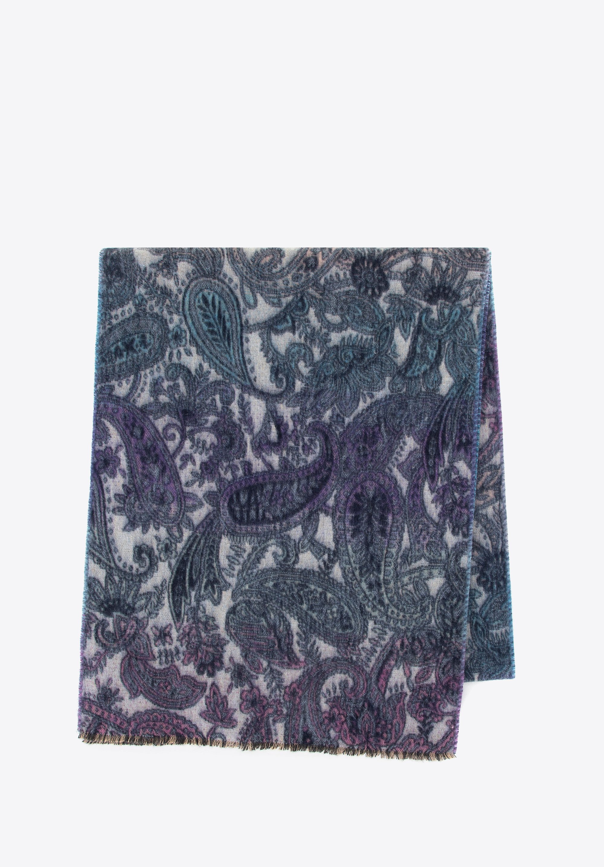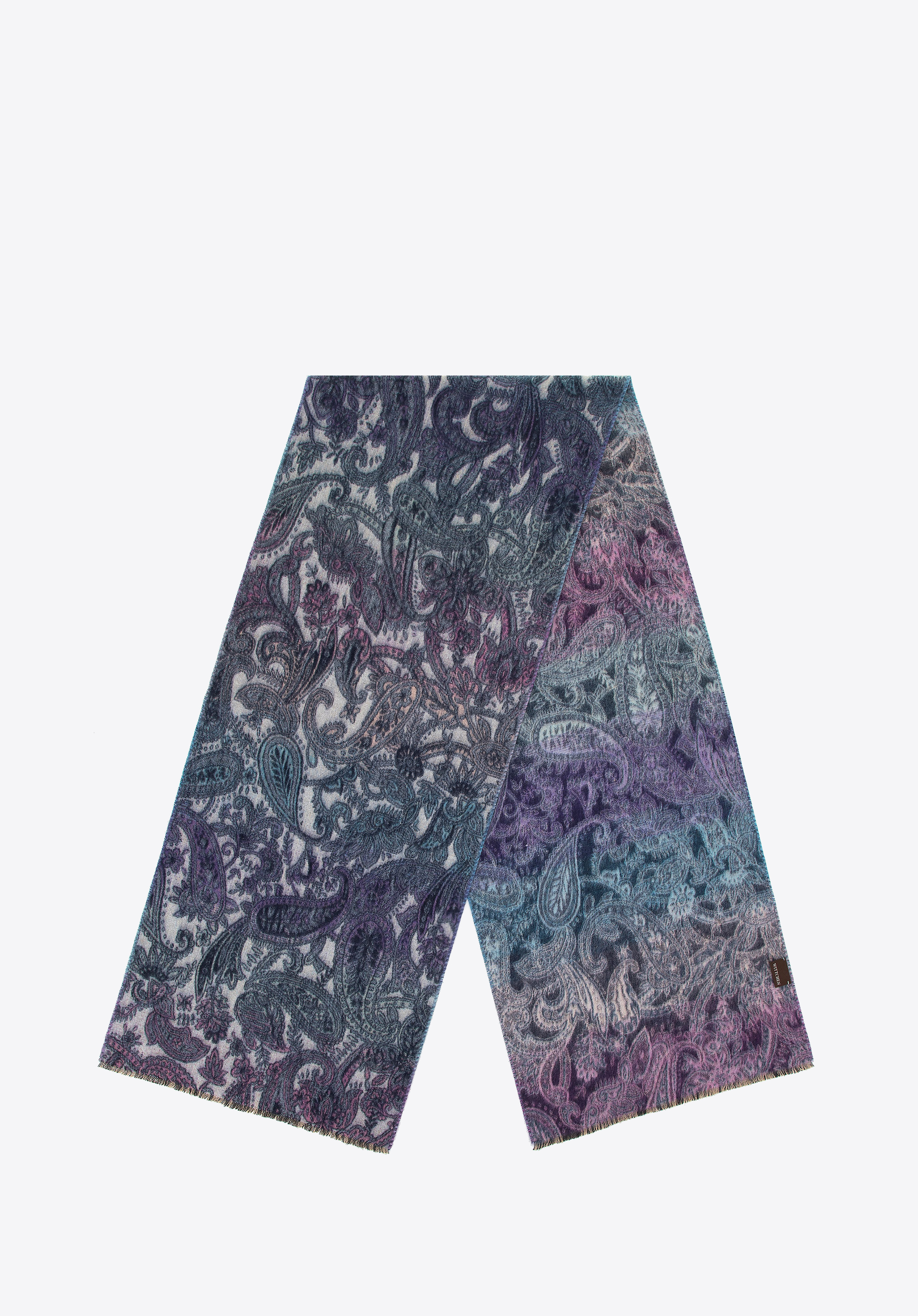 - Ponadczasowy motyw paisley: Orientalny wzór dodaje elegancji i wyrazistości każdej stylizacji, czyniąc szal wyjątkowym akcesorium.