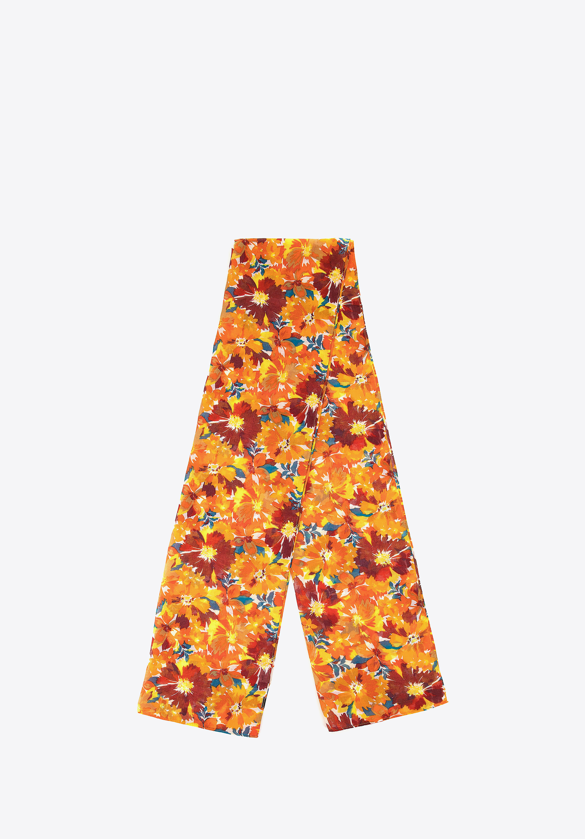 - Design: Kwiatowy motyw, z delikatnymi, ale wyrazistymi akcentami, nadaje całej stylizacji świeżości i lekkości. Dzięki precyzyjnie zaprojektowanemu wzorowi, szal przyciąga wzrok i staje się wyrazistym elementem każdego outfitu.