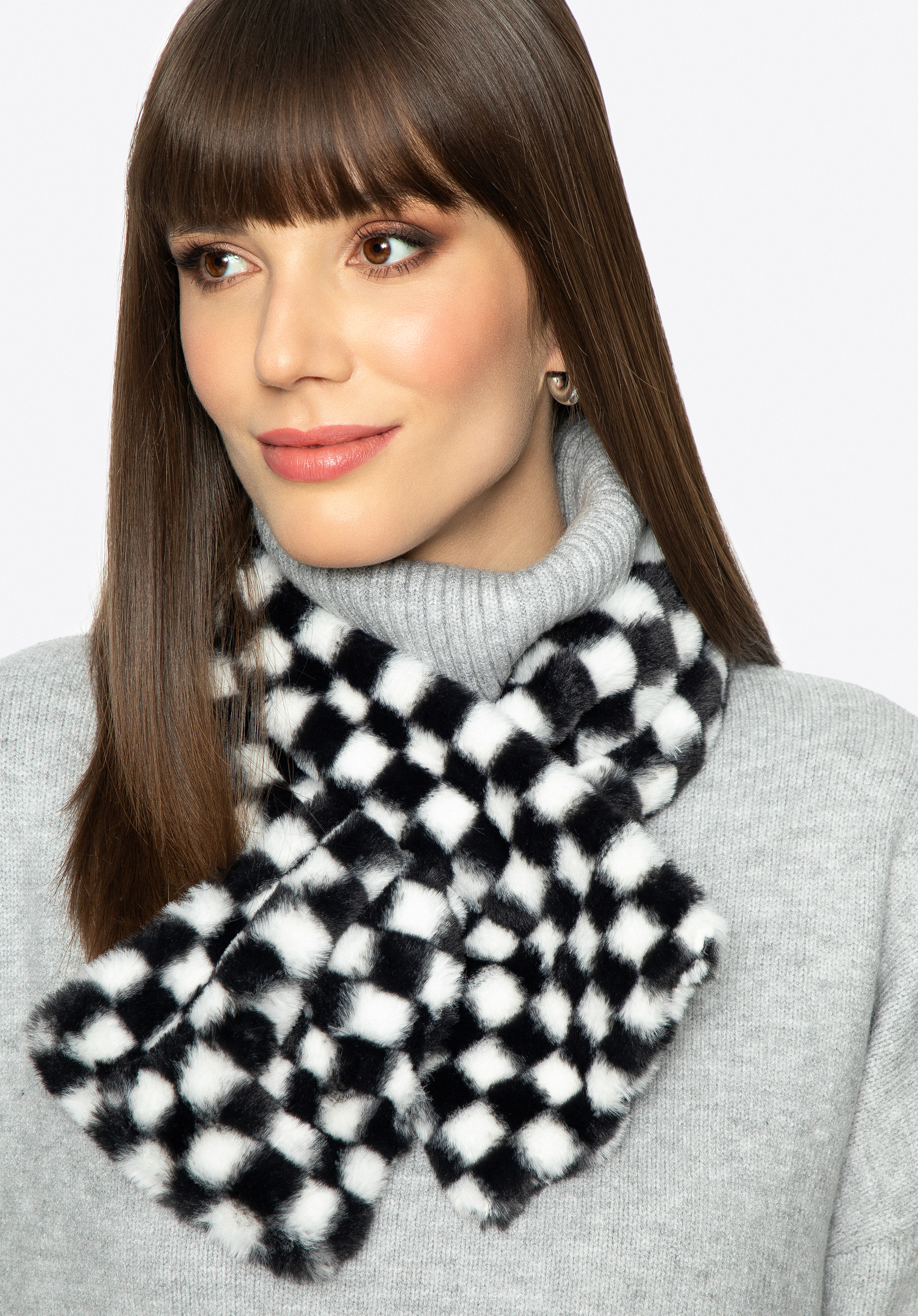 Damski szal ze sztucznego futerka w kratkę to wyjątkowy dodatek, który warto mieć w swojej szafie.