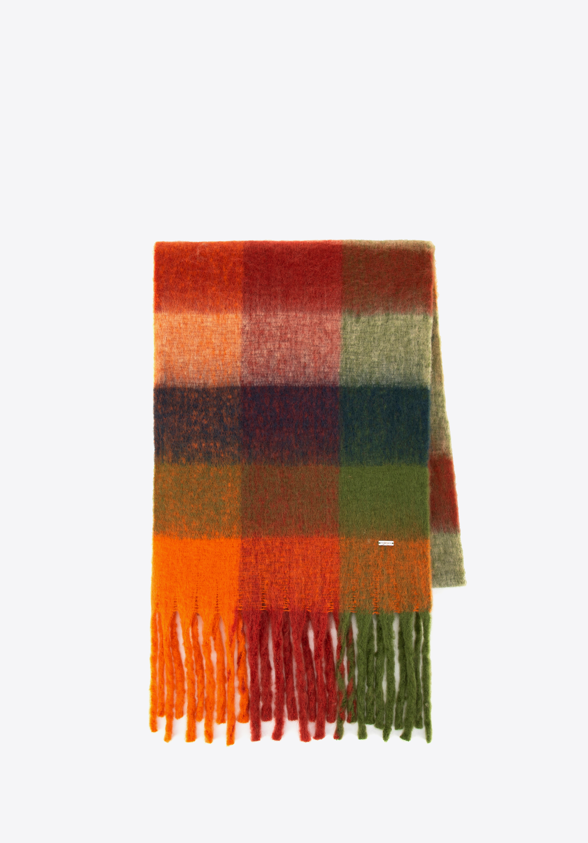 Damski szalik w wielokolorową kratkę sprawdzi się w sezonie jesienno-zimowym, gdy chcesz ożywić minimalistyczny płaszcz lub kurtkę i dodać stylizacji miękkiego, przytulnego wykończenia. Puszysta faktura, duży format i frędzle pozwalają układać go na wiele sposobów, a wielobarwna krata tworzy efekt dopracowanego akcentu bez wysiłku.