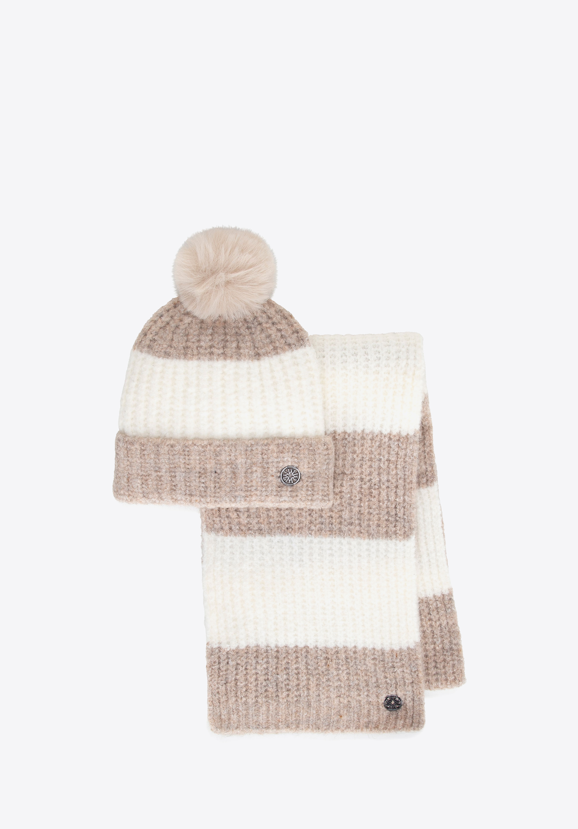 Damski zestaw zimowy z dodatkiem wełny kremowo - beżowy