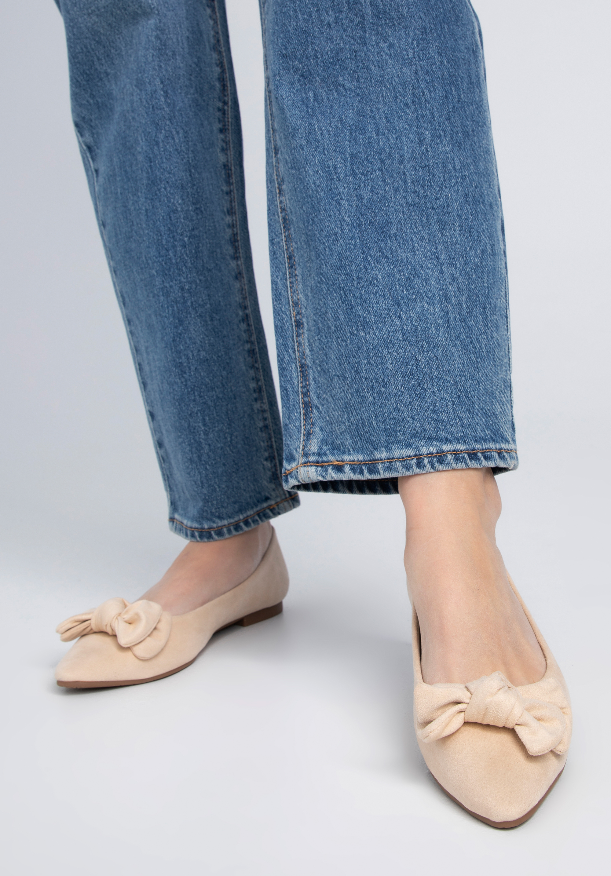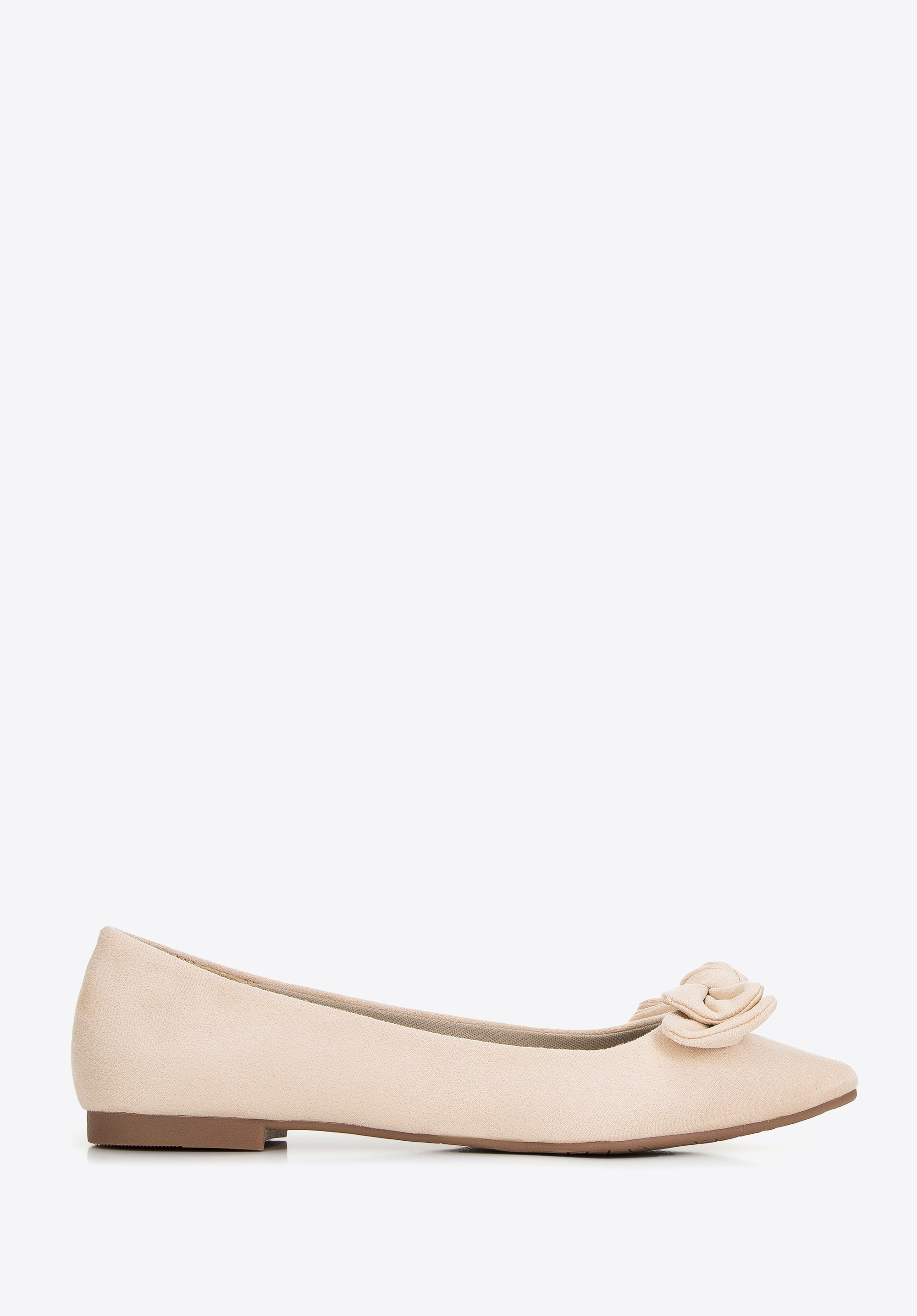 wykonany z przyjemnego w dotyku ekozamszu. Nosek w szpic zdobi duża, pełna uroku kokarda. Dzięki wygodnej, miękkiej wkładce komfortowo przechodzisz w niech przez wiele godzin. Te buty będą idealne do pracy, do kina, czy na wyjście z przyjaciółmi. Możesz je założyć na przykład do sukienki midi w wersji eleganckiej lub dżinsów i koszuli na co dzień.