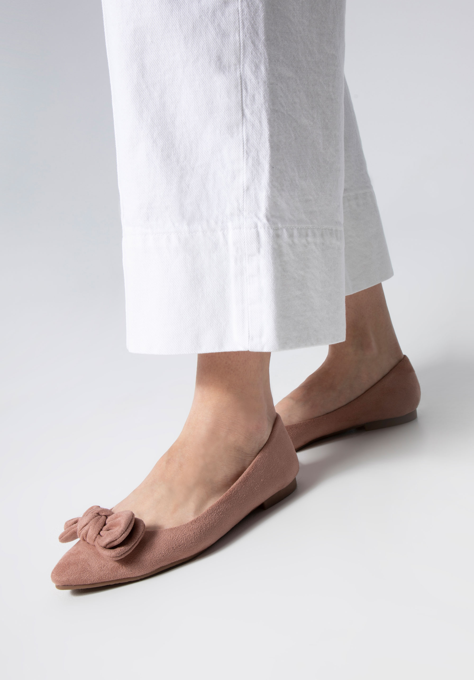 wykonany z przyjemnego w dotyku ekozamszu. Nosek w szpic zdobi duża, pełna uroku kokarda. Dzięki wygodnej, miękkiej wkładce komfortowo przechodzisz w niech przez wiele godzin. Te buty będą idealne do pracy, do kina, czy na wyjście z przyjaciółmi. Możesz je założyć na przykład do sukienki midi w wersji eleganckiej lub dżinsów i koszuli na co dzień.