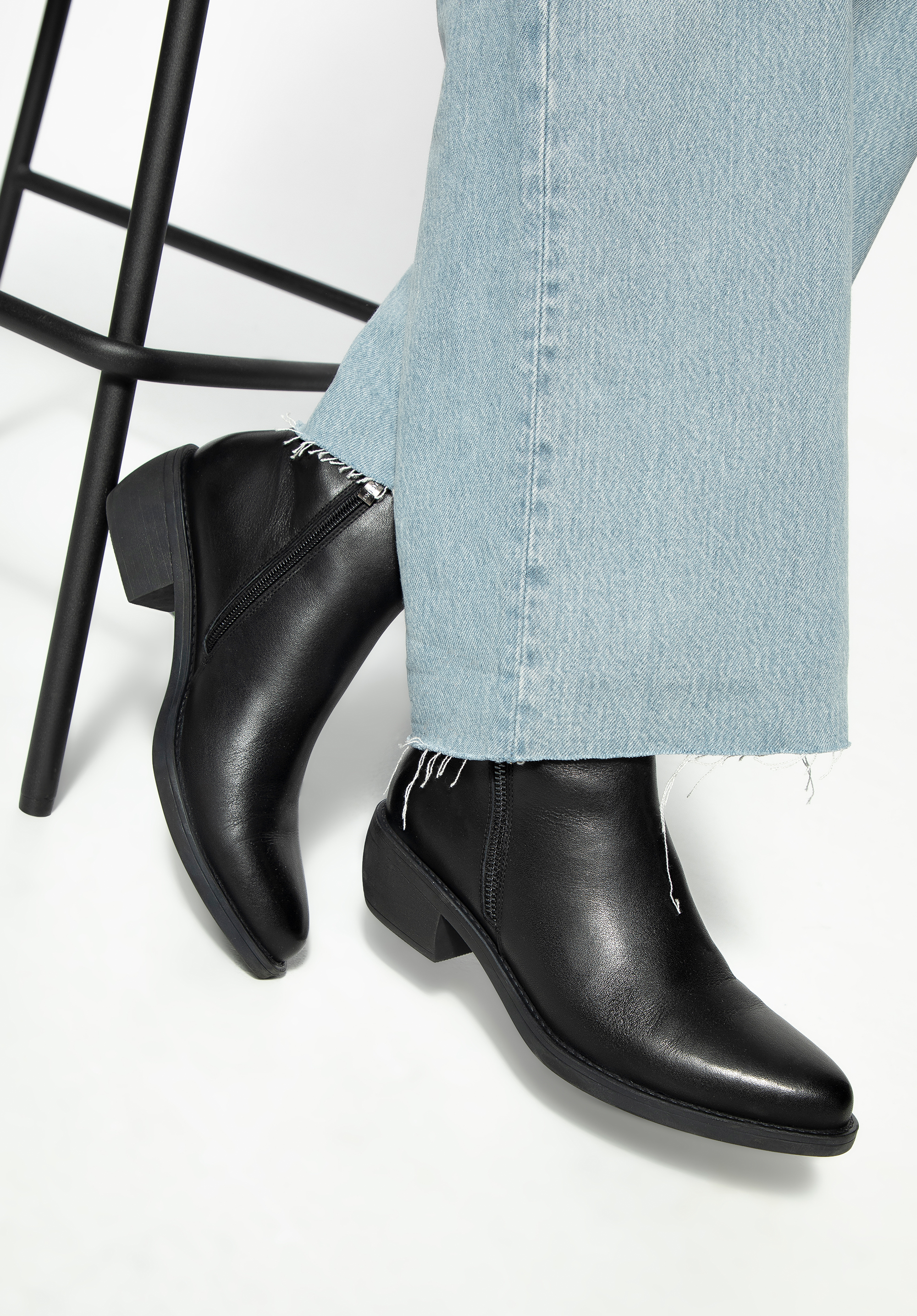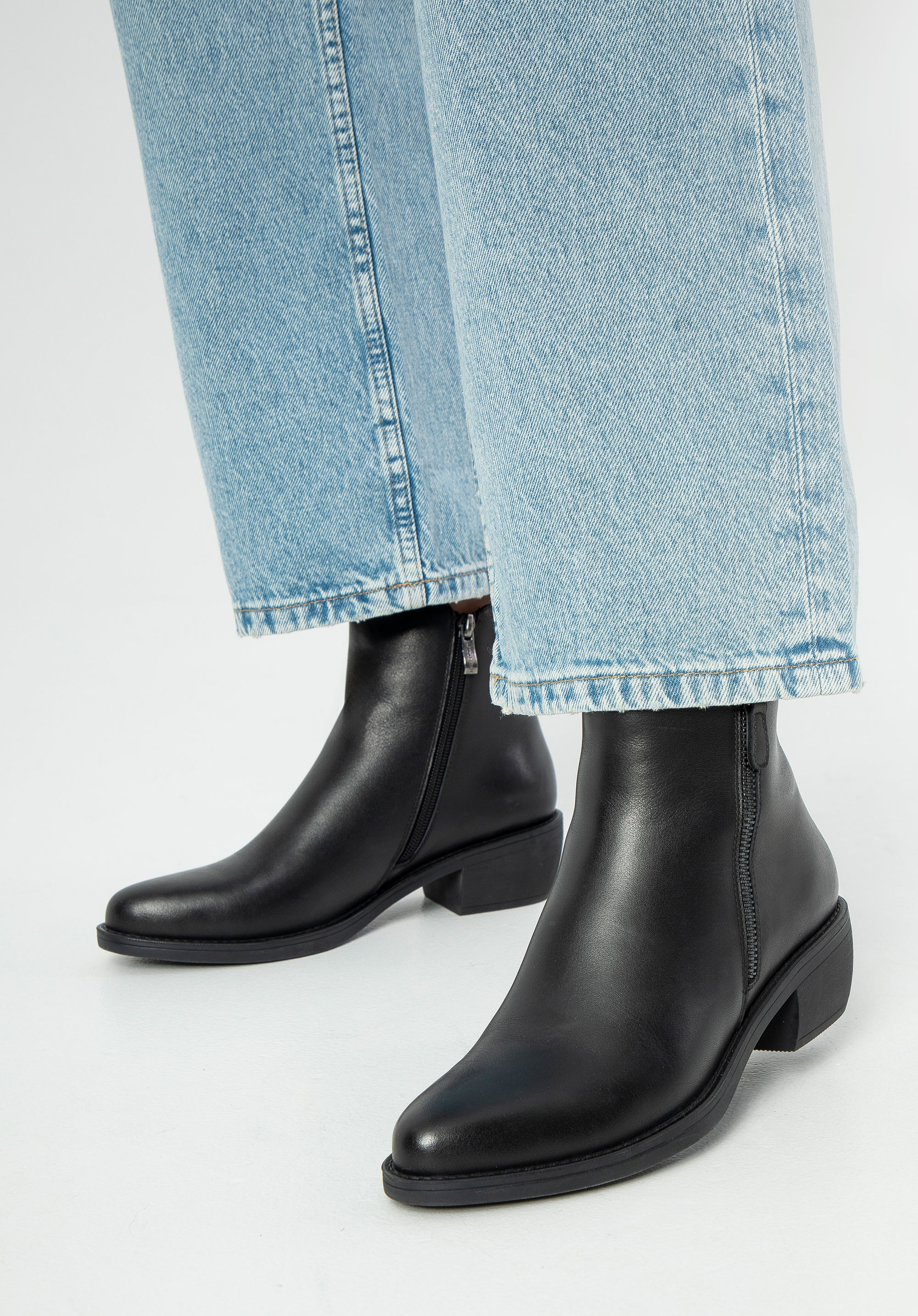 Damskie botki skórzane klasyczne czarne