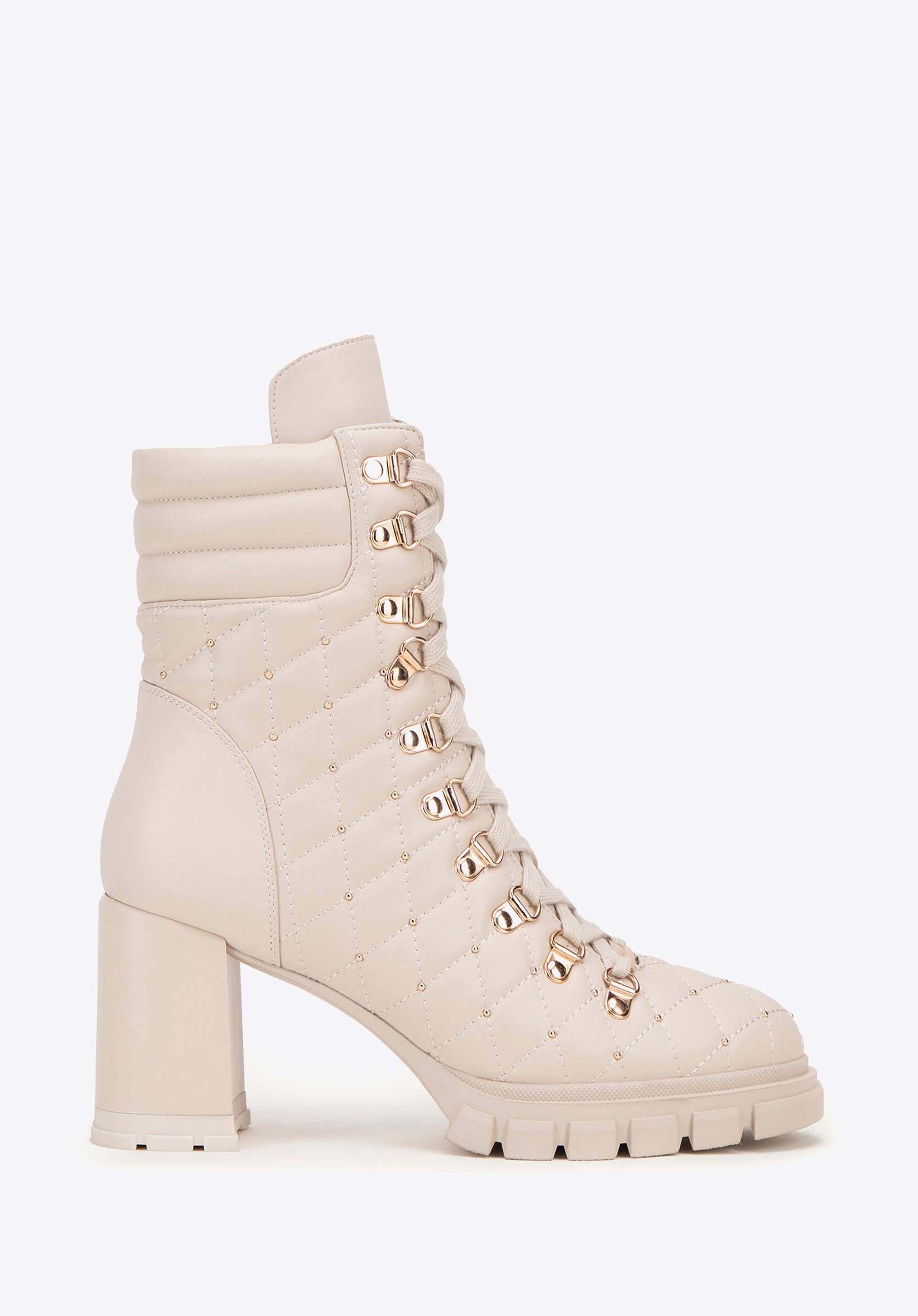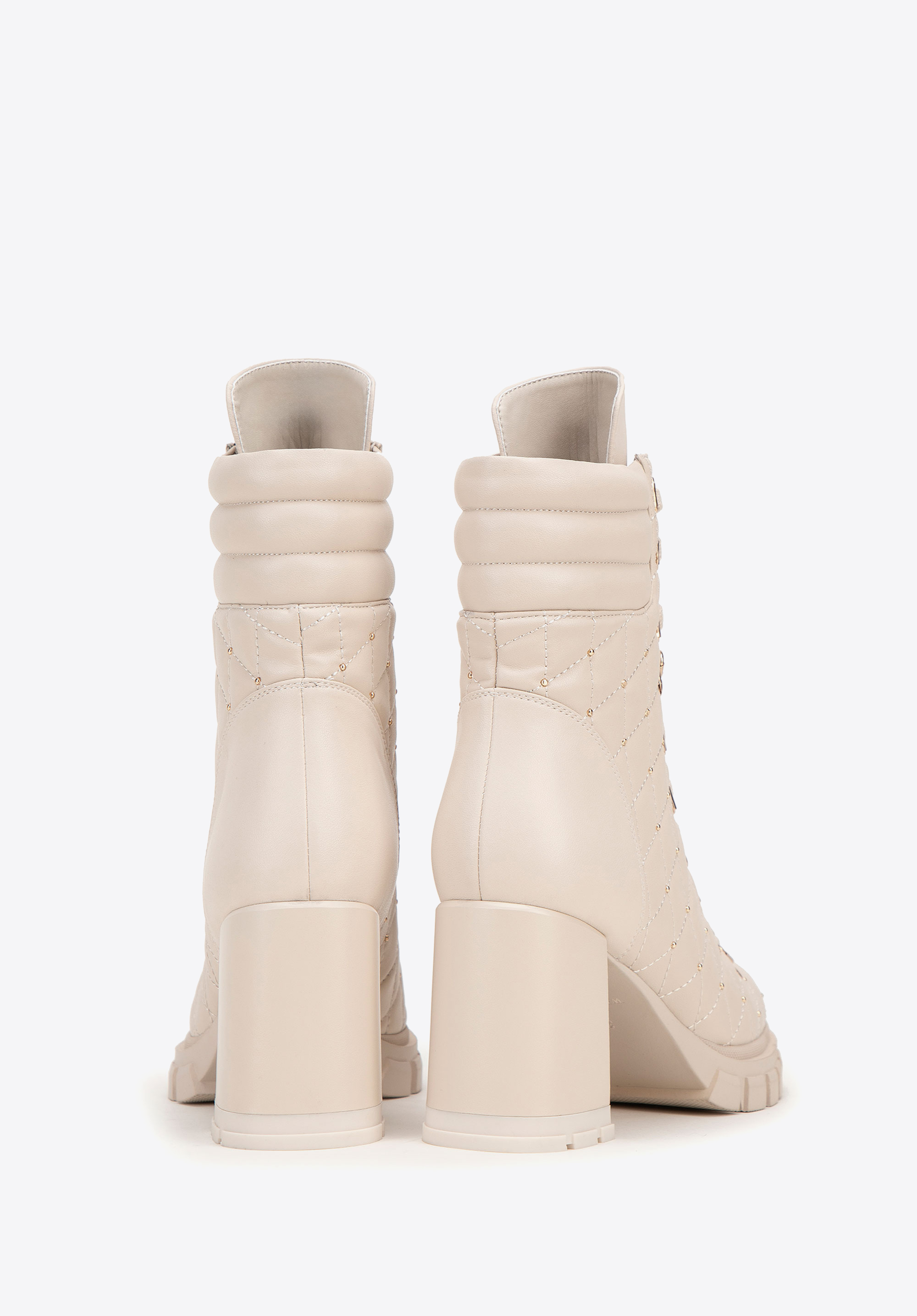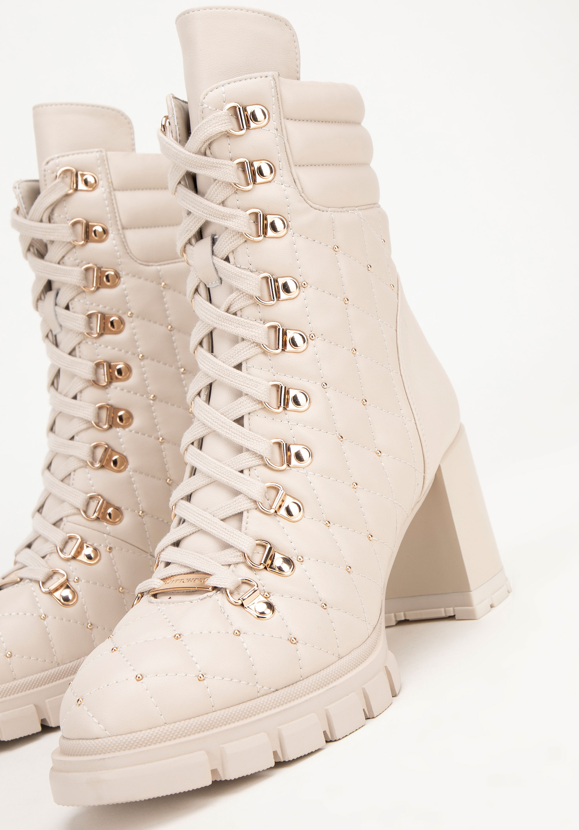 - Design: Nowoczesny i elegancki design z pikowaną wstawką, która nadaje butom unikalny charakter. Dodatkowo dekoracyjne błyszczące jety przy pikowaniu subtelnie podkreślają ich luksusowy wygląd.