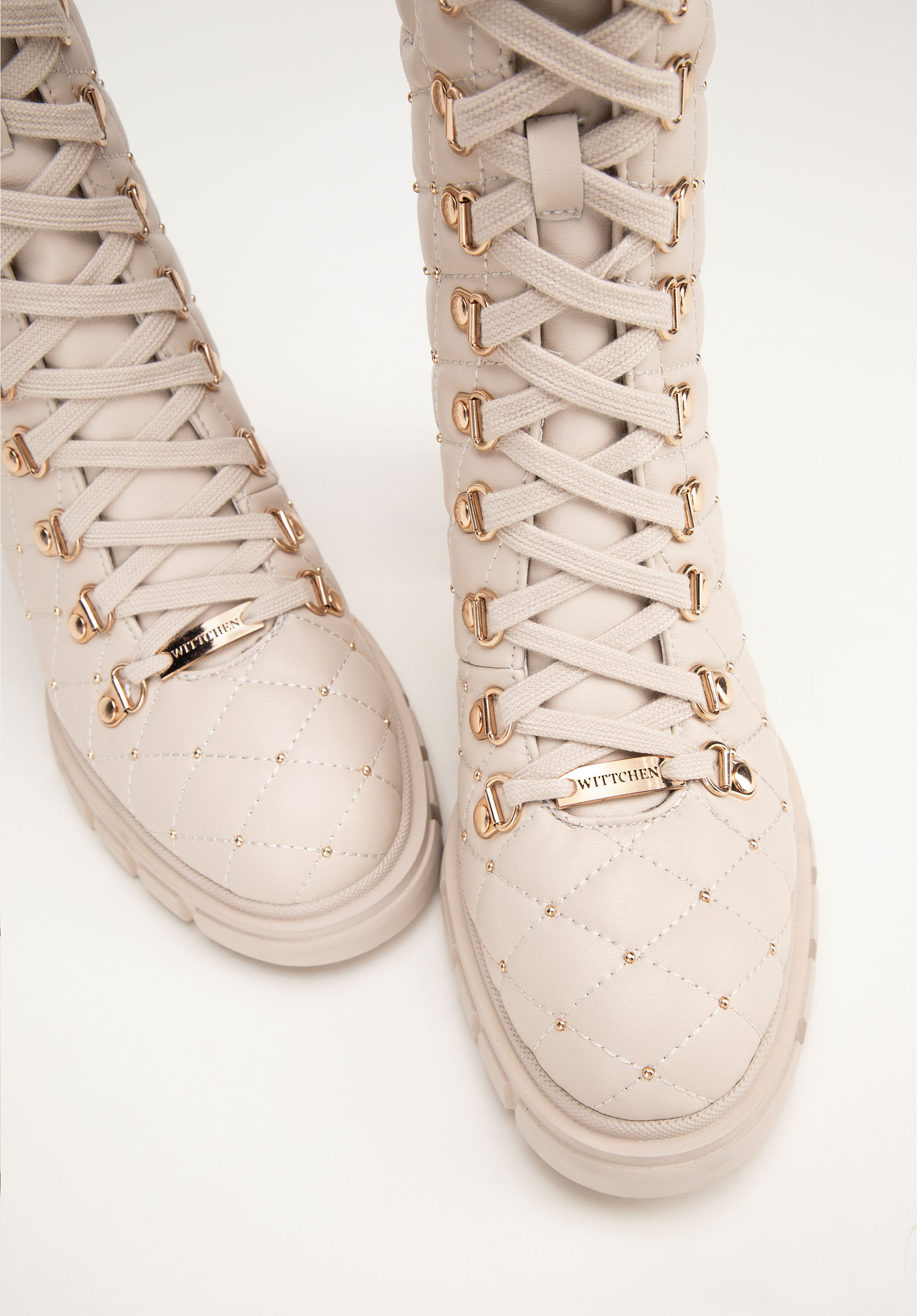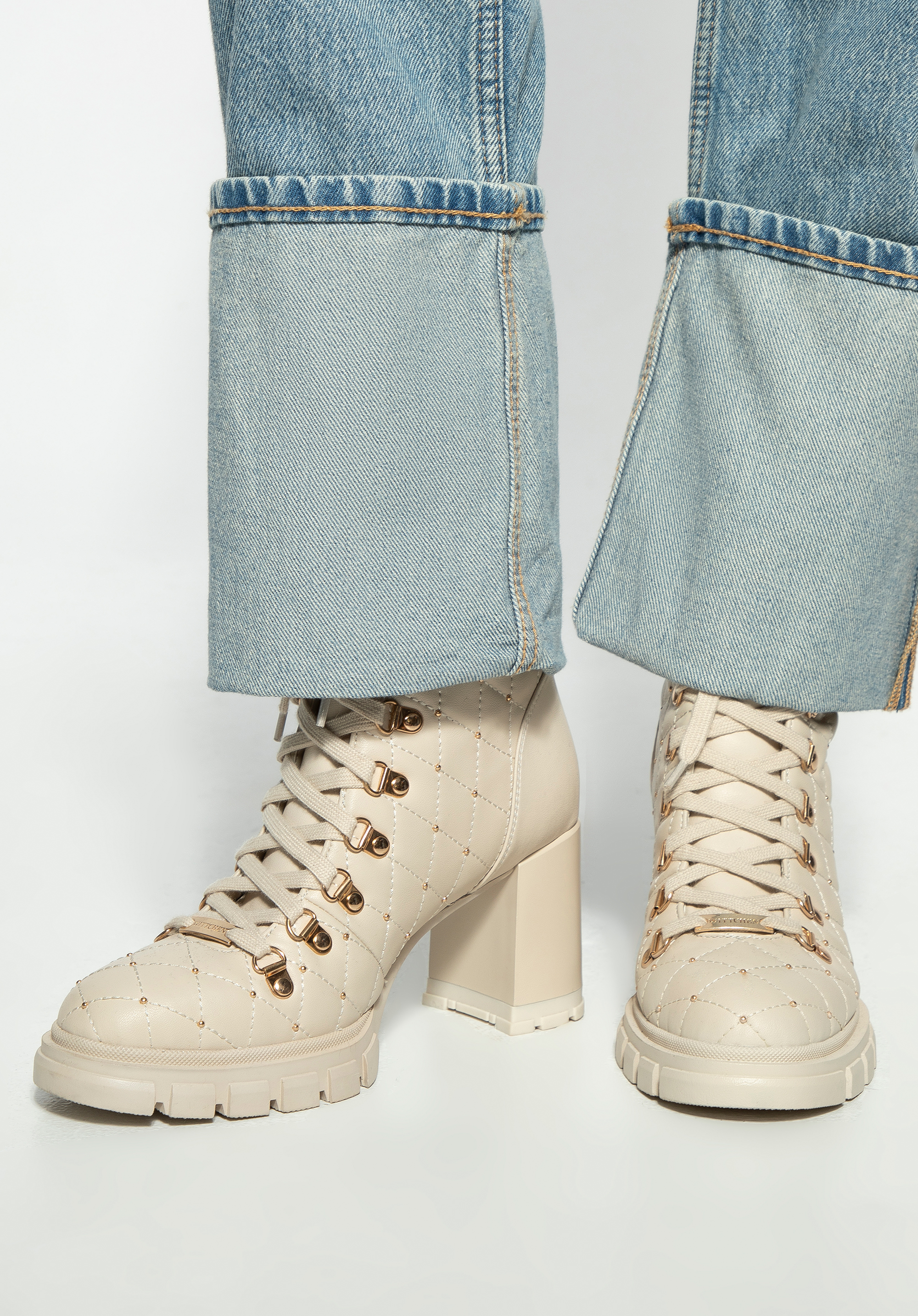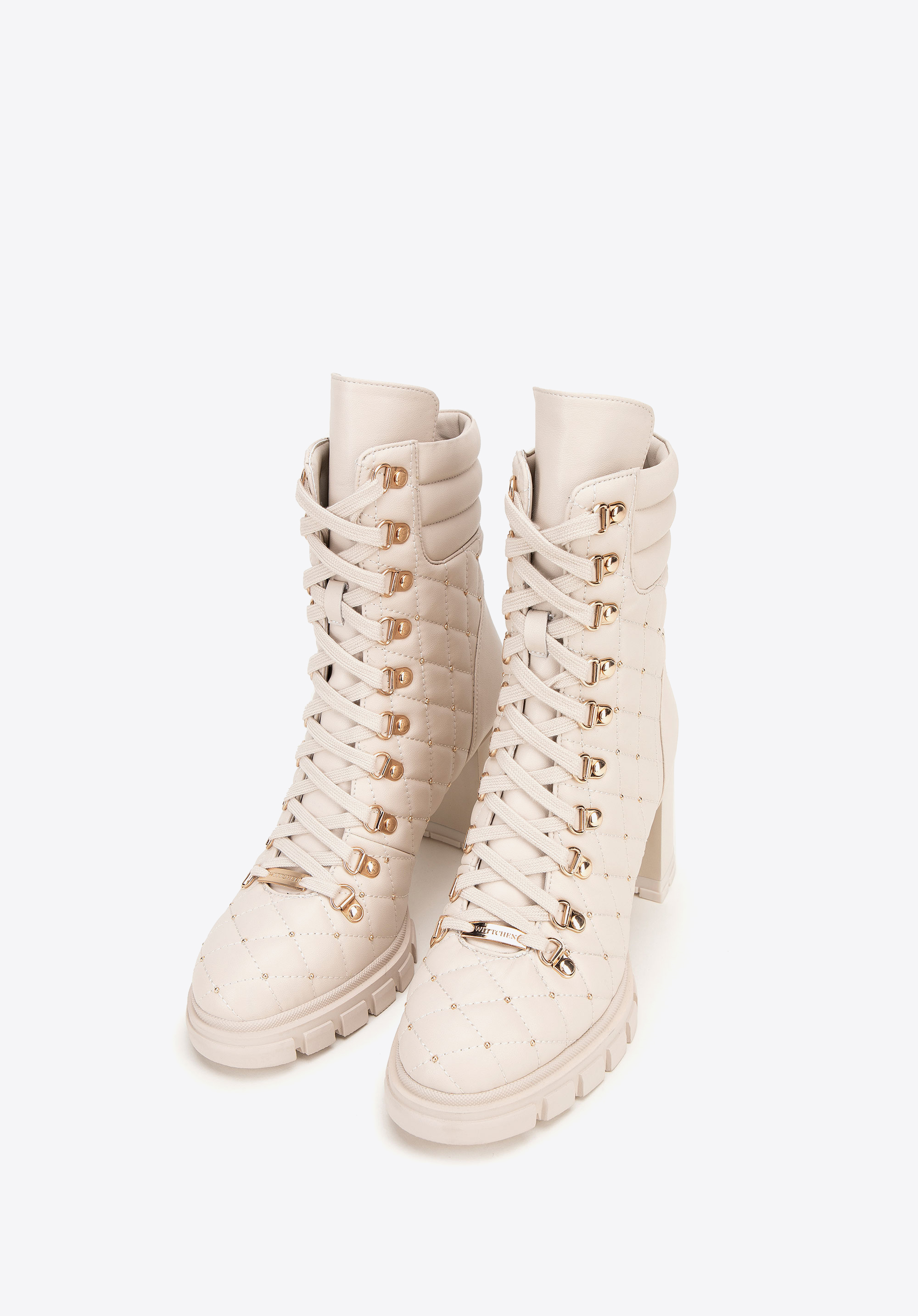 - Design: Nowoczesny i elegancki design z pikowaną wstawką, która nadaje butom unikalny charakter. Dodatkowo dekoracyjne błyszczące jety przy pikowaniu subtelnie podkreślają ich luksusowy wygląd.