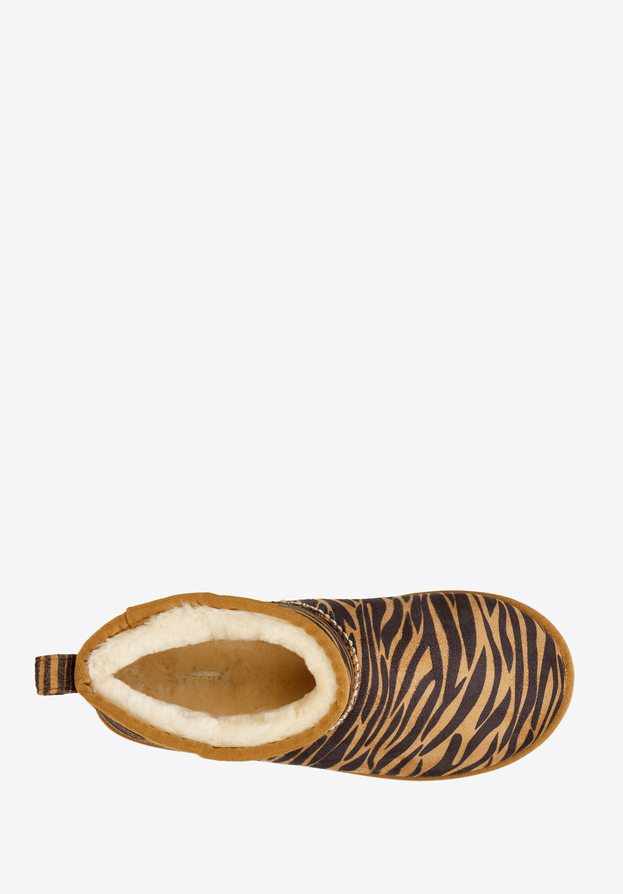 Wnętrze wyścielone sztucznym futerkiem miękko otuli Twoją stopę. Możesz je nosić je z dopasowanymi spodniami i oversizowym swetrem lub odmienić charakter ulubionej minisukienki. Krótkie