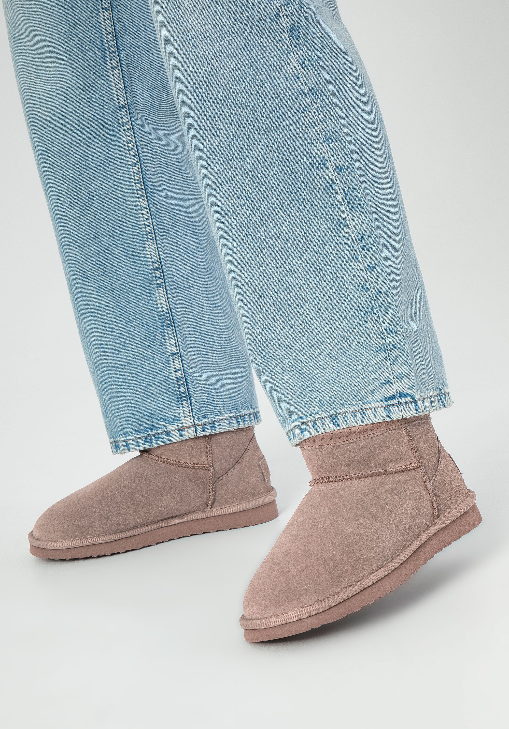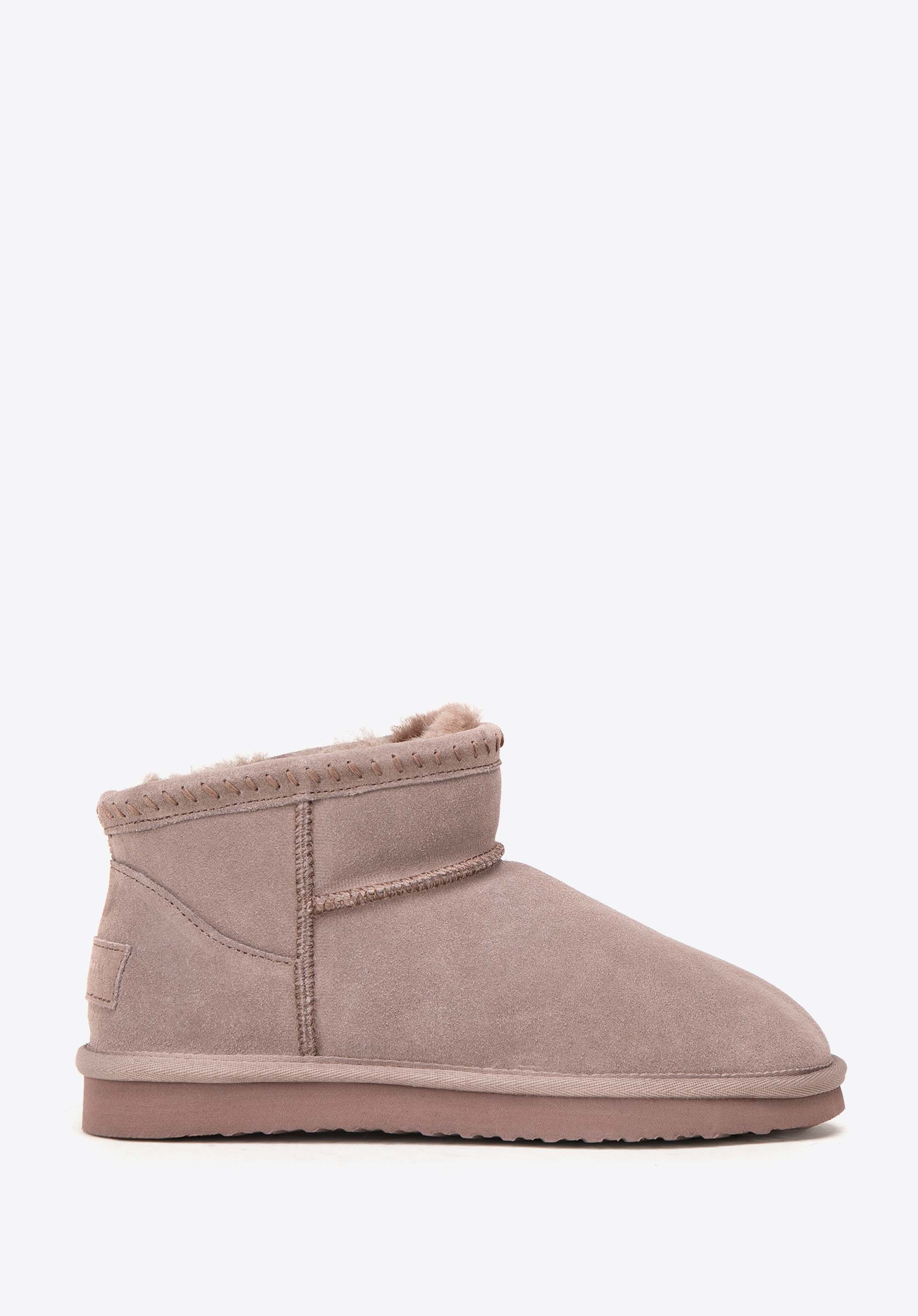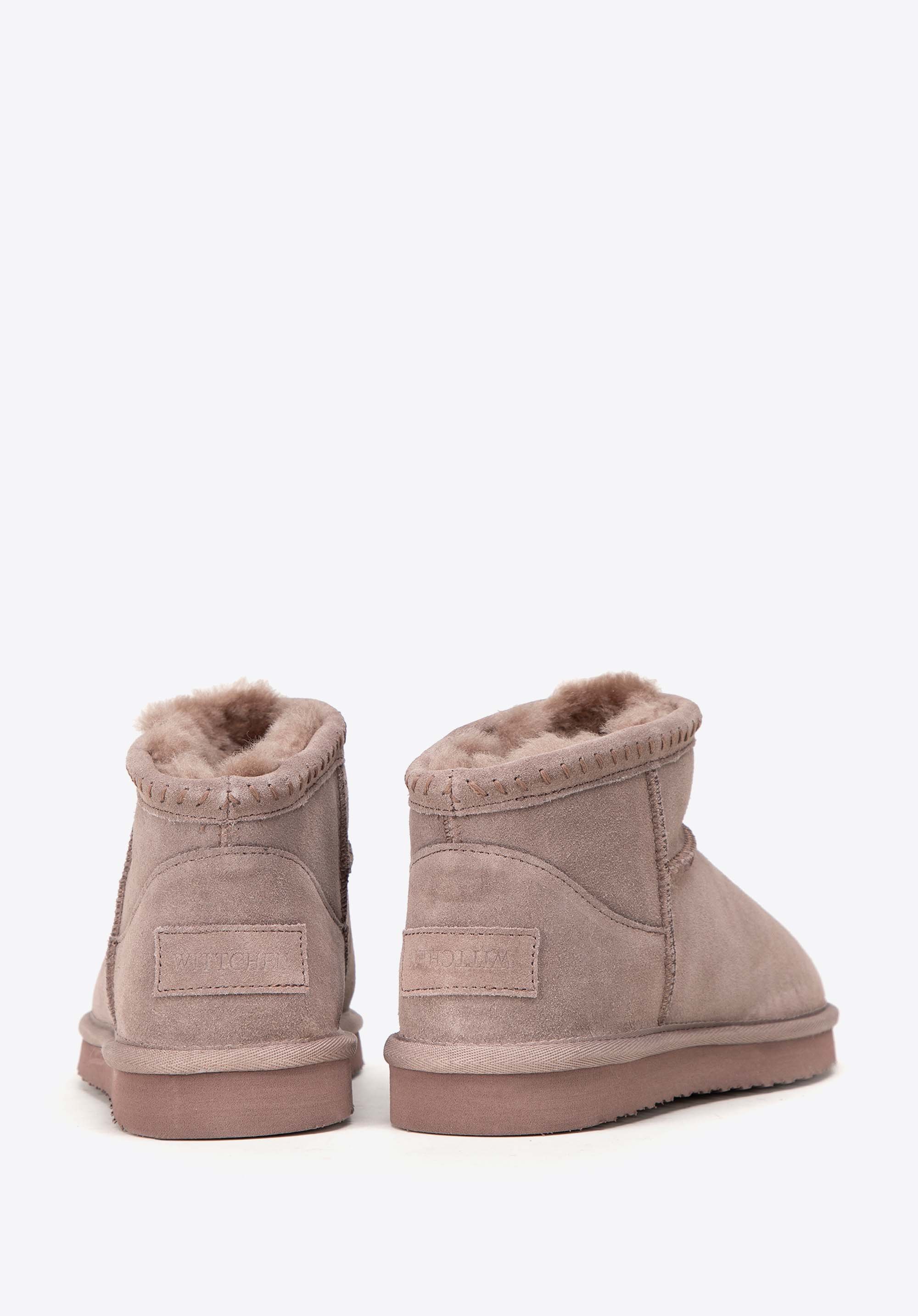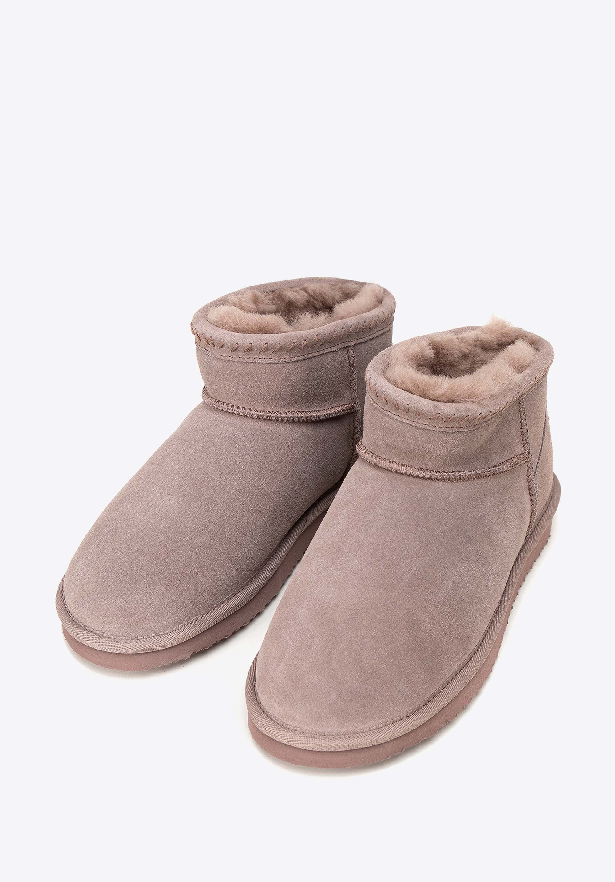 Damskie botki zamszowe z wełną beżowe