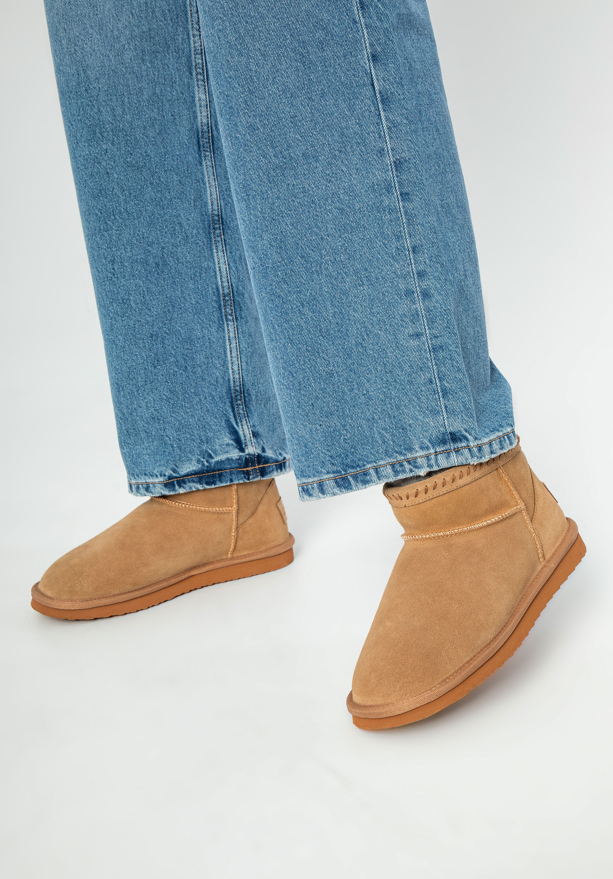 - Design: Futrzane wnętrze i dekoracyjne szwy nadają butom wyjątkowy charakter.