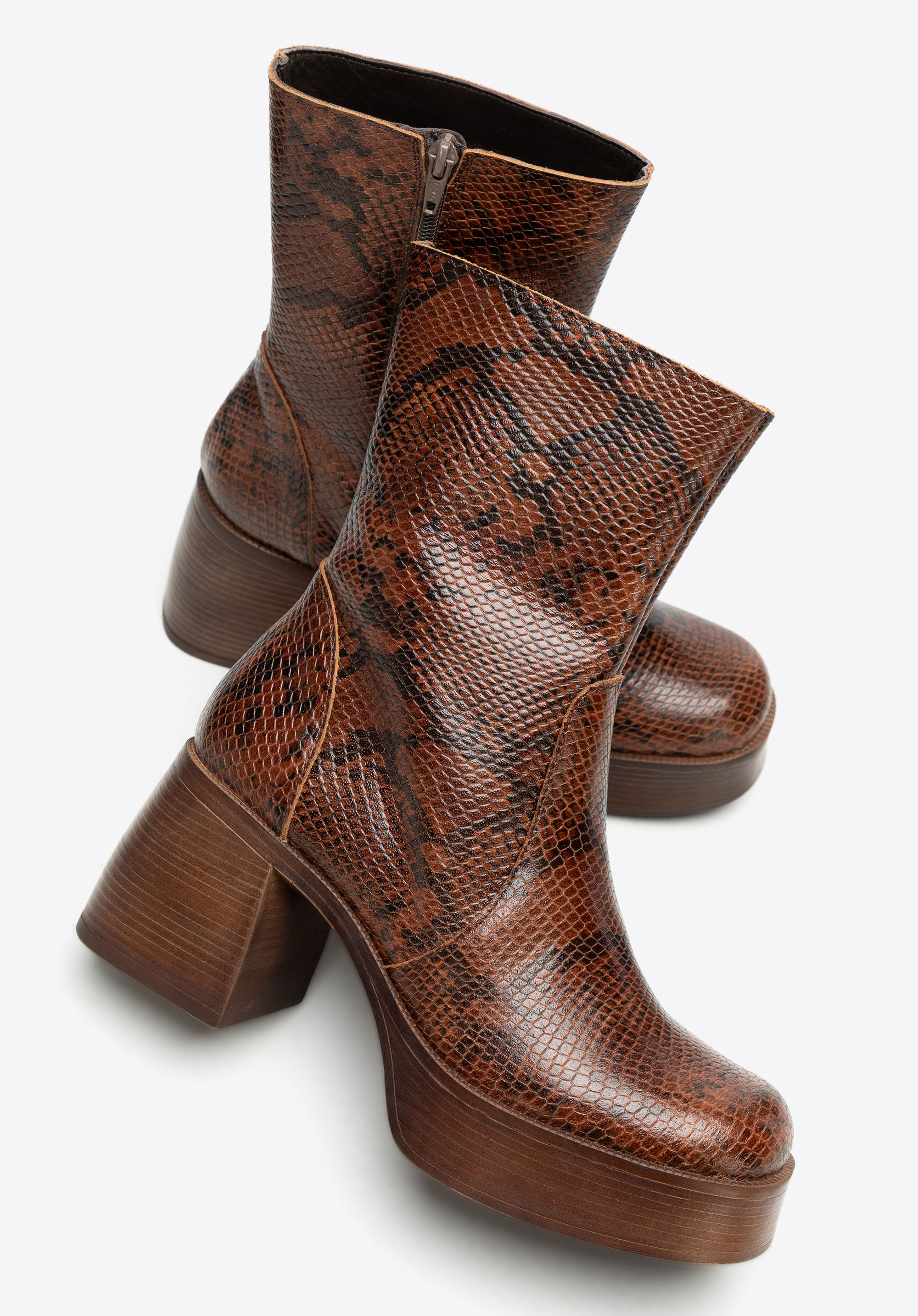 Botki we wzór węża ze skóry naturalnej – wyrazisty styl, dopracowana forma