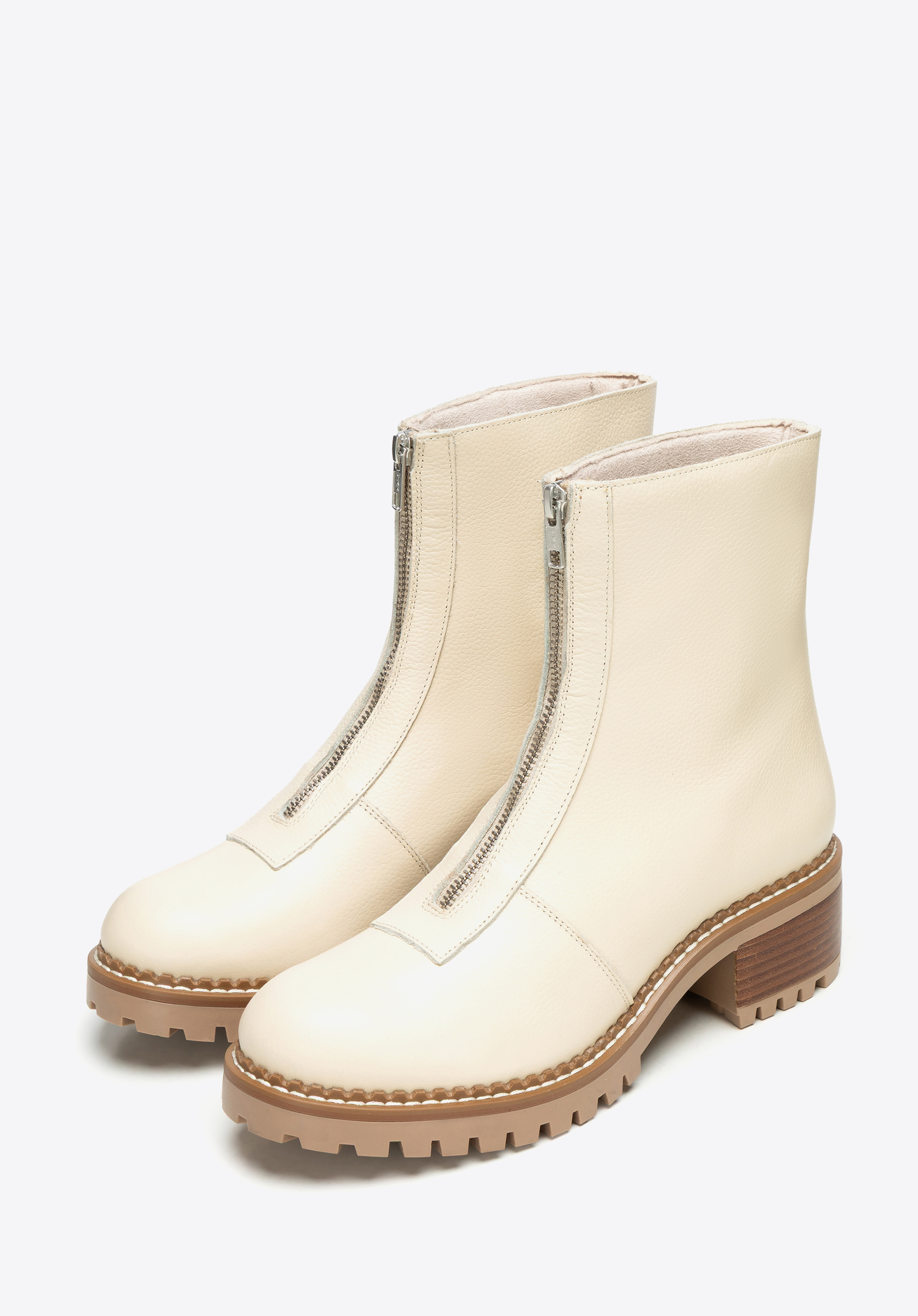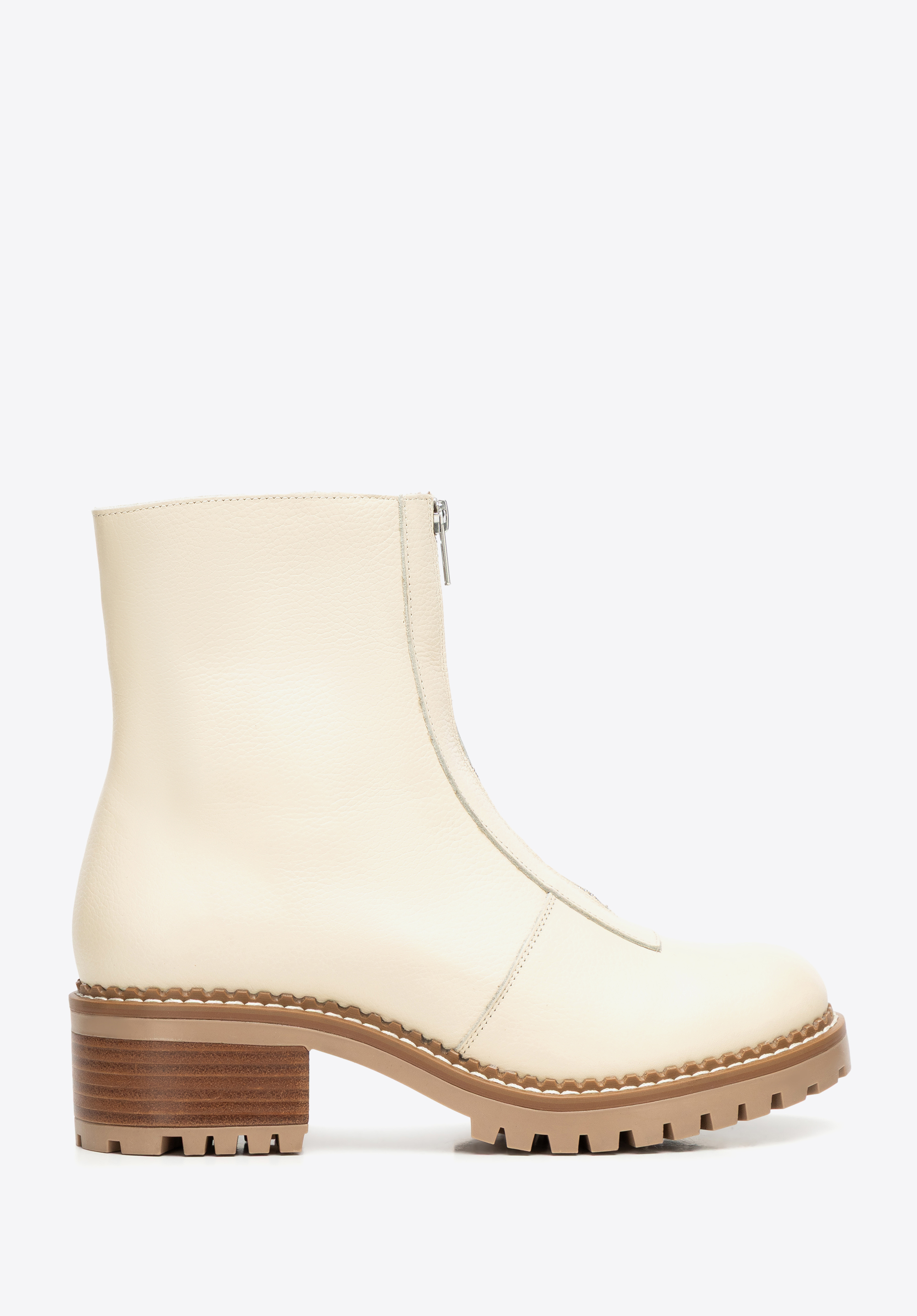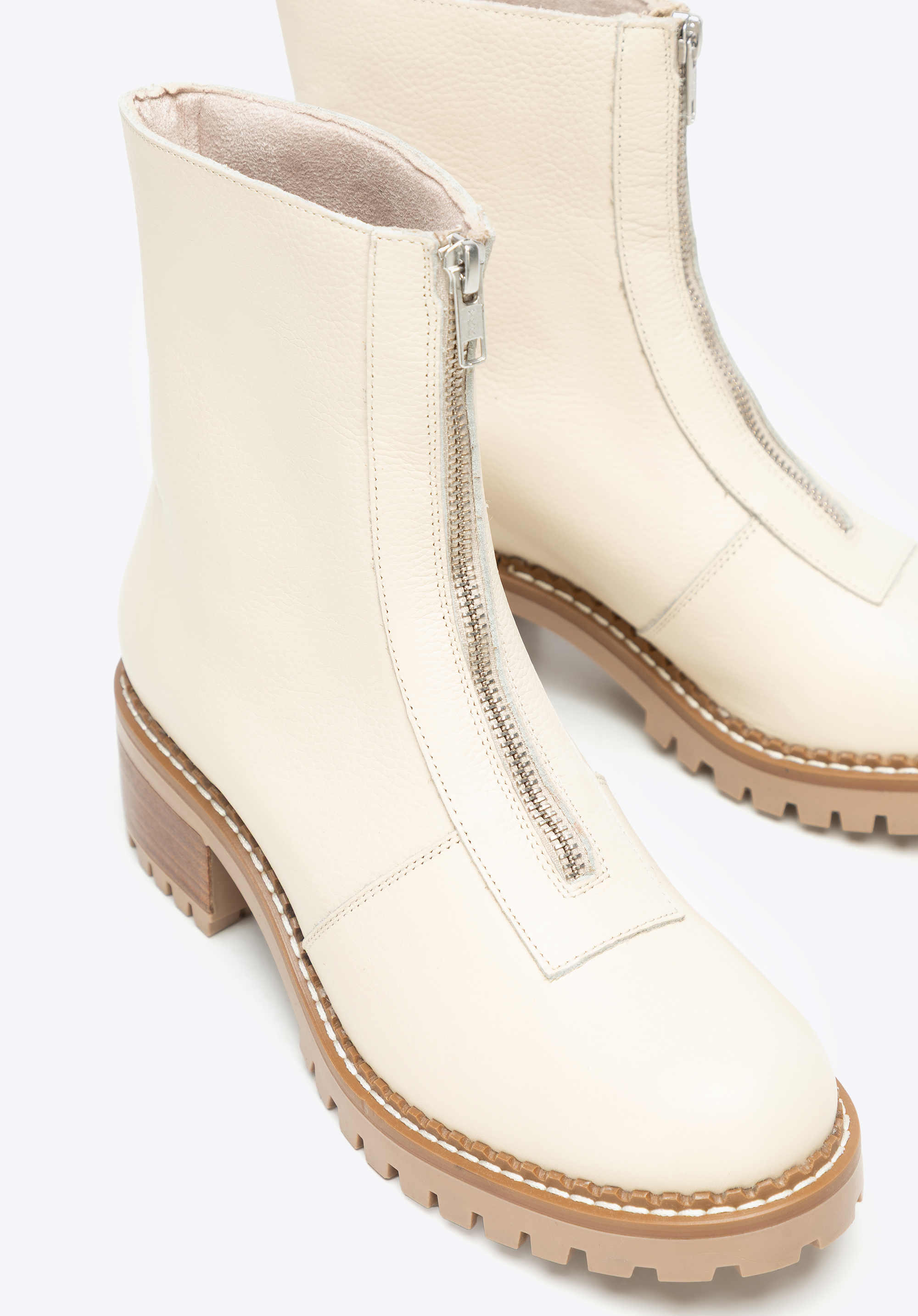 Te klasyczne botki to doskonałe połączenie ponadczasowego designu i codziennej funkcjonalności. Wykonane z wysokiej jakości naturalnej skóry, zachwycają eleganckim wykończeniem i trwałością, na której możesz polegać. Gruba podeszwa typu track nie tylko podkreśla ich styl, ale również zapewnia stabilność i komfort na każdym kroku. Suwak umieszczony z przodu buta ułatwia zakładanie, a migdałowy nosek podkreśla ich kobiecy, uniwersalny styl.