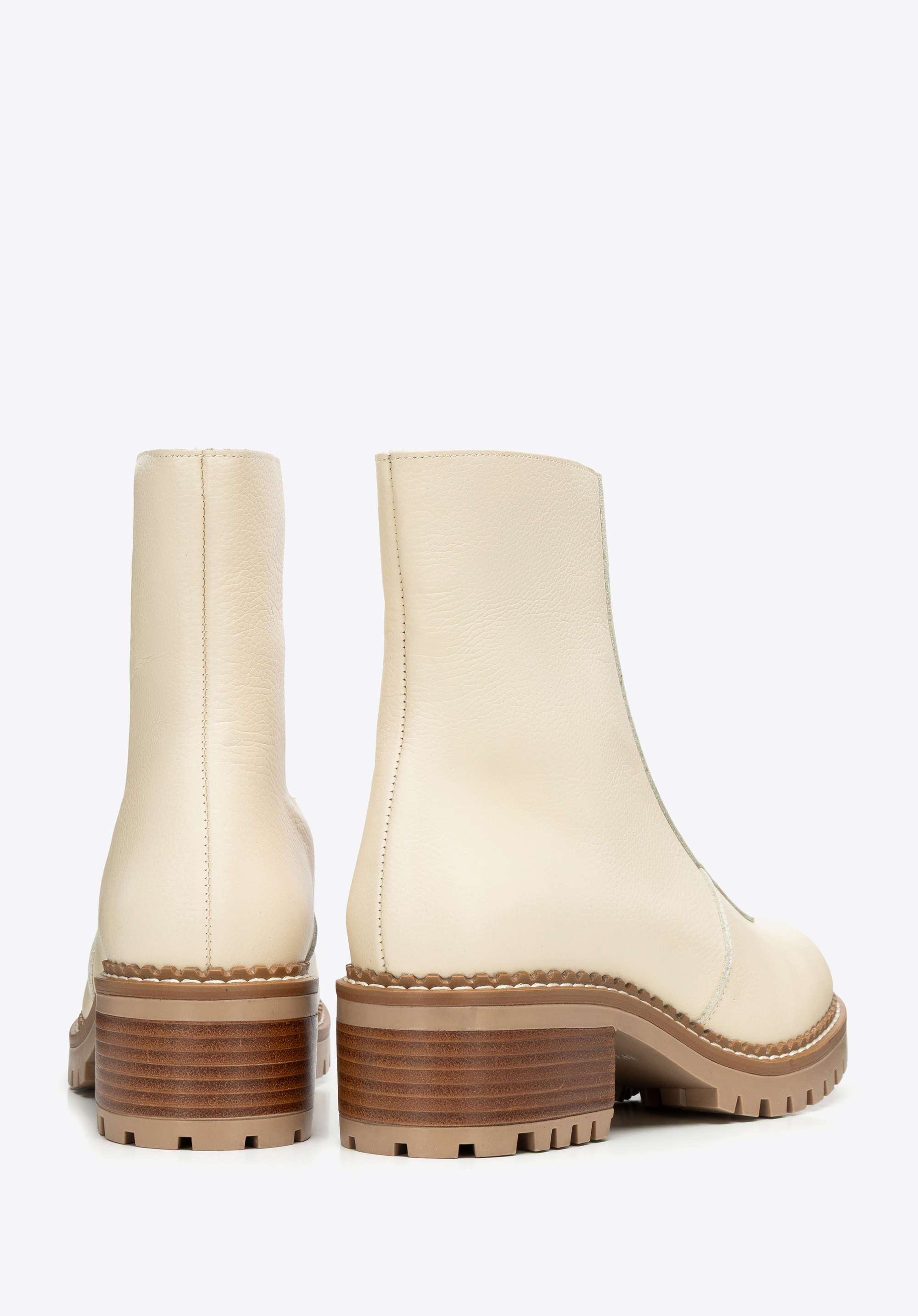 Damskie botki ze skóry naturalnej z suwakiem na przodzie kremowe