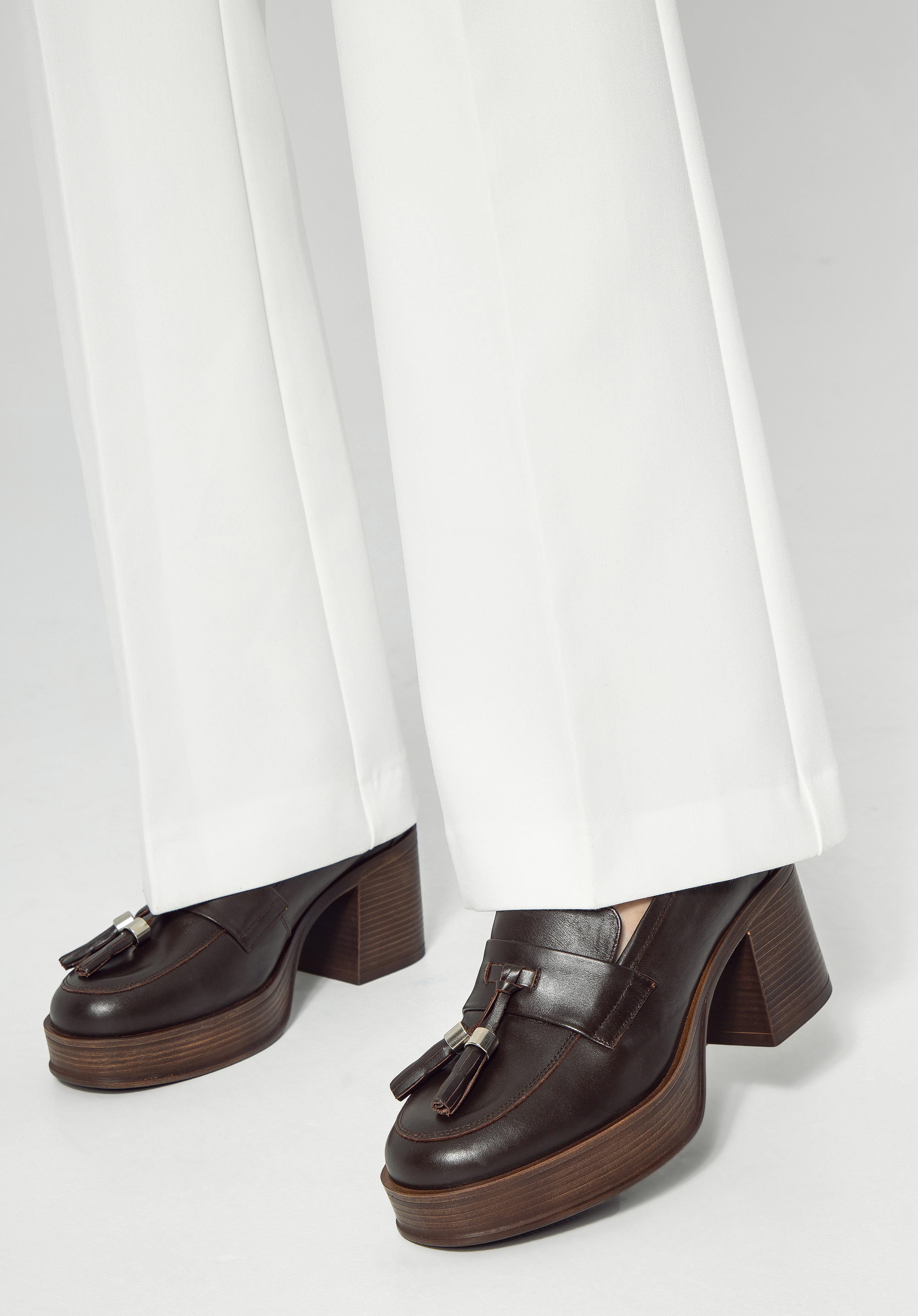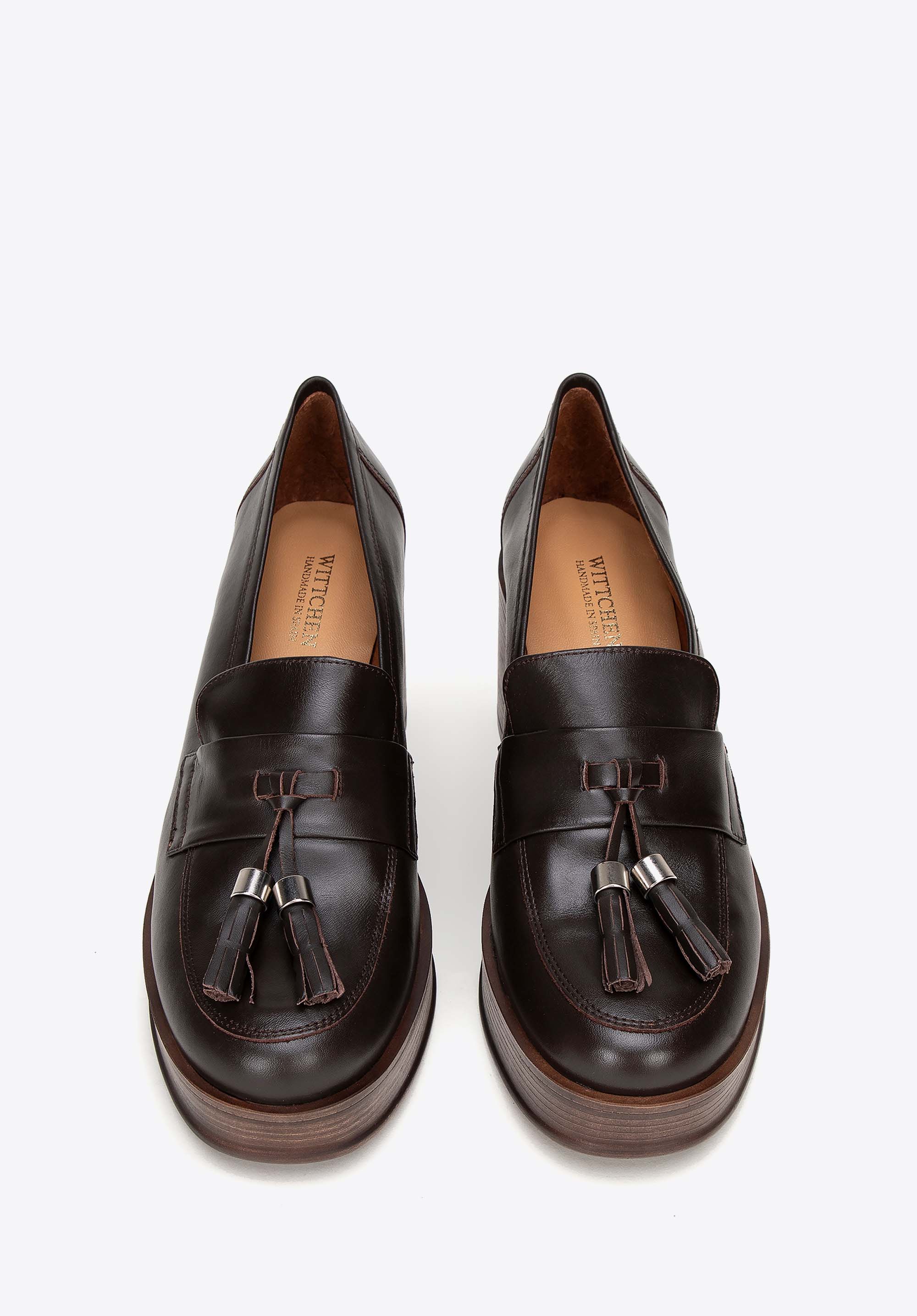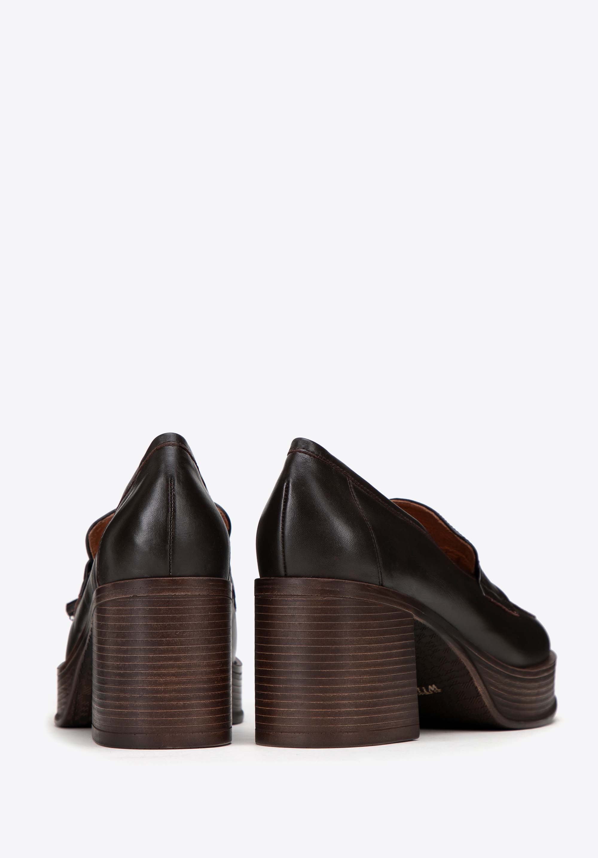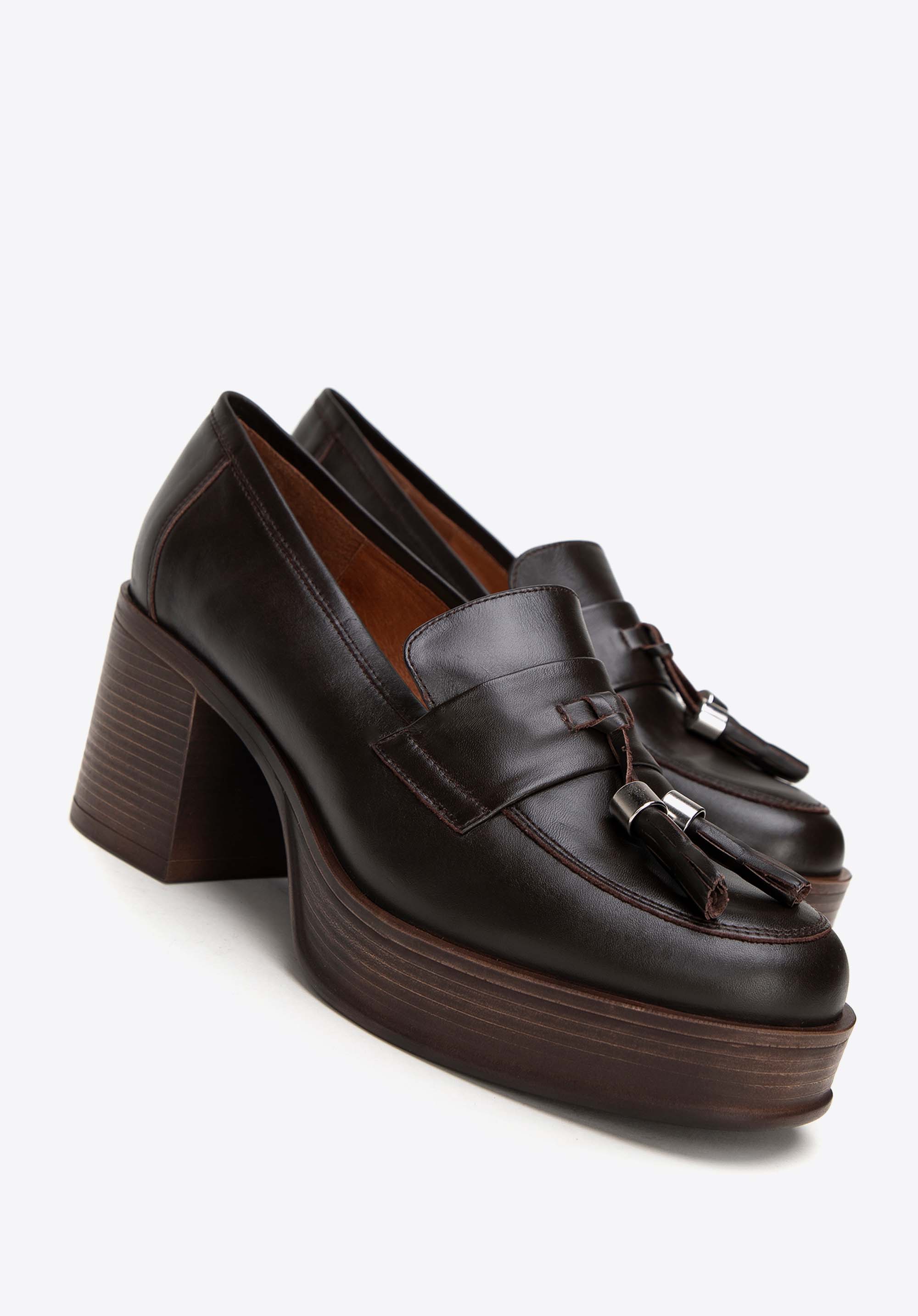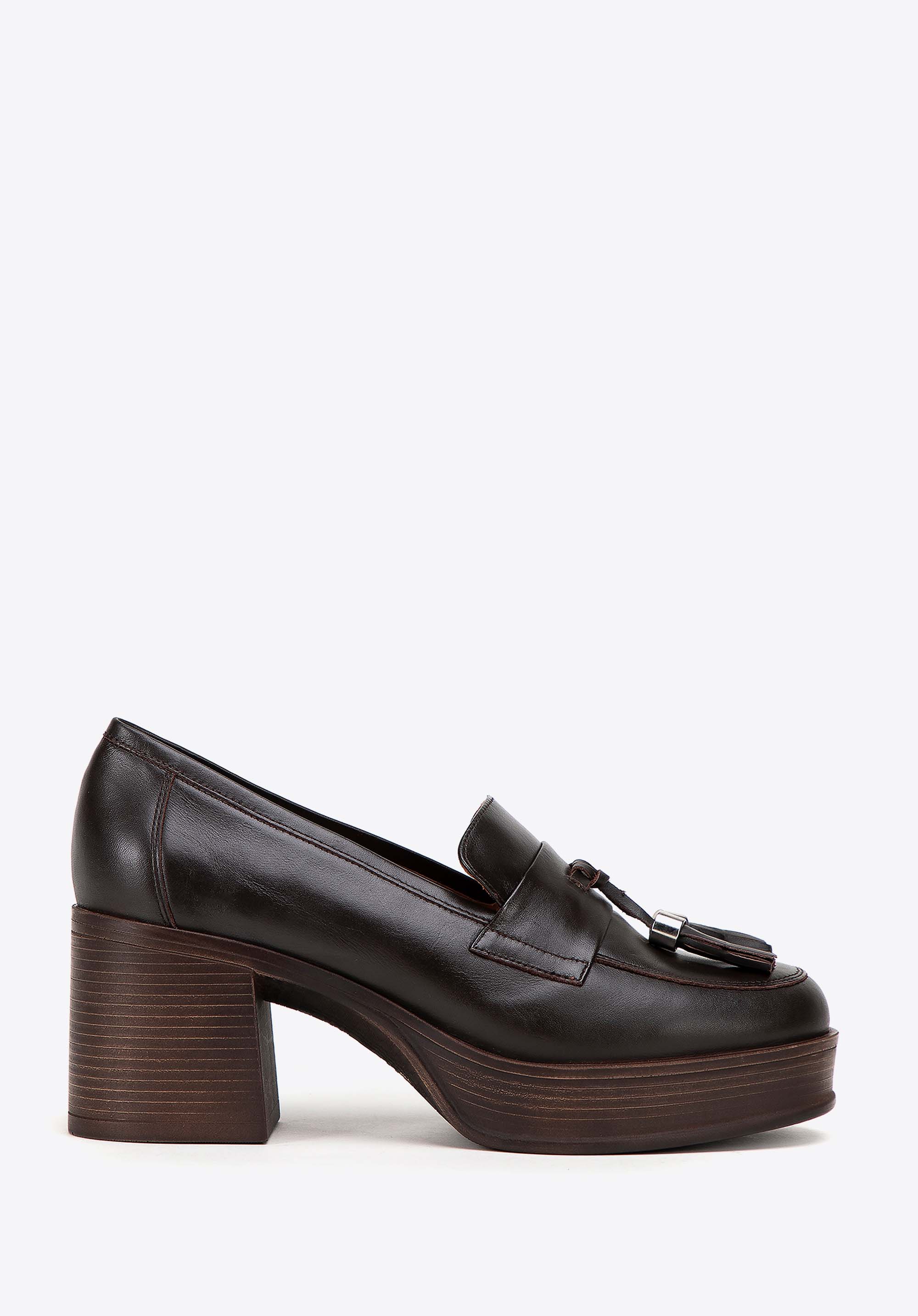 Damskie skórzane czółenka z dekoracyjnym chwostem