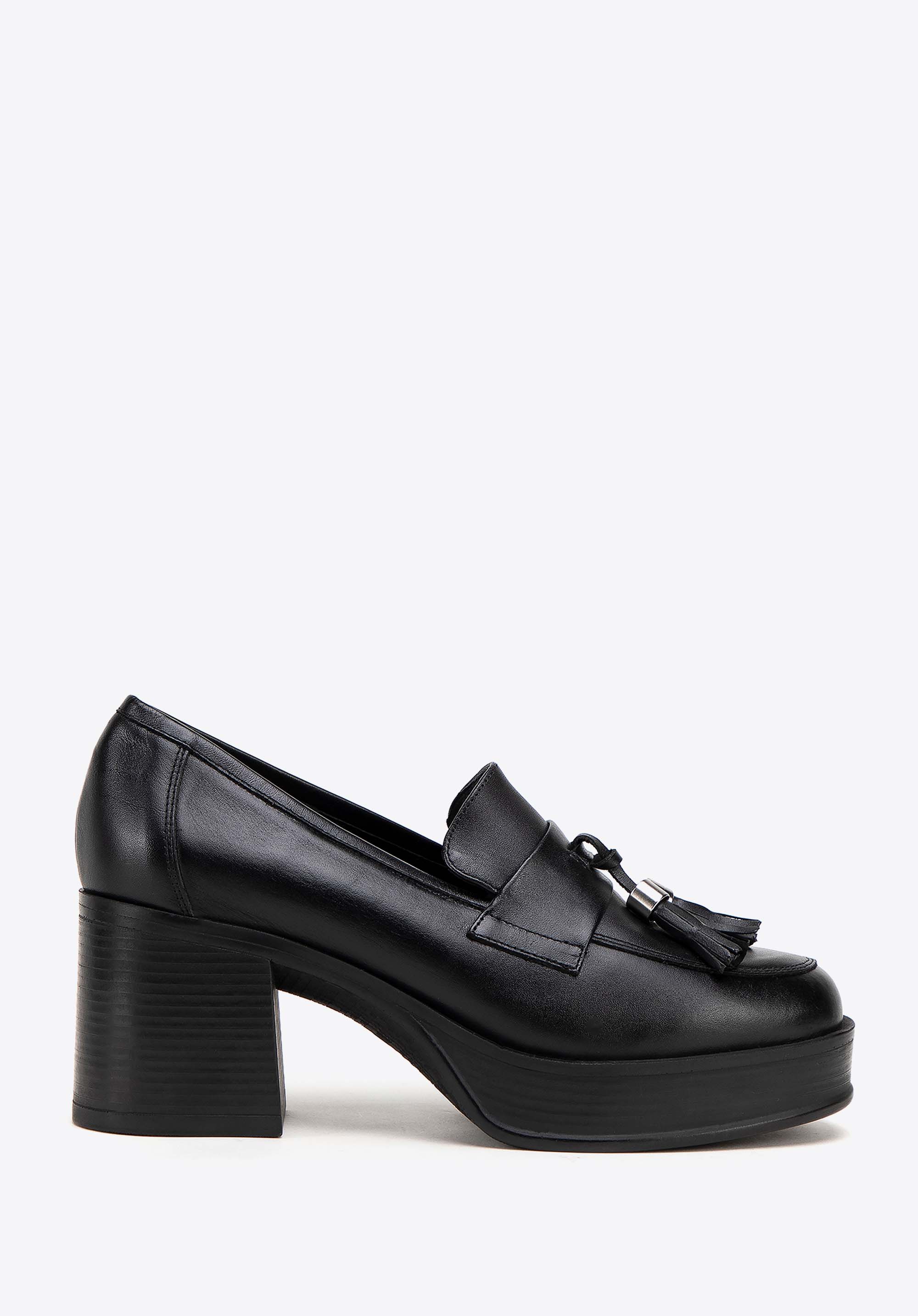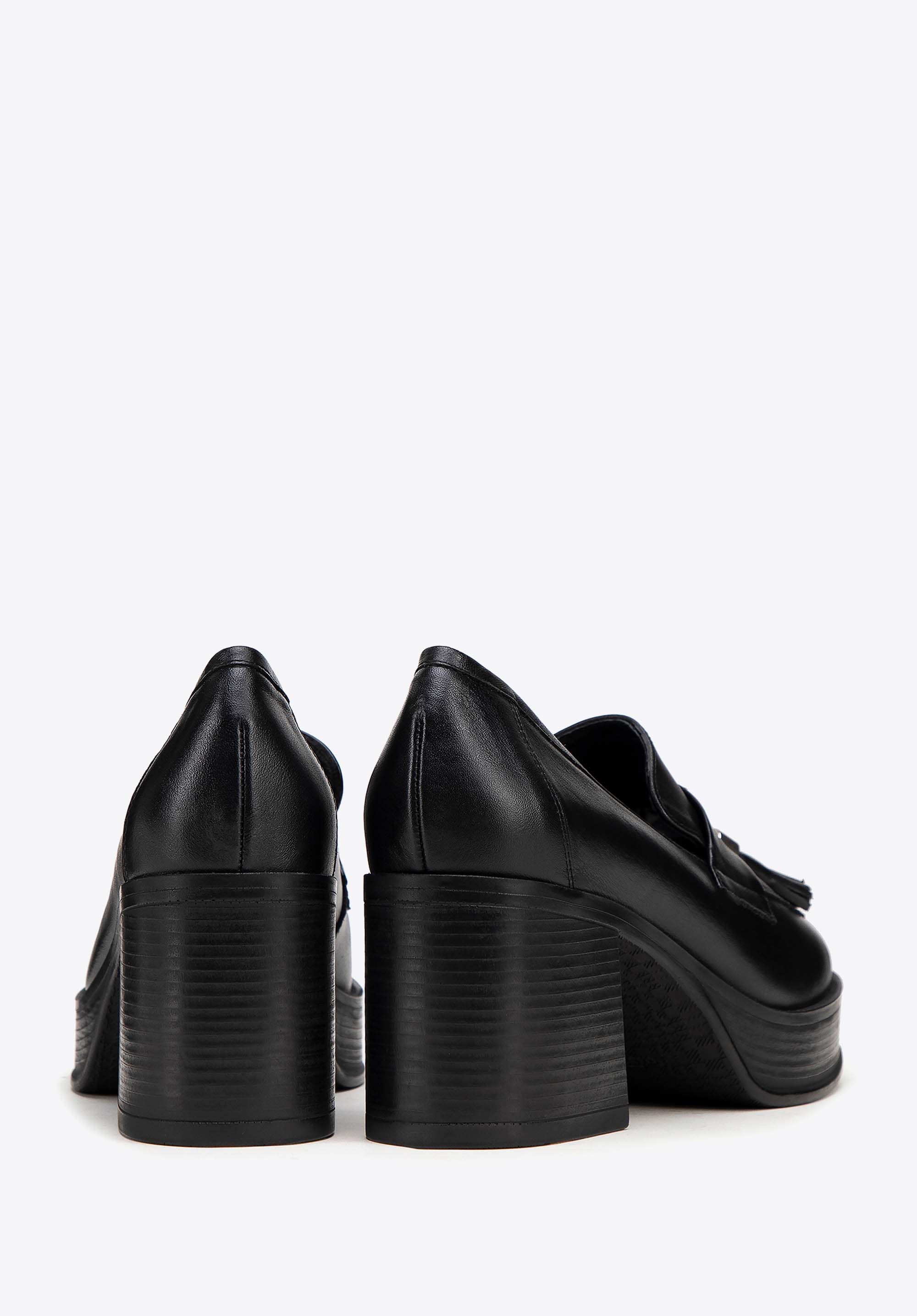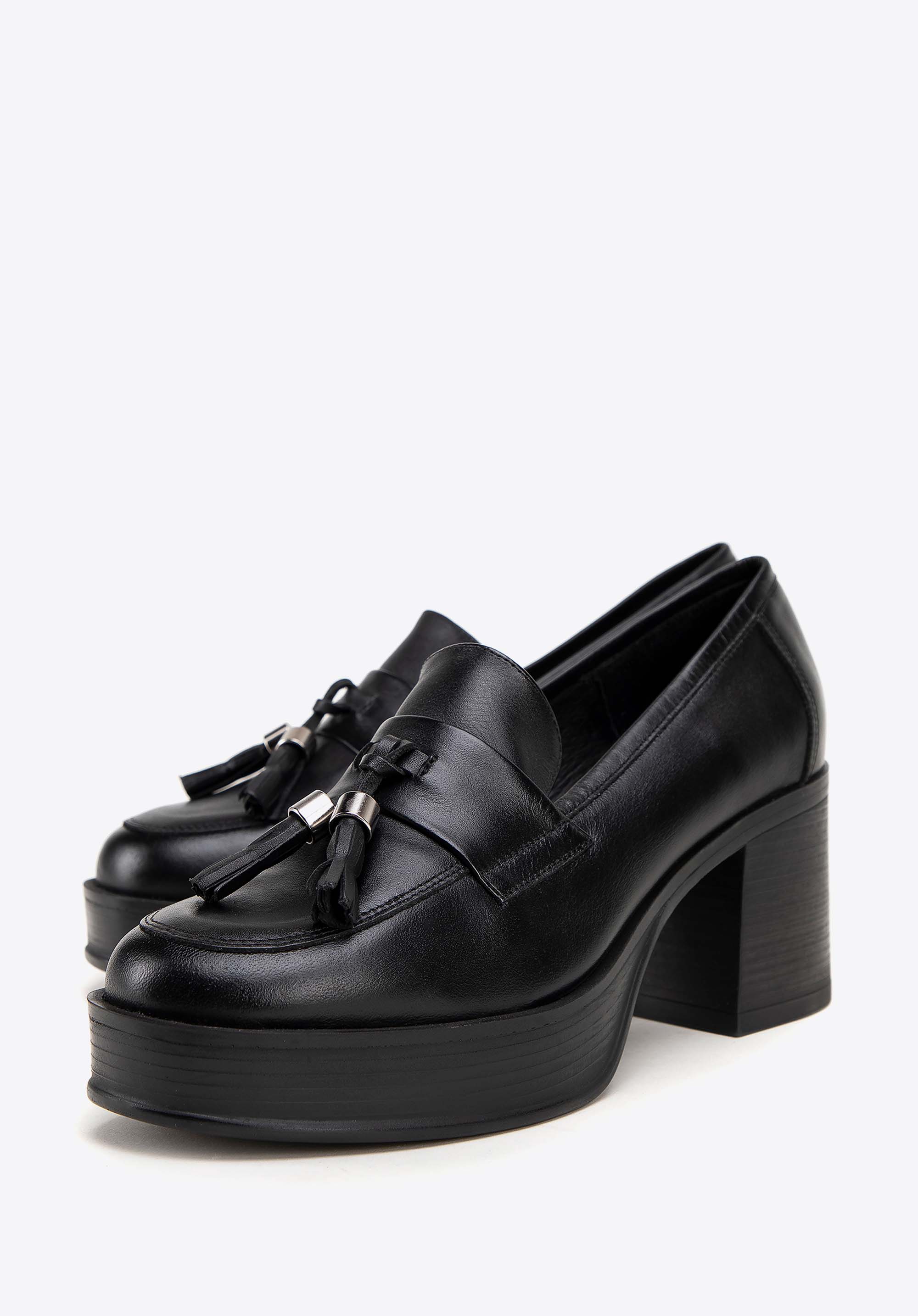 Damskie skórzane czółenka z dekoracyjnym chwostem