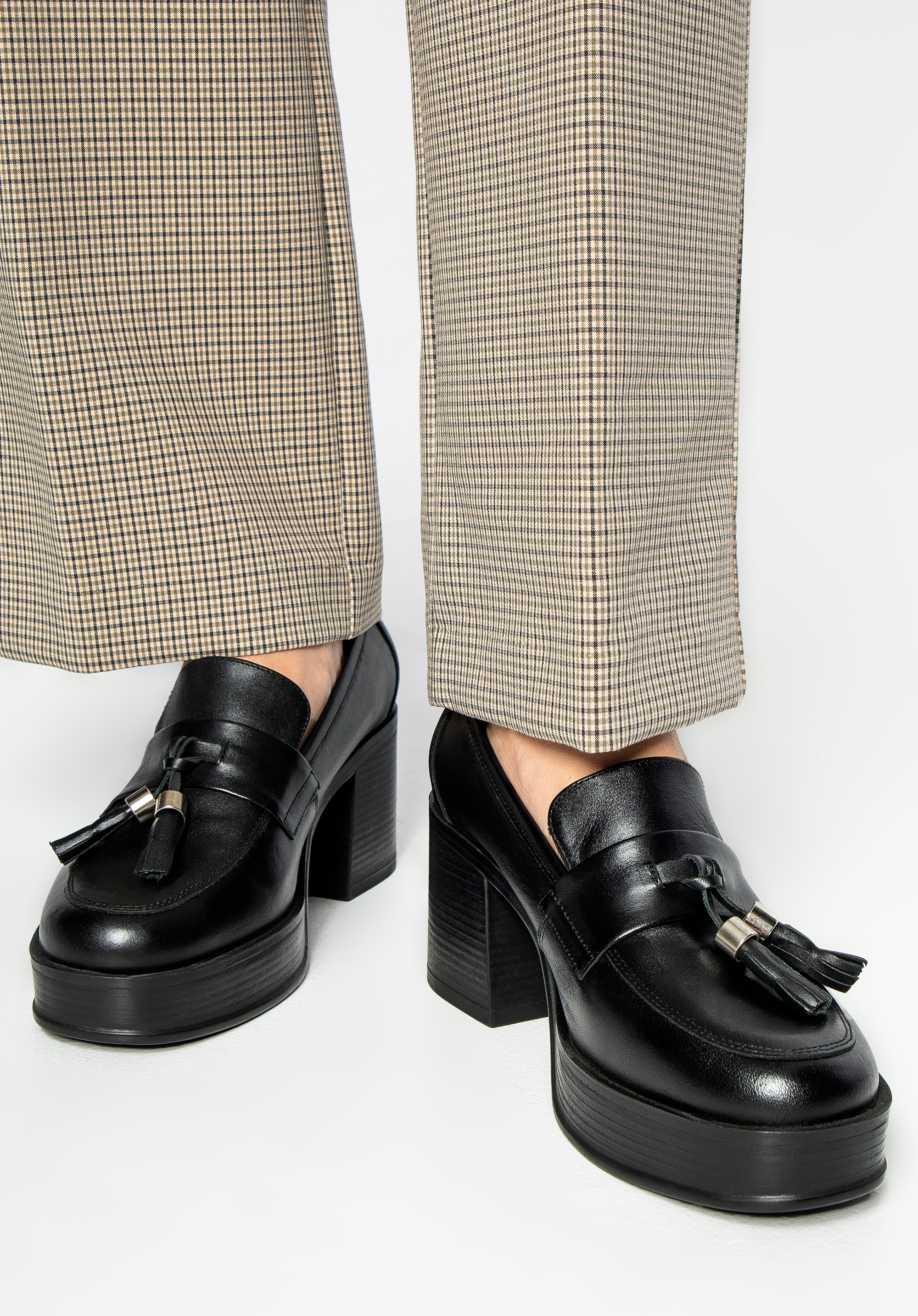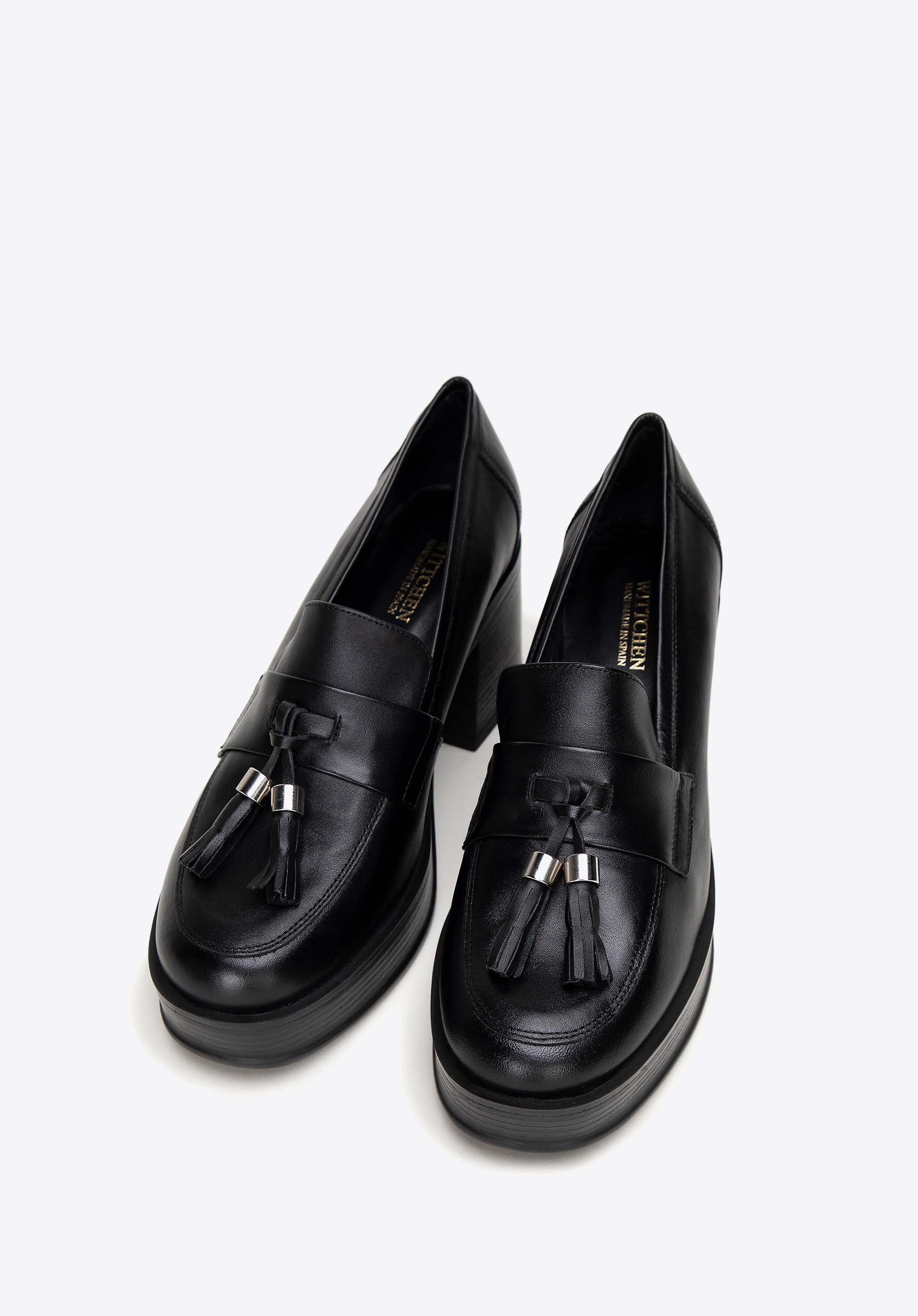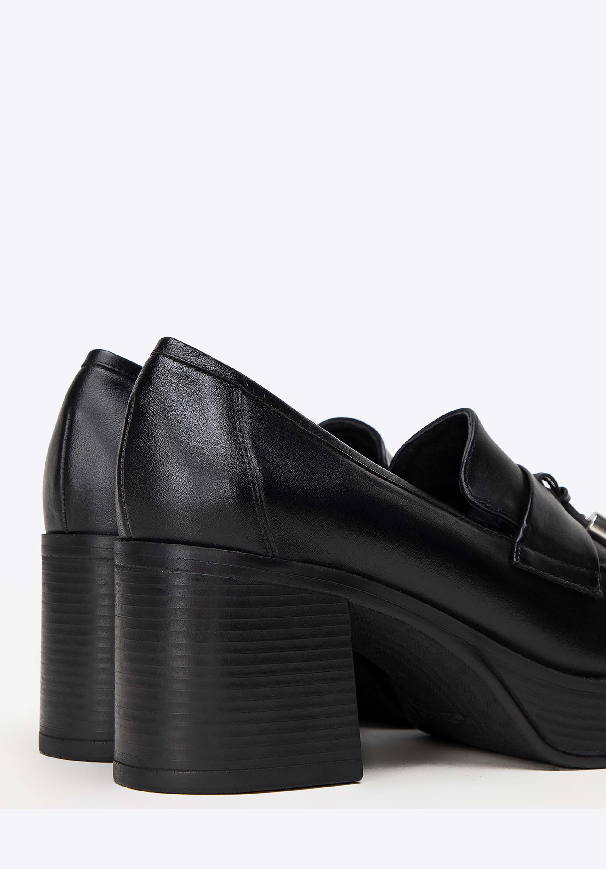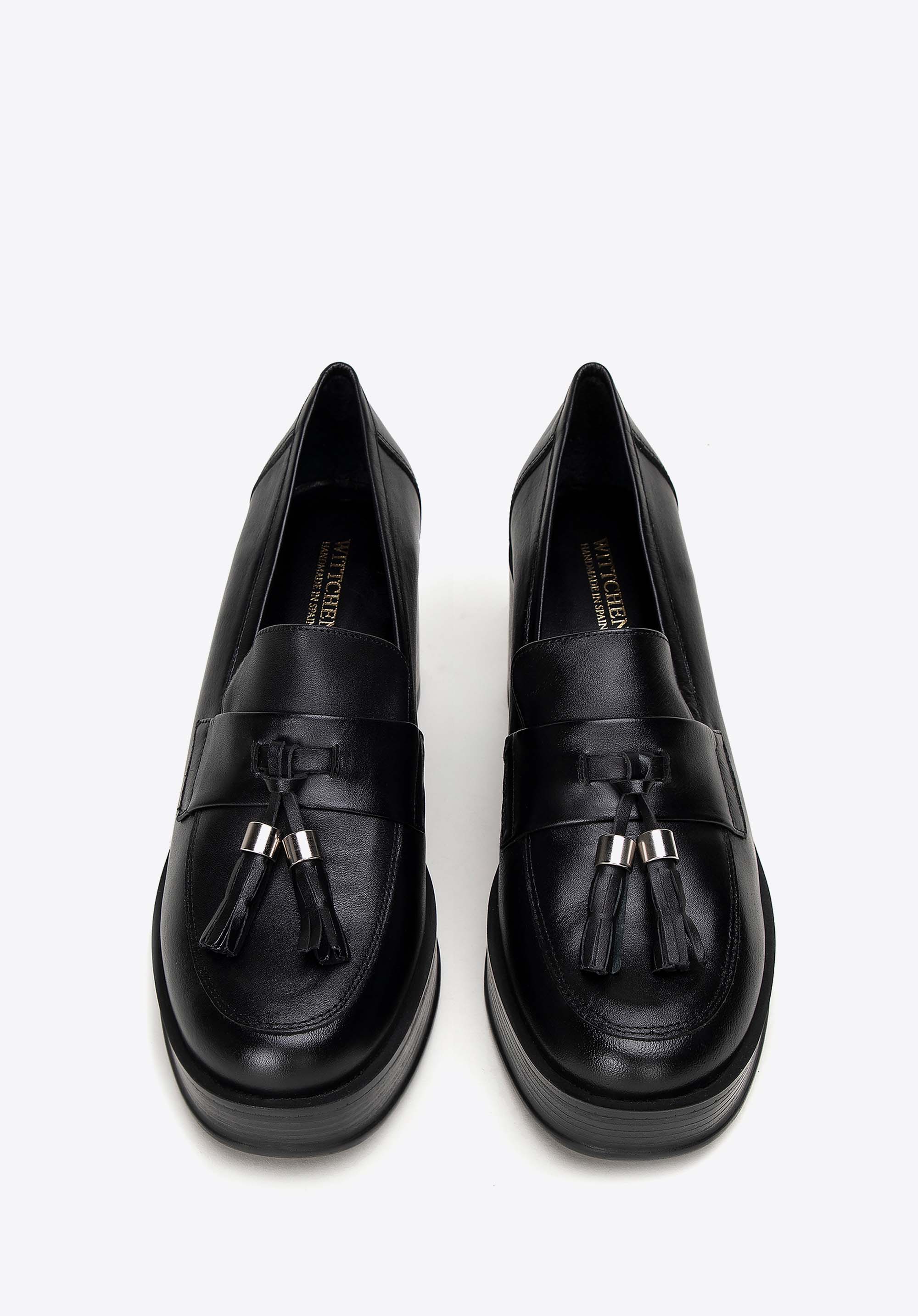 Damskie skórzane czółenka z dekoracyjnym chwostem