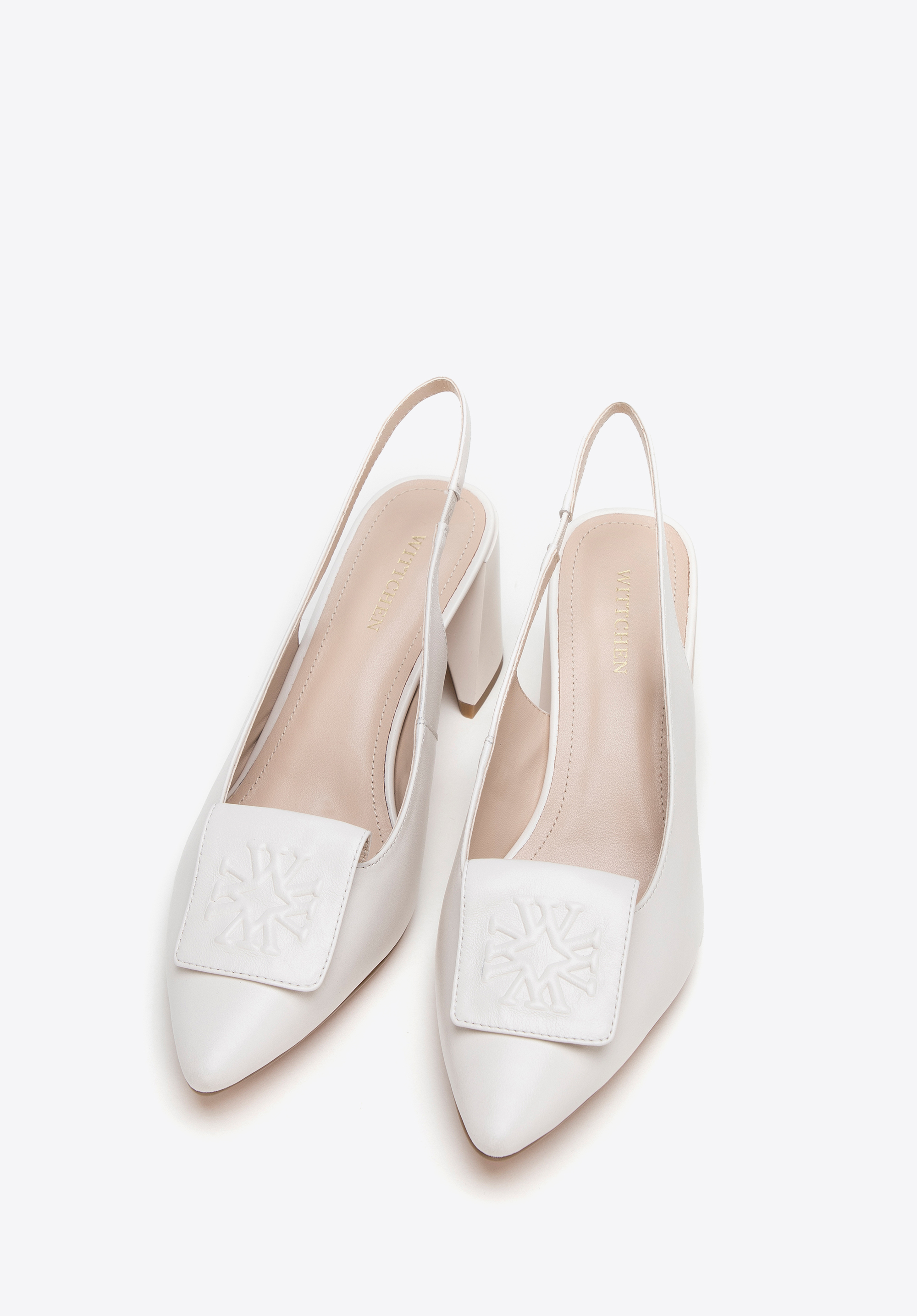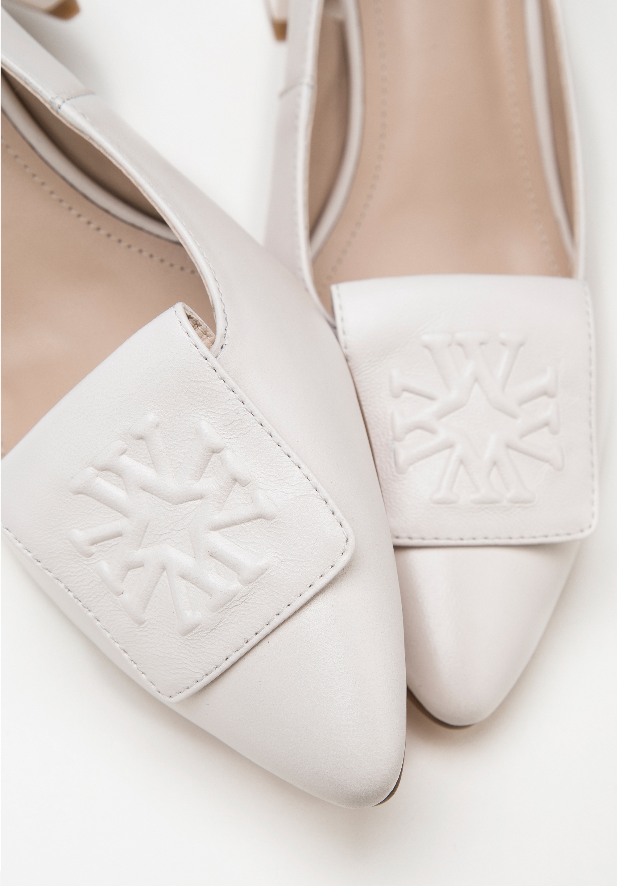 Damskie czółenka skórzane z monogramem to świetny wybór zarówno do pracy, jak i na elegancką kolację lub wesele.