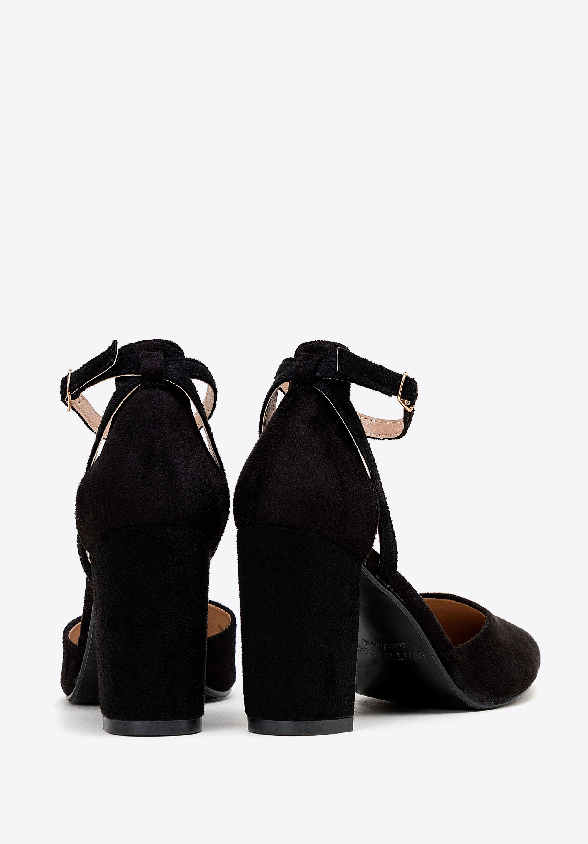 wykonane z przyjemnego w dotyku ekologicznego zamszu. Obcas słupek jest dość wysoki, ale stabilny, więc komfortowo przechodzisz w tych butach wiele godzin.