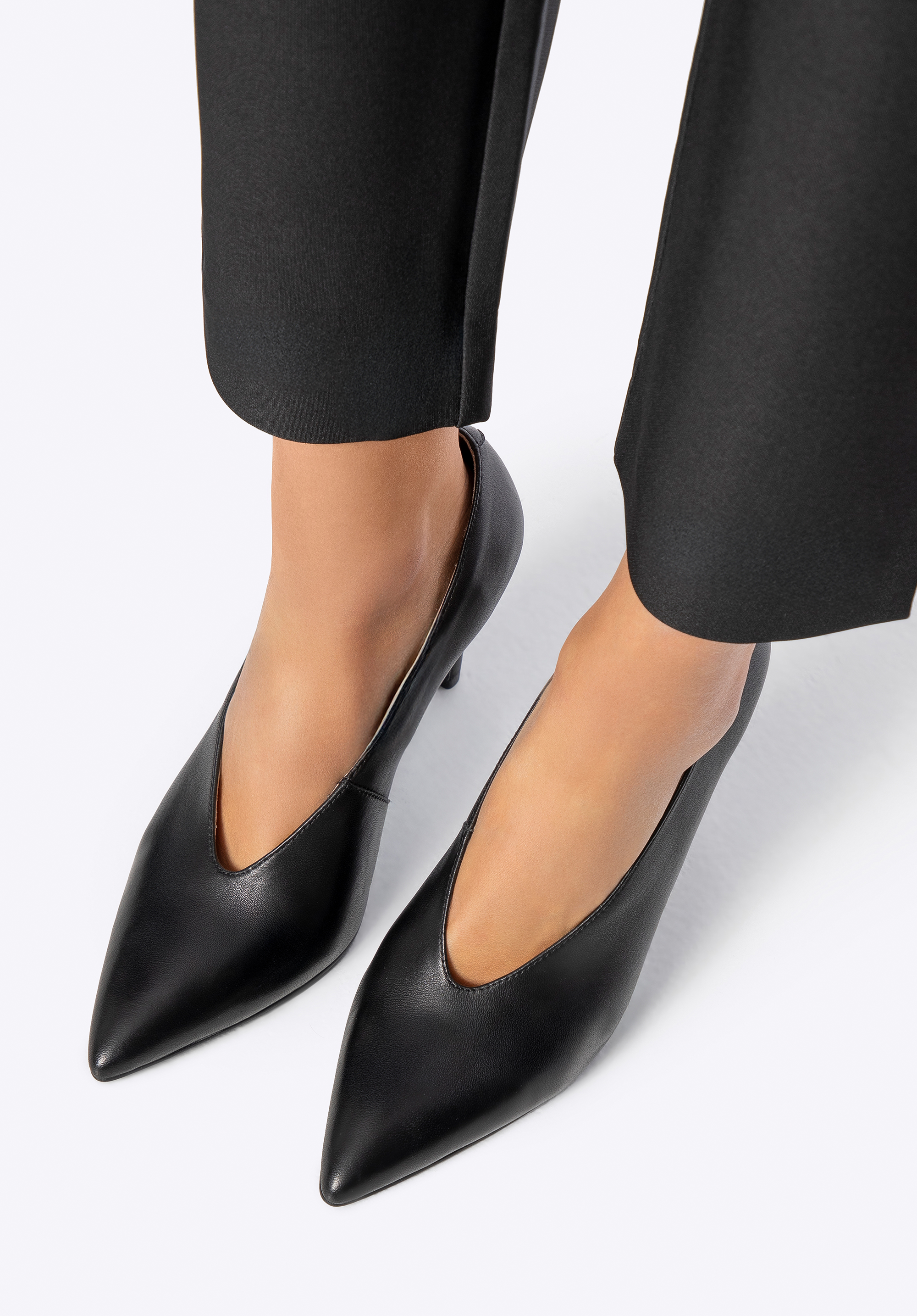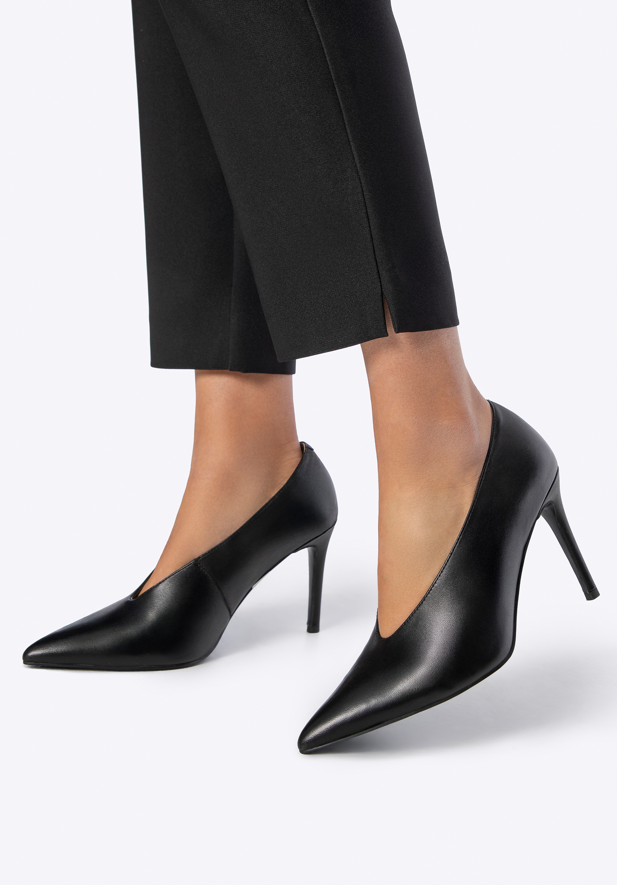 - Smukły nosek w szpic i głębokie wycięcie: Subtelnie wydłużają nogi i wysmuklają sylwetkę, dodając pewności siebie i elegancji.