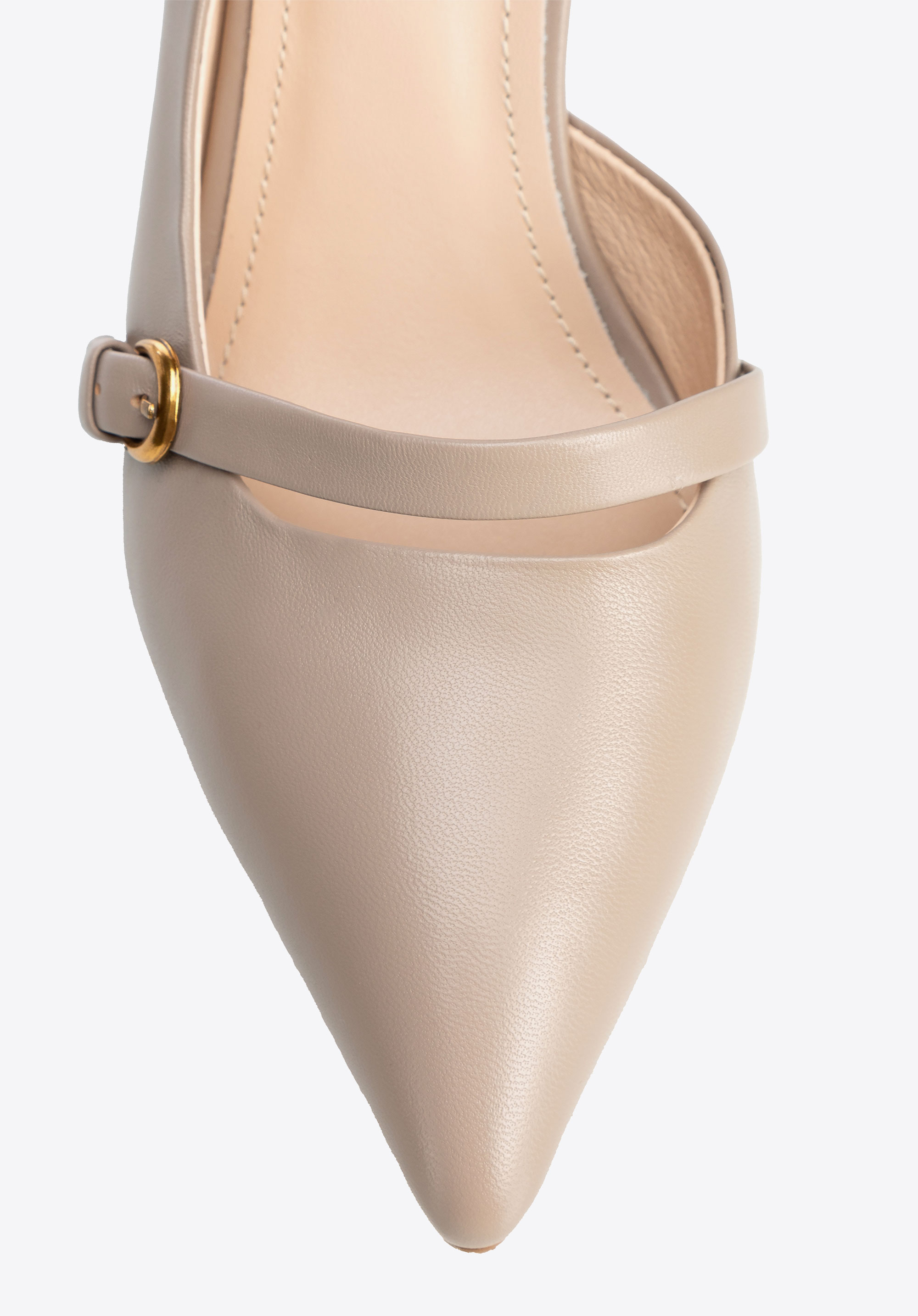 Damskie czółenka ze skóry z paskiem będą idealne na spotkania biznesowe i uroczyste wyjścia, kiedy chcesz podkreślić linię nóg i dodać stylizacji wyrafinowania. Skóra naturalna, smukły nosek w szpic i regulowany pasek przy przodzie zapewniają elegancki efekt oraz stabilniejsze dopasowanie.