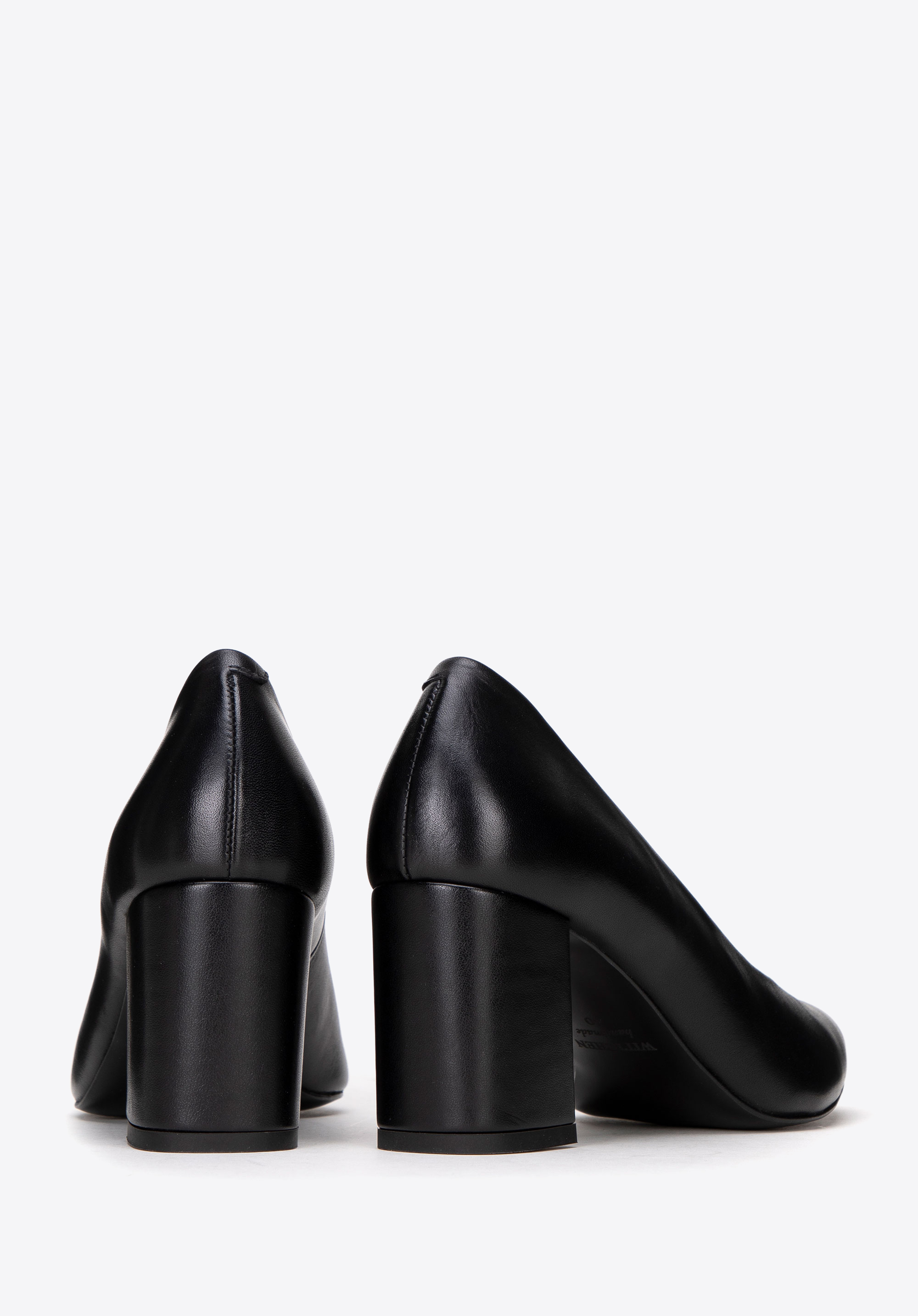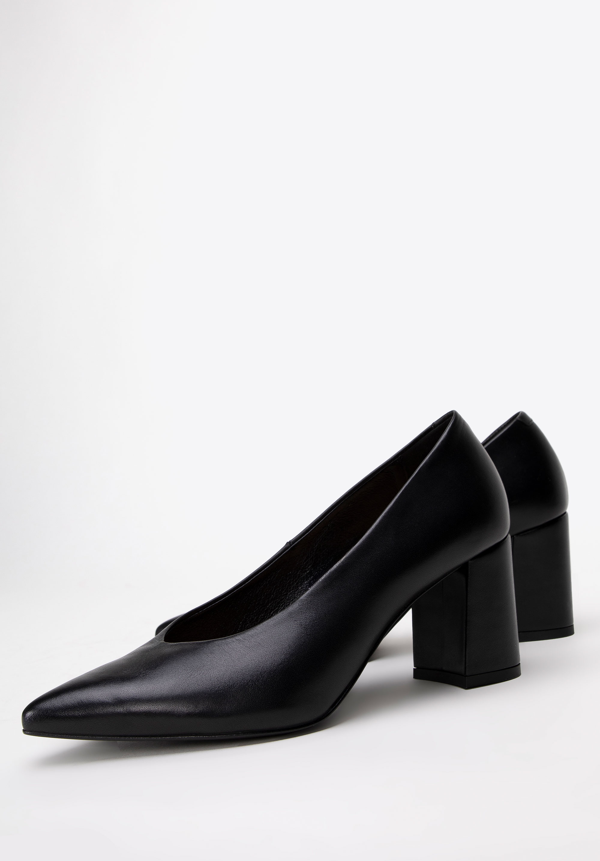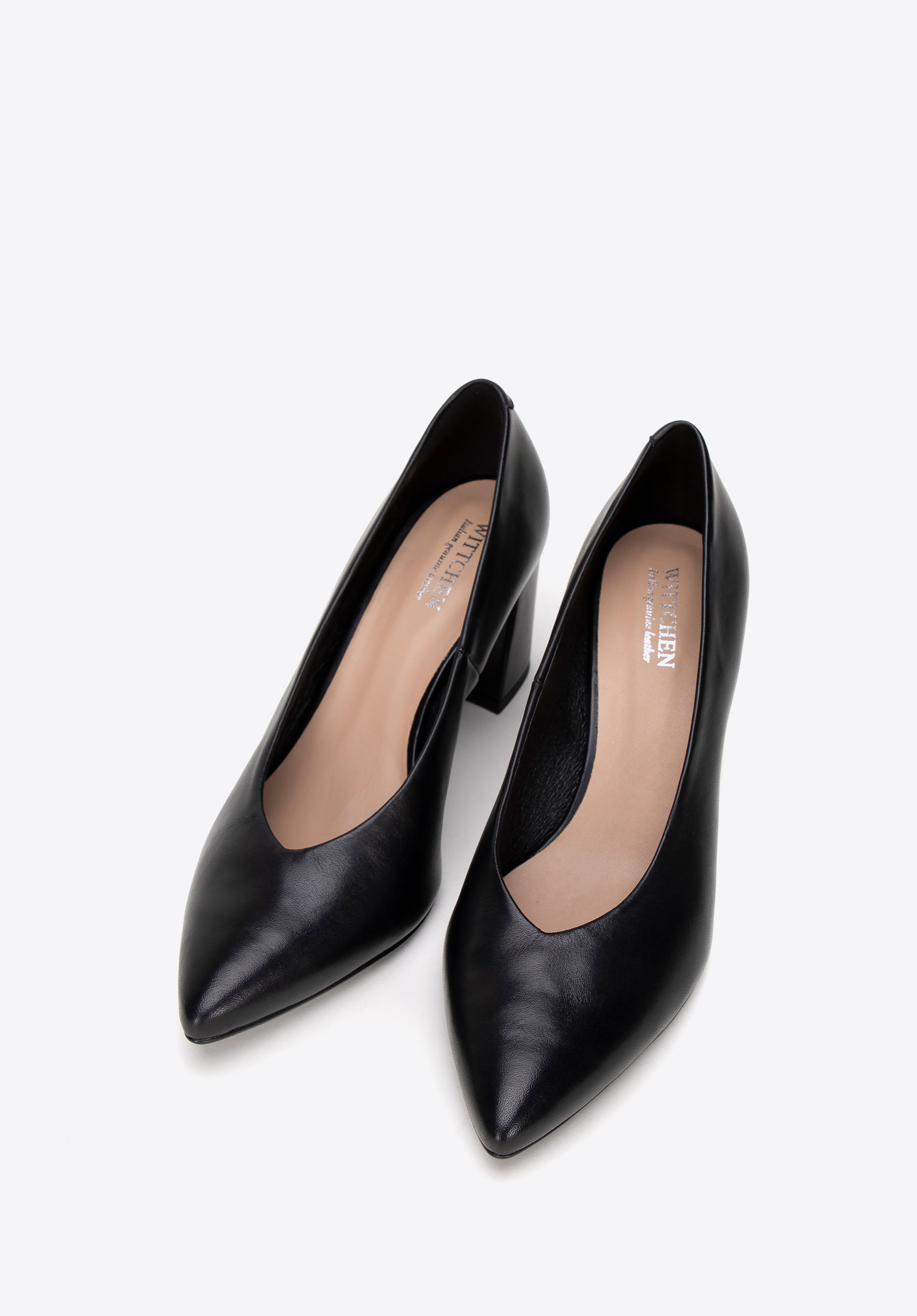 Damskie czółenka ze skóry z wycięciem na słupku czarne
