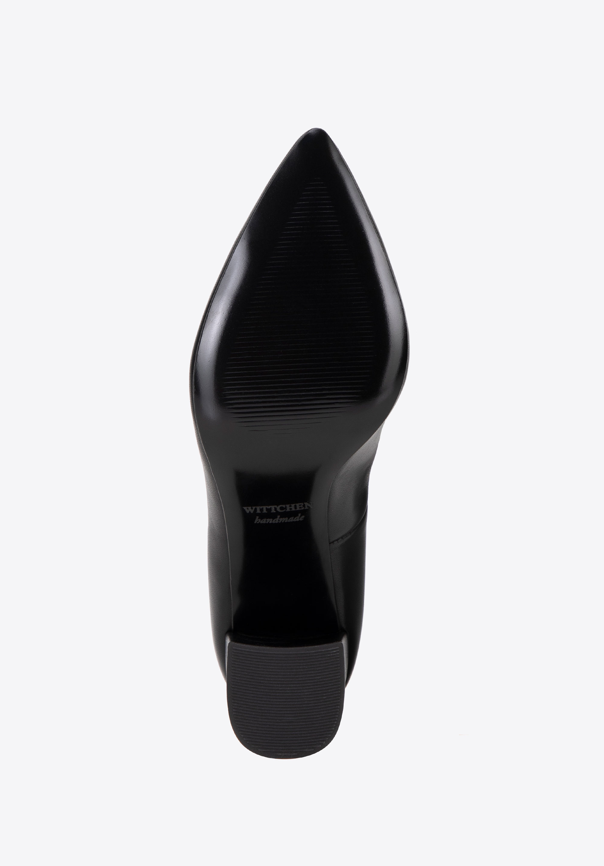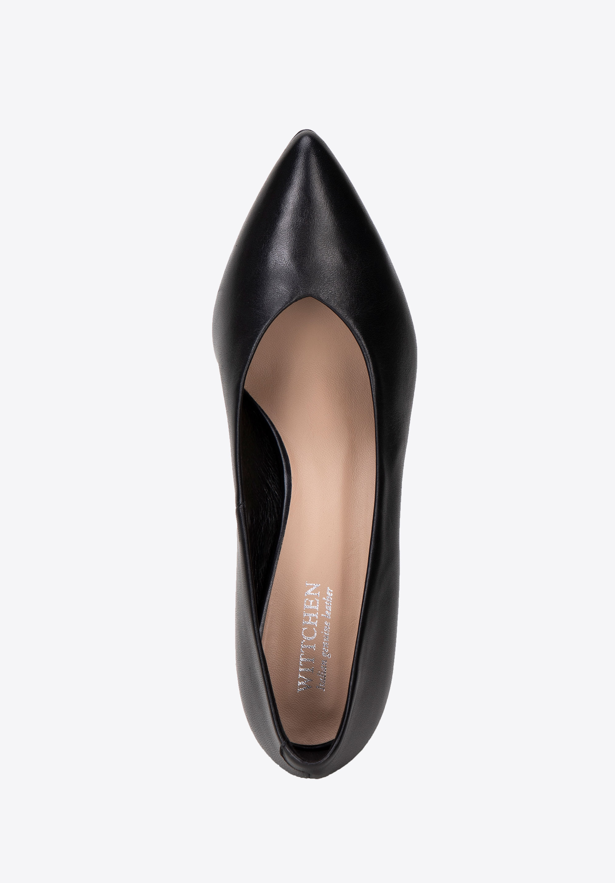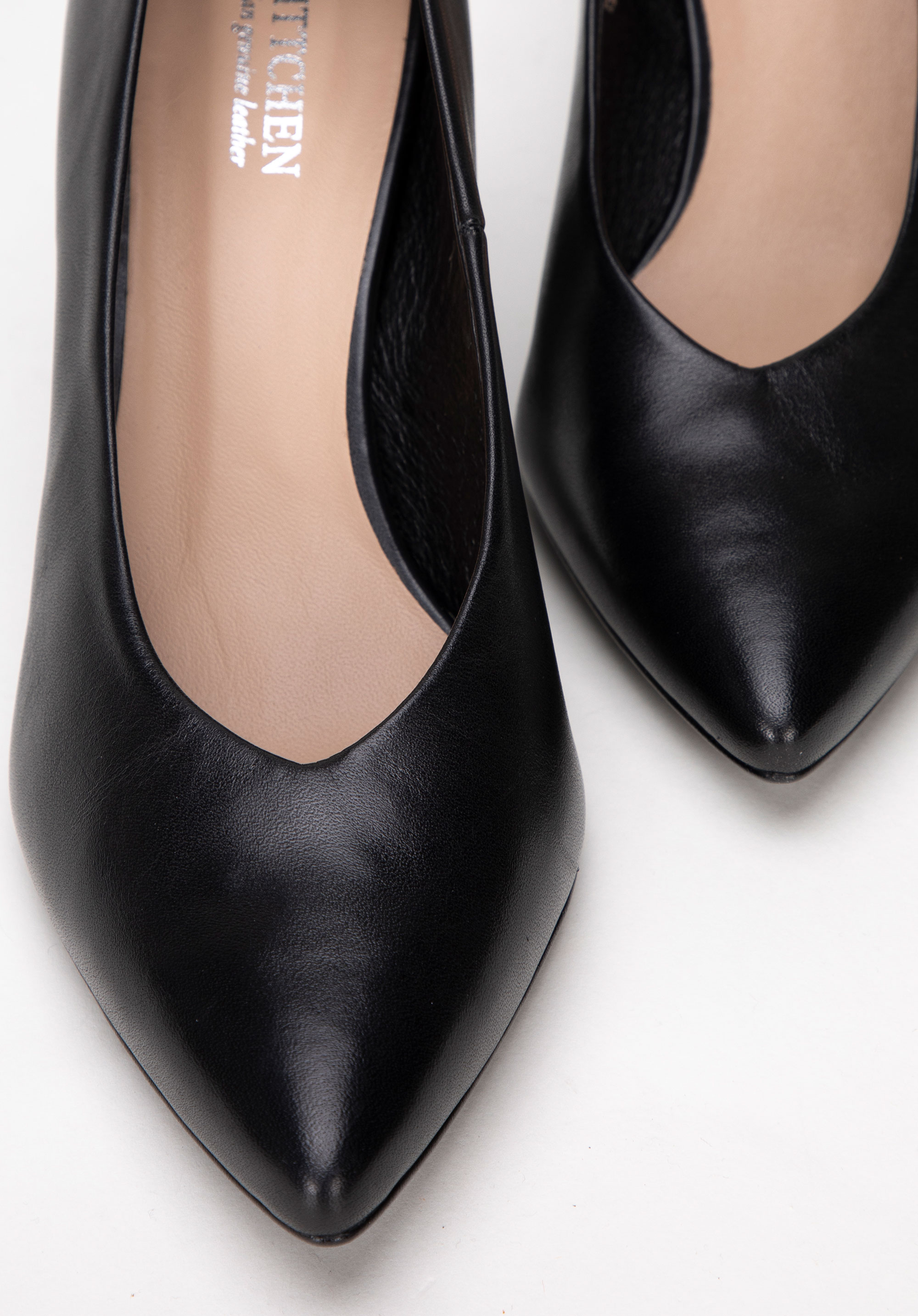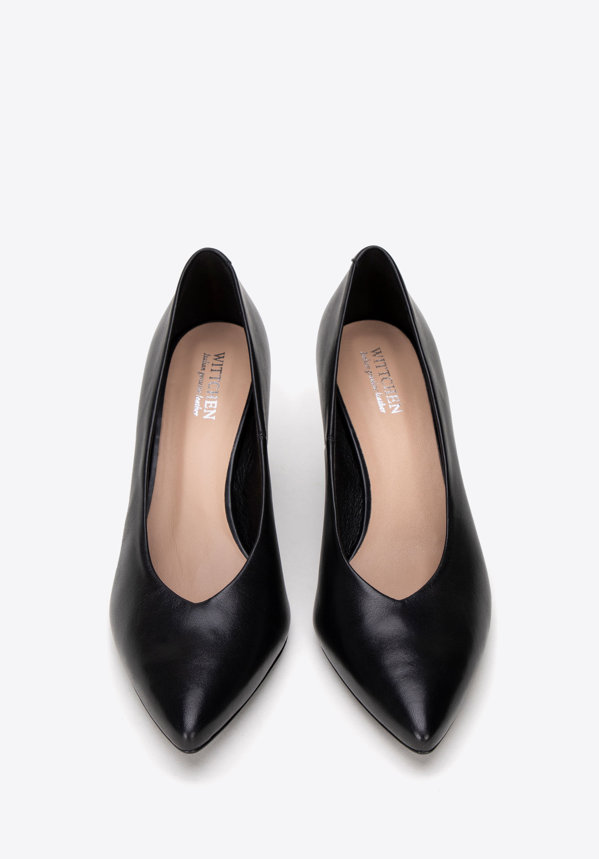 Damskie czółenka ze skóry z wycięciem na słupku czarne
