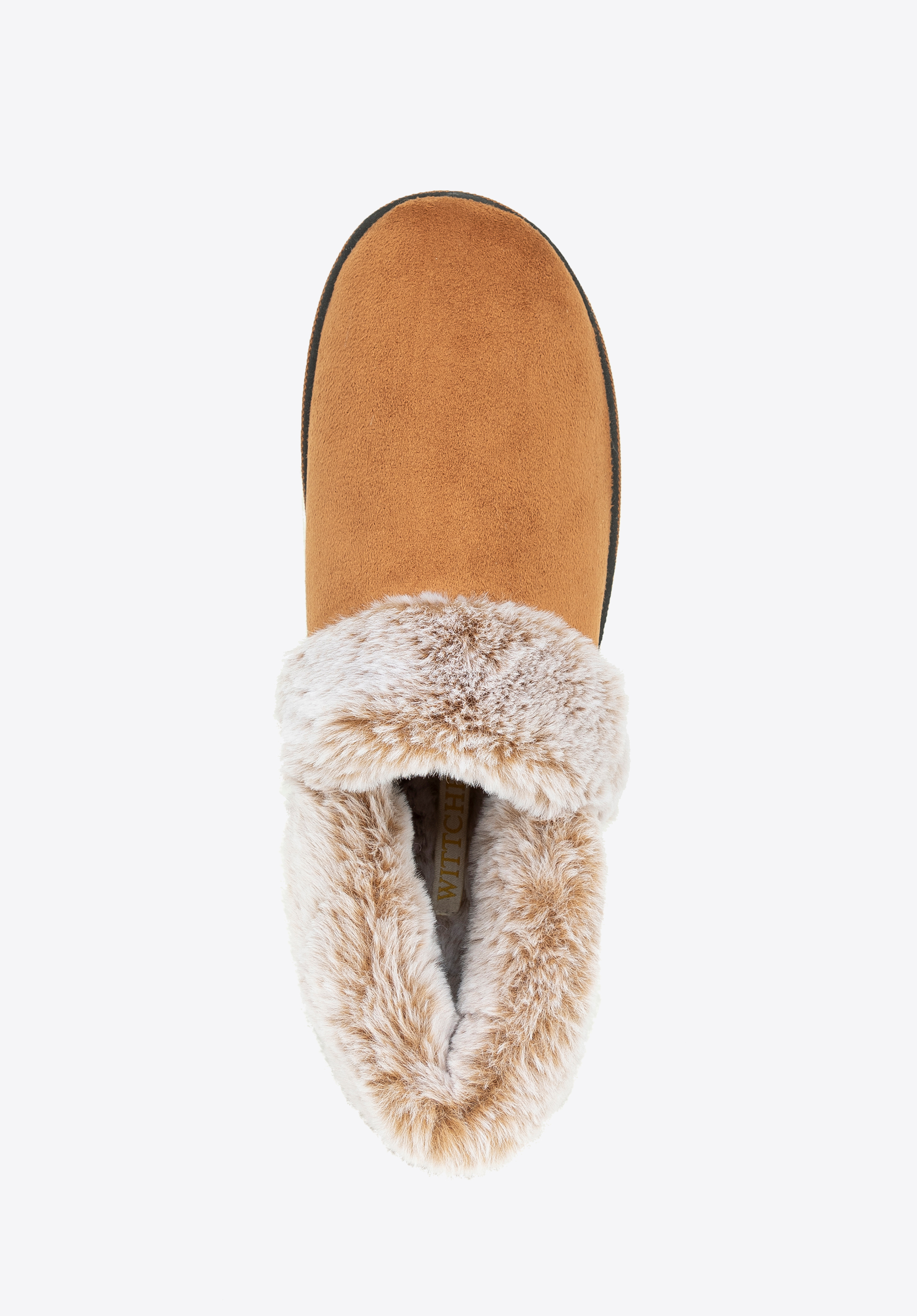 - Wyściółka: Wyjątkowe, sztuczne futerko wyściełające wnętrze dodaje im wyjątkowego uroku oraz ciepła, które idealnie otula stopy.