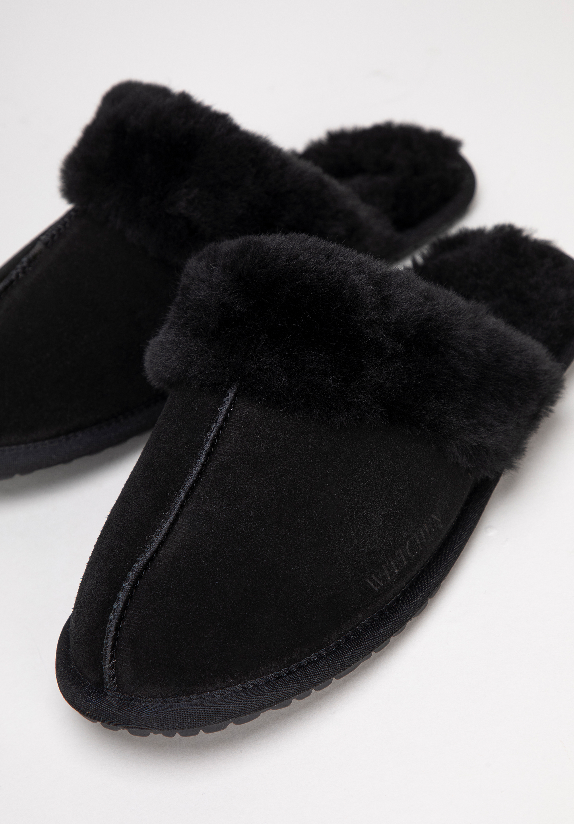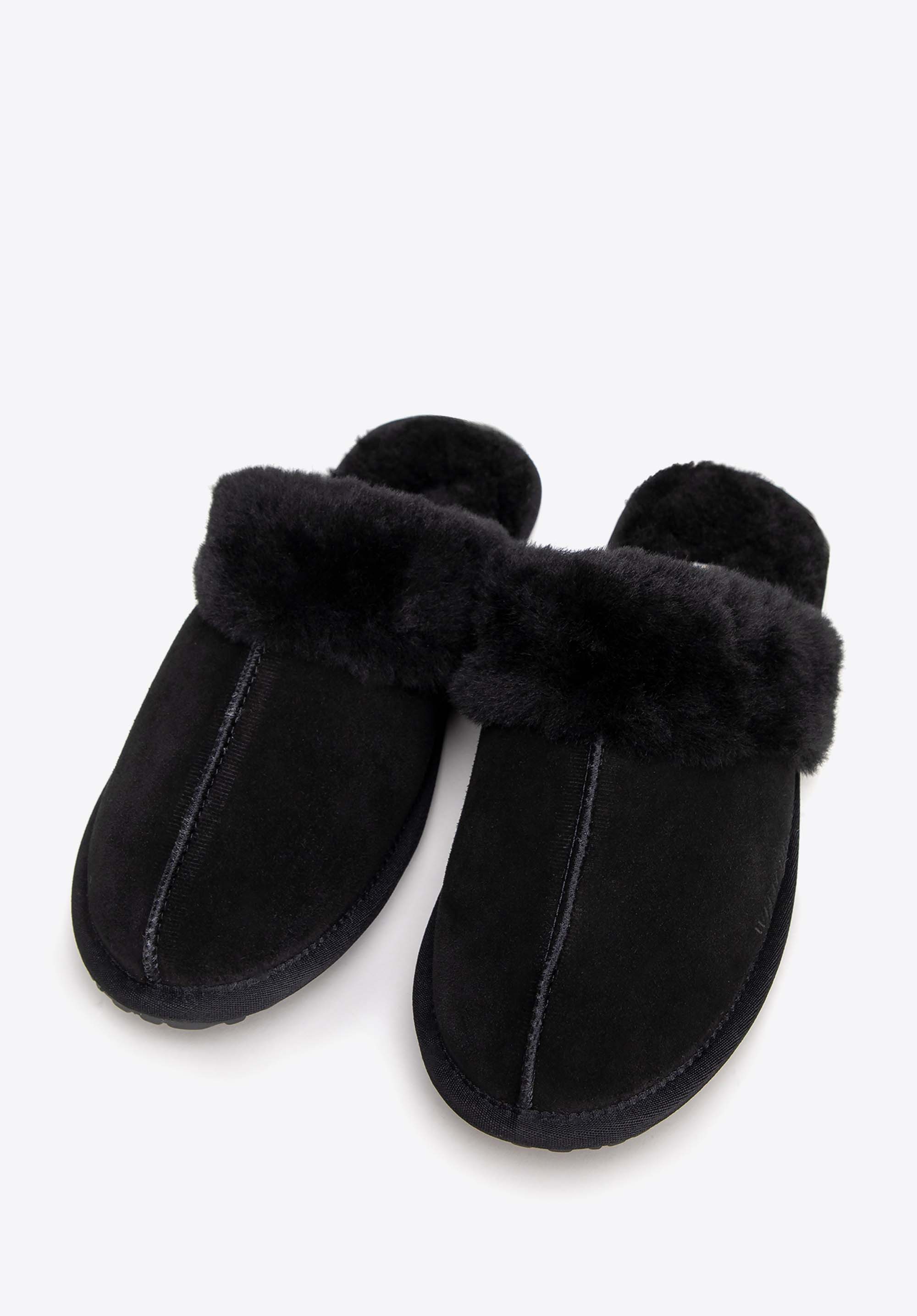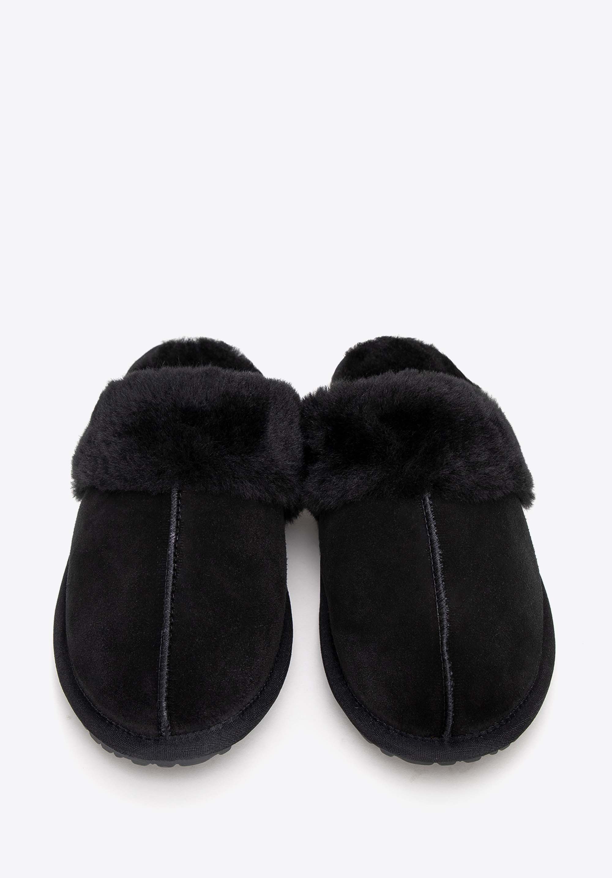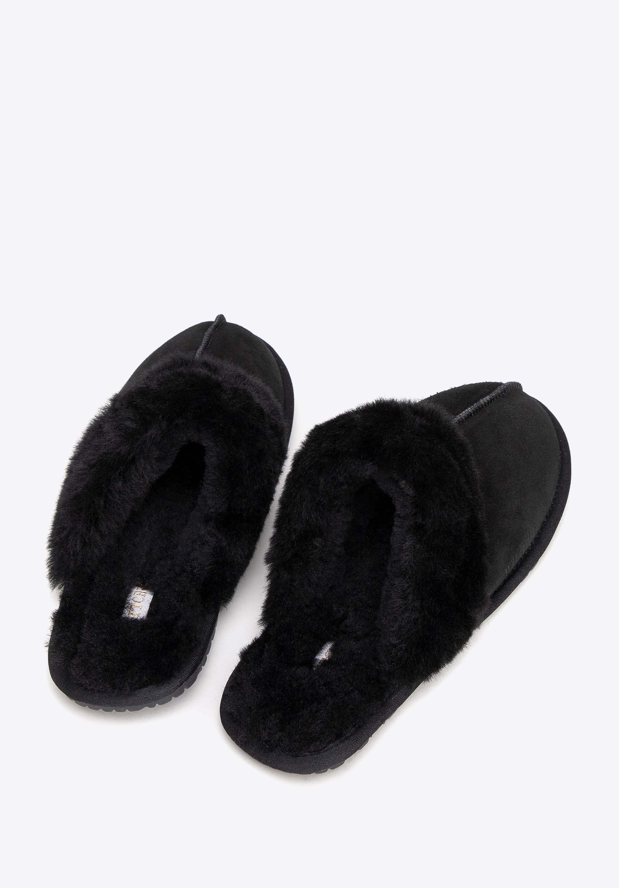 - Detale: Futerkowe obszycia dodają elegancji, podkreślając wyjątkowy charakter kapci. Przeszycie pośrodku podkreśla dbałość o każdy szczegół i wyróżnia ten model.