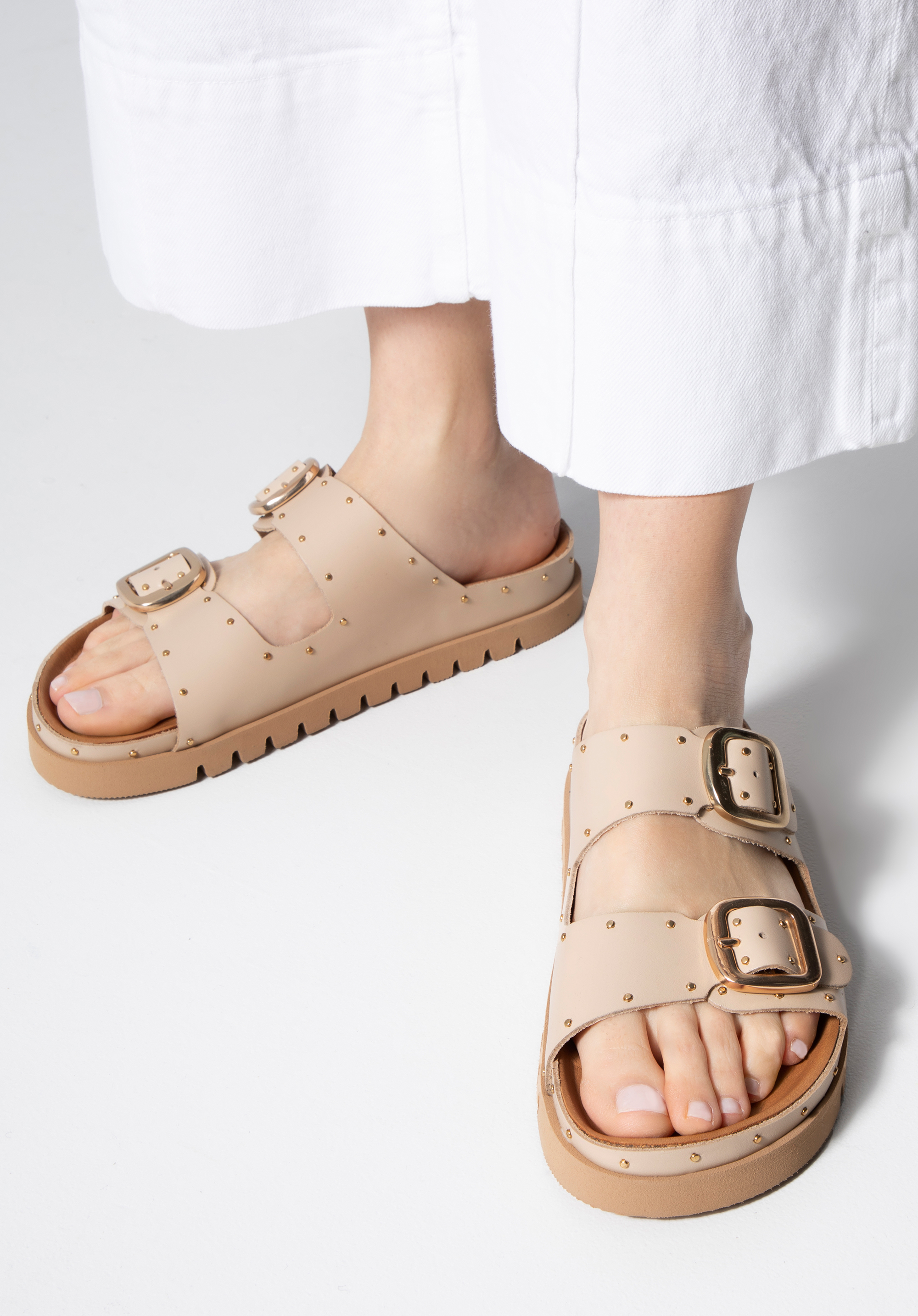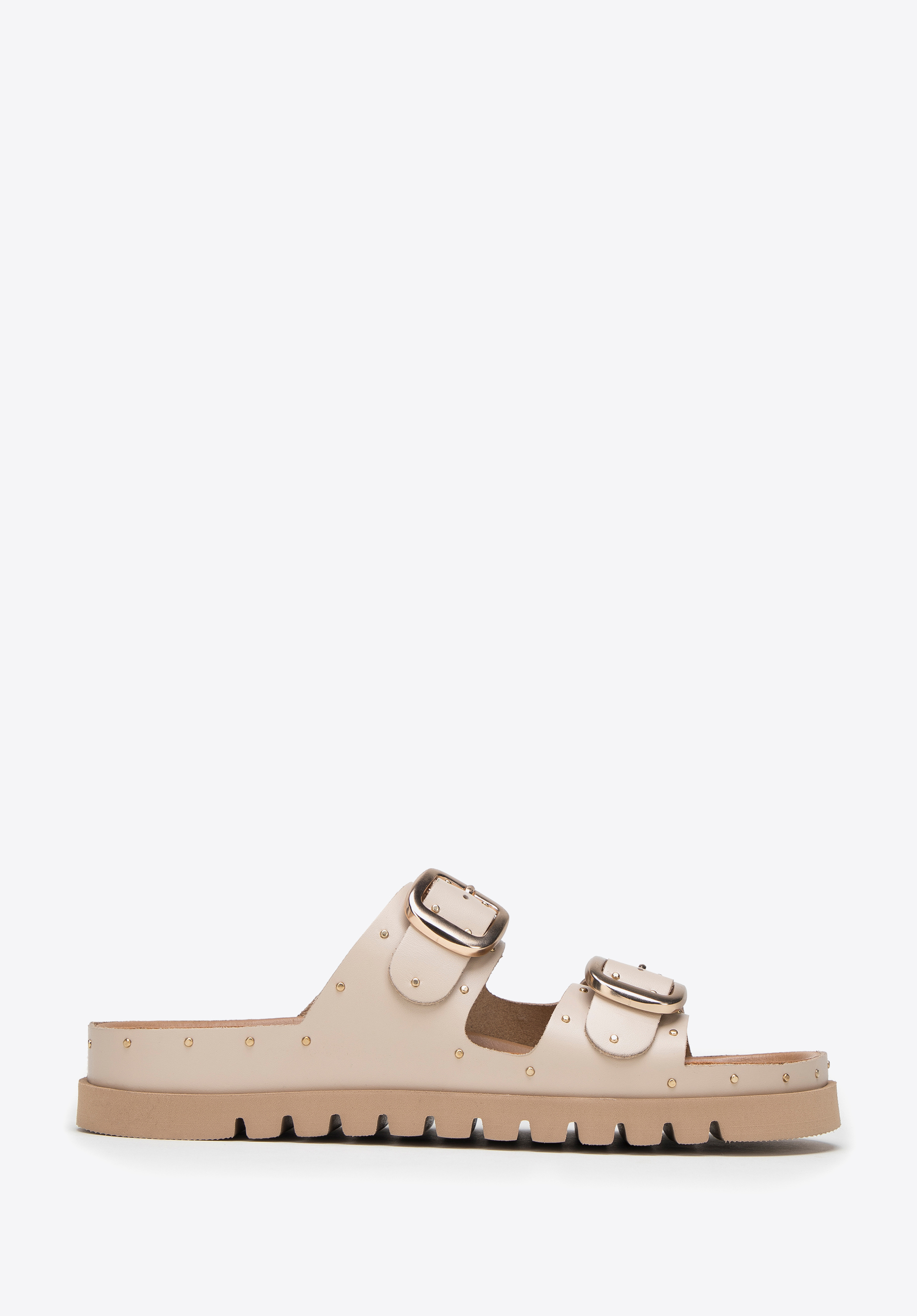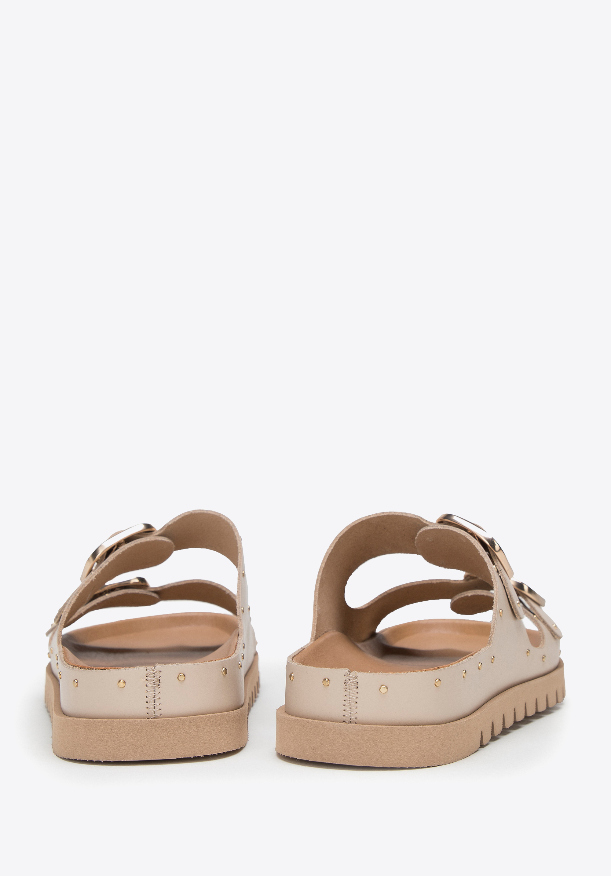Damskie klapki skórzane z drobnymi nitami na platformie to świetny wybór na lato, który dopełni niemal każdą Twoją stylizację: zarówno zwiewną sukienkę, jak i dżinsowe szorty i ulubioną koszulkę.