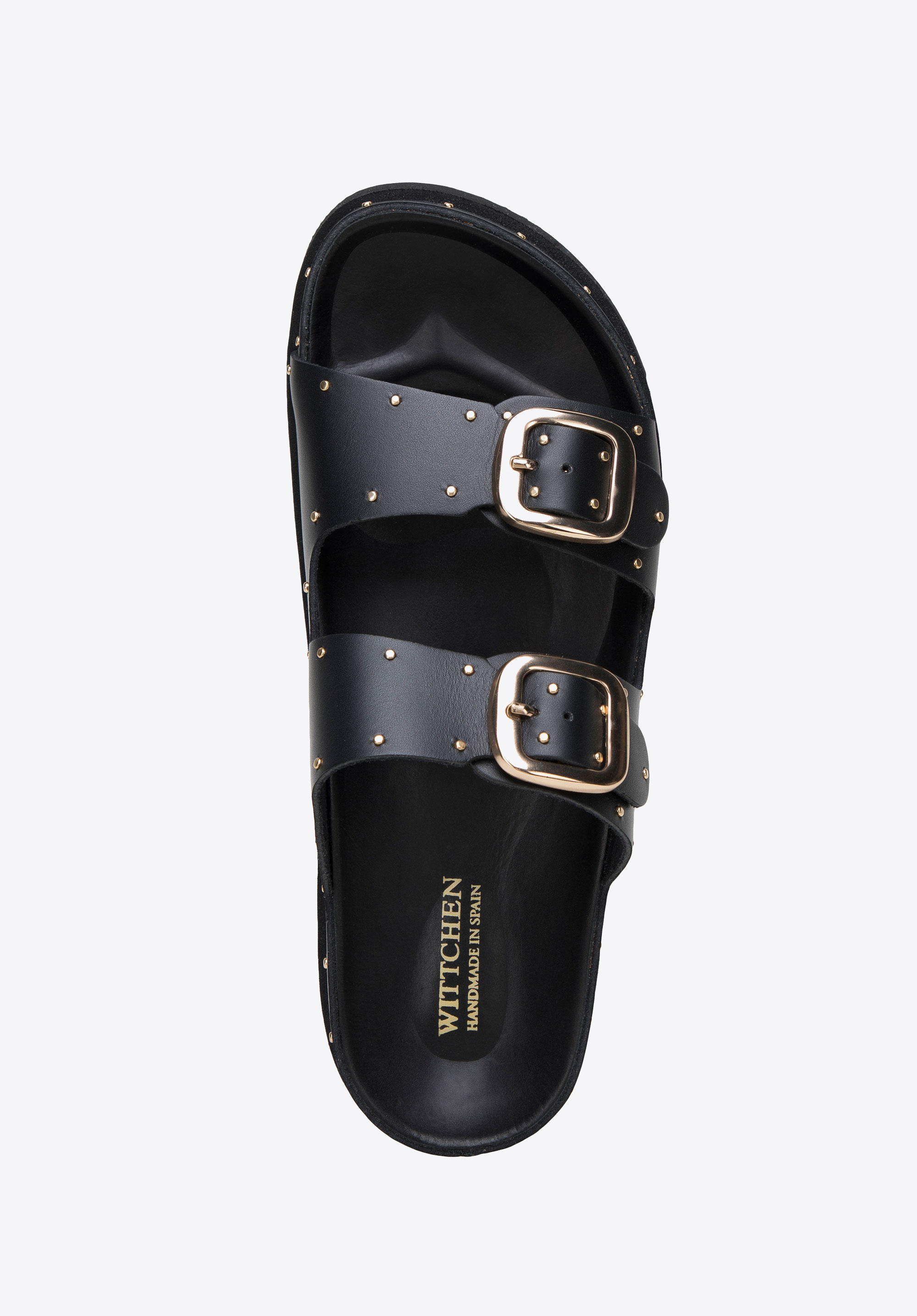 Wykonane zostały w Hiszpanii z wysokiej jakości skóry naturalnej. Zdobią je