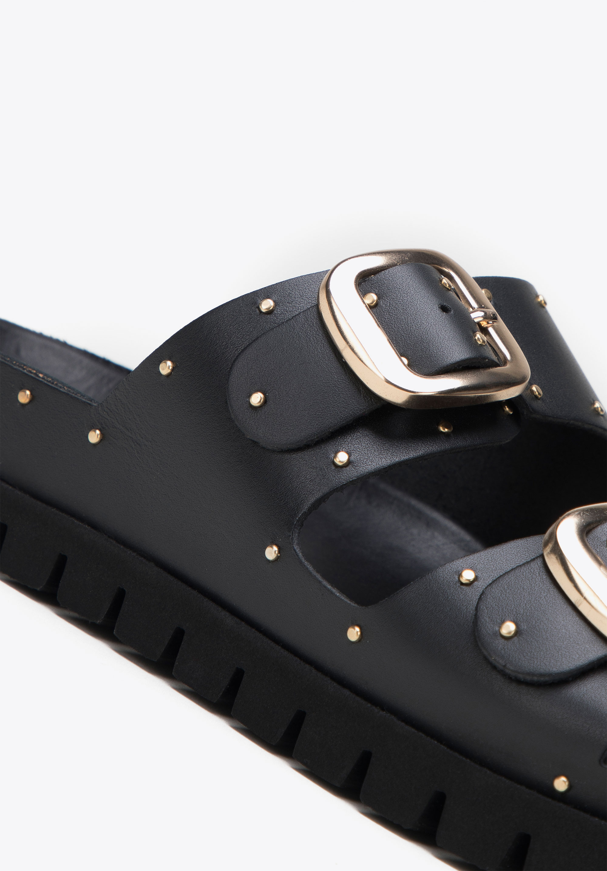 Damskie klapki skórzane z drobnymi nitami na platformie to świetny wybór na lato, który dopełni niemal każdą Twoją stylizację: zarówno zwiewną sukienkę, jak i dżinsowe szorty i ulubioną koszulkę.