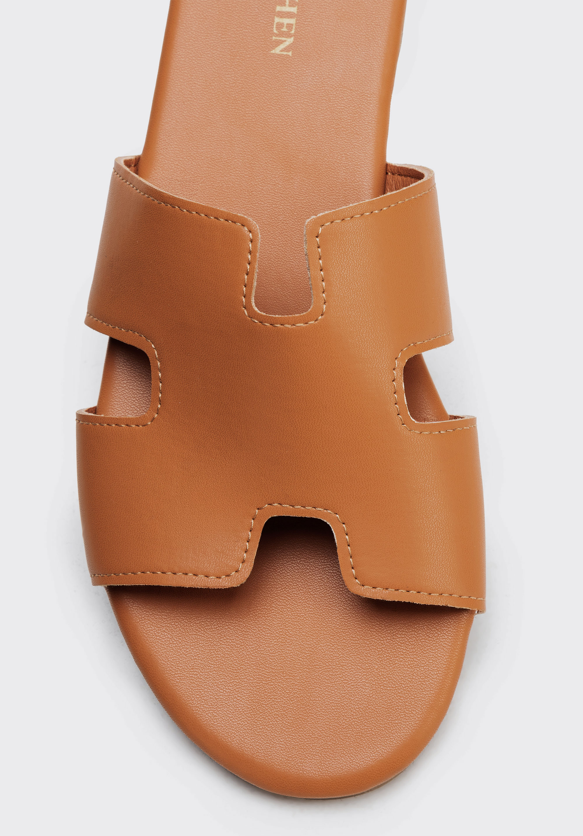 Geometryczna elegancja: sandały w kształcie litery H. Te stylowe sandały ze skóry ekologicznej to idealne połączenie wygody i elegancji. Wyróżniają się precyzyjnie wyciętym kształtem litery H, który tworzy nowoczesny, geometryczny wzór z przodu. Smukła, lekka konstrukcja z płaskim obcasem idealnie nadaje się do noszenia na co dzień, a zaokrąglony nosek zapewnia całodzienny komfort. Wkładka i podszewka ze skóry ekologicznej zapewniają wygodę, a podeszwa TPR zapewnia stabilność na różnych nawierzchniach. Dla kogo? Jeśli szukasz wygodnych, a zarazem eleganckich butów na letnie dni, które uzupełnią Twoje codzienne stylizacje, te sandały będą idealnym wyborem. Ich minimalistyczny design doskonale komponuje się z letnimi stylizacjami. Nasza rada: Połącz je z zwiewną sukienką w kwiaty i pastelową torebką typu crossbody, aby uzyskać stylowy, a zarazem wygodny wygląd podczas spaceru. Idealnie pasują również do swobodnych spodni lub jeansów, a torba typu shopper podkreśla swobodny charakter stylizacji. Kluczowe cechy: Materiał: Skóra ekologiczna jest łatwa w pielęgnacji i gwarantuje długotrwałą jakość oraz stylowy wygląd. Wycięcie w kształcie litery H: Geometryczny wzór z przodu sprawia, że buty przyciągają wzrok, optycznie wydłużają stopę i dodają elegancji każdej stylizacji. Płaski obcas: Zapewnia całodzienny komfort bez obciążania stóp – szczególnie ważne w ciepłe dni, gdy komfort jest priorytetem. Zaokrąglony, otwarty nosek: Nadaje mułom subtelnej elegancji, a jednocześnie zapewnia wygodę.