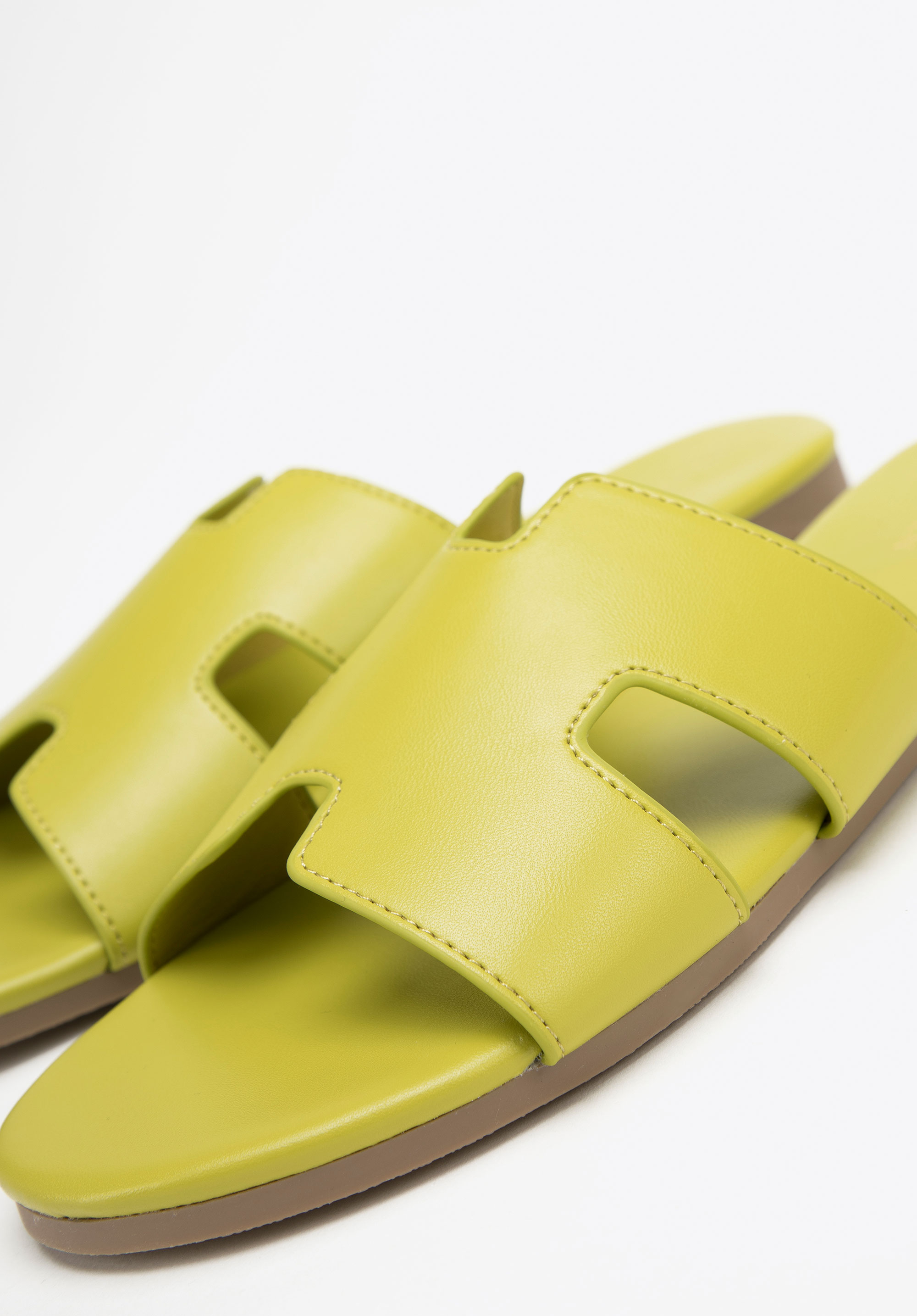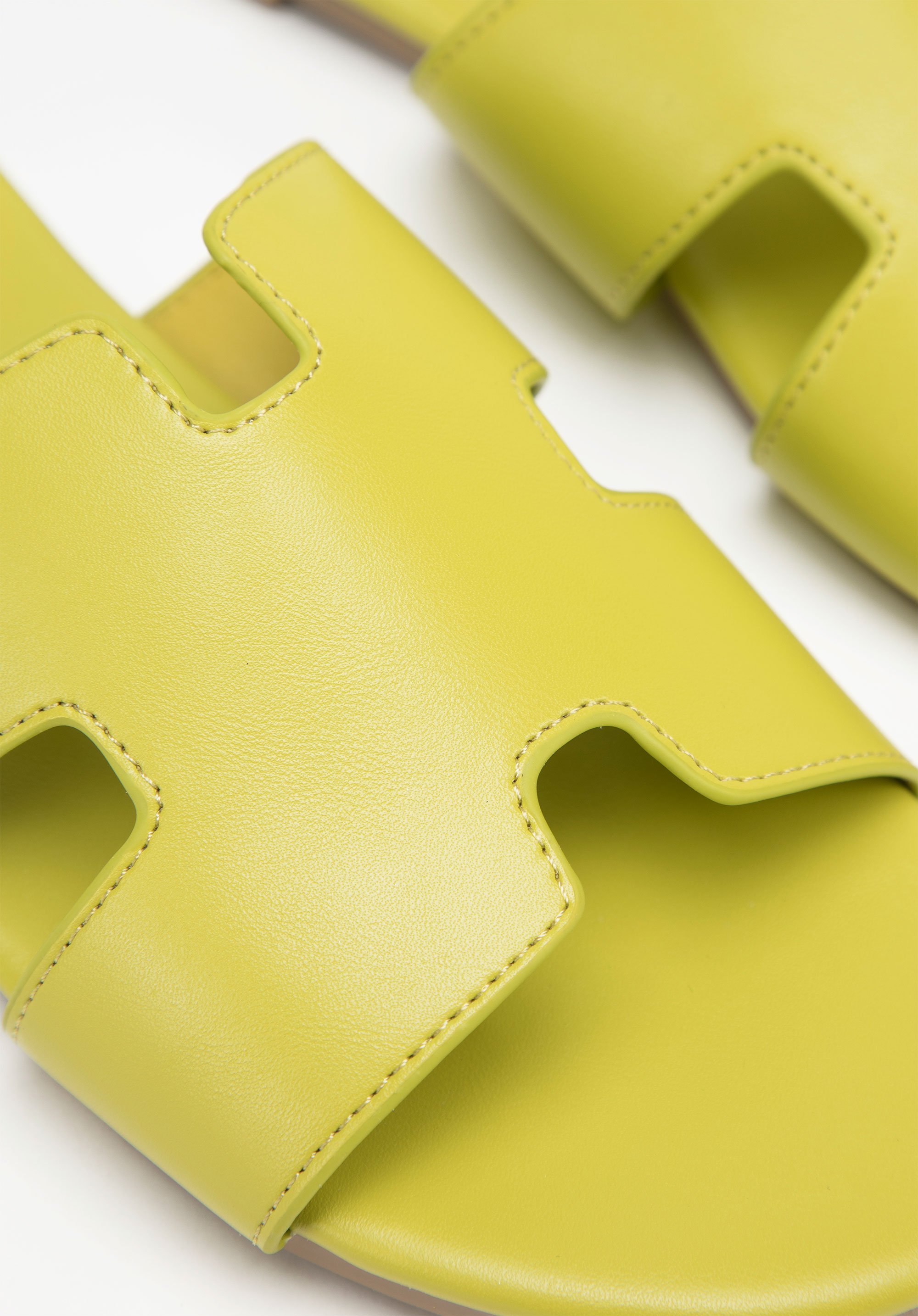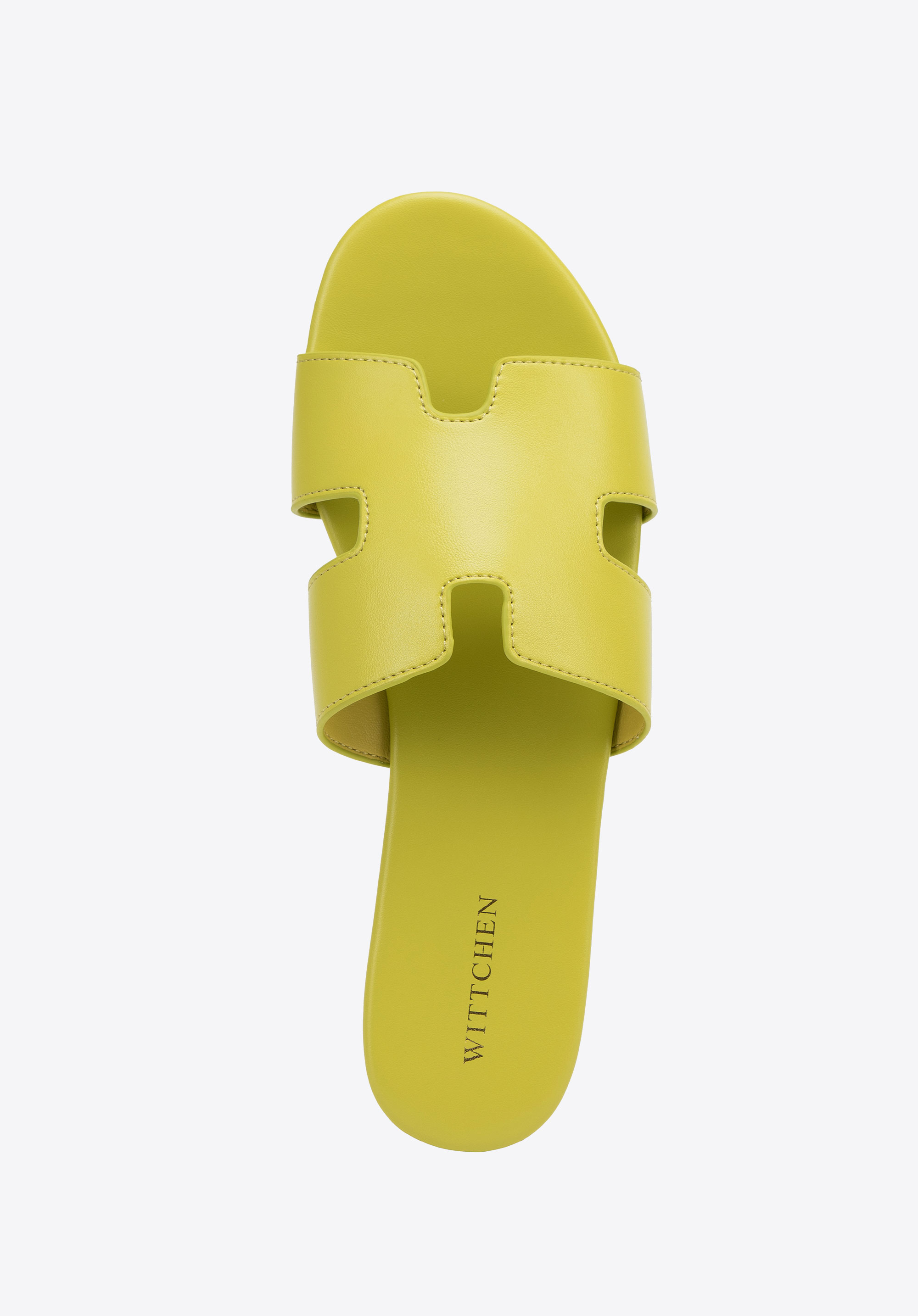 z wysokiej jakości skóry ekologicznej. Przód wycięty w kształt litery "H" zdobi je i stabilnie utrzyma stopę. Ten model jest