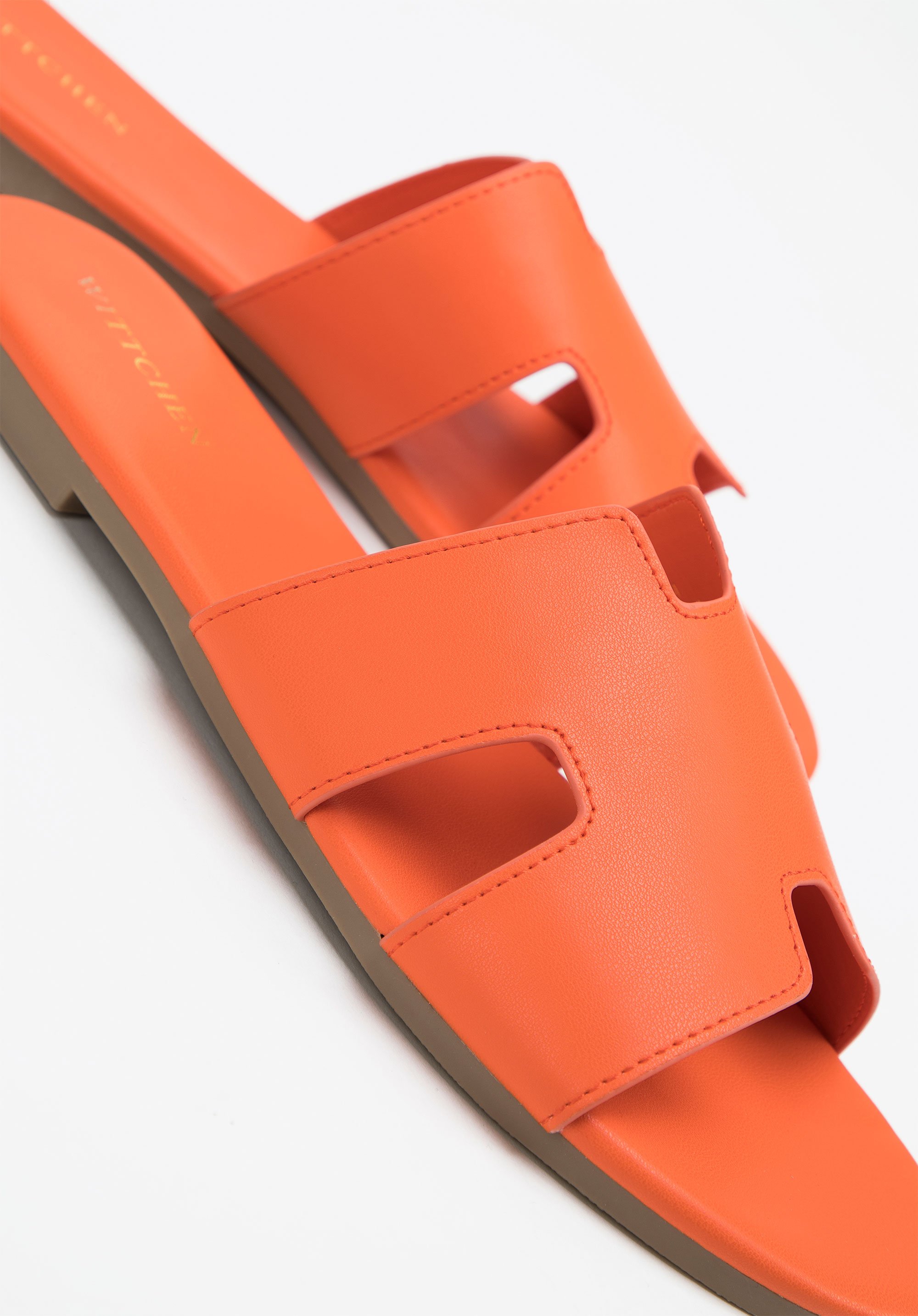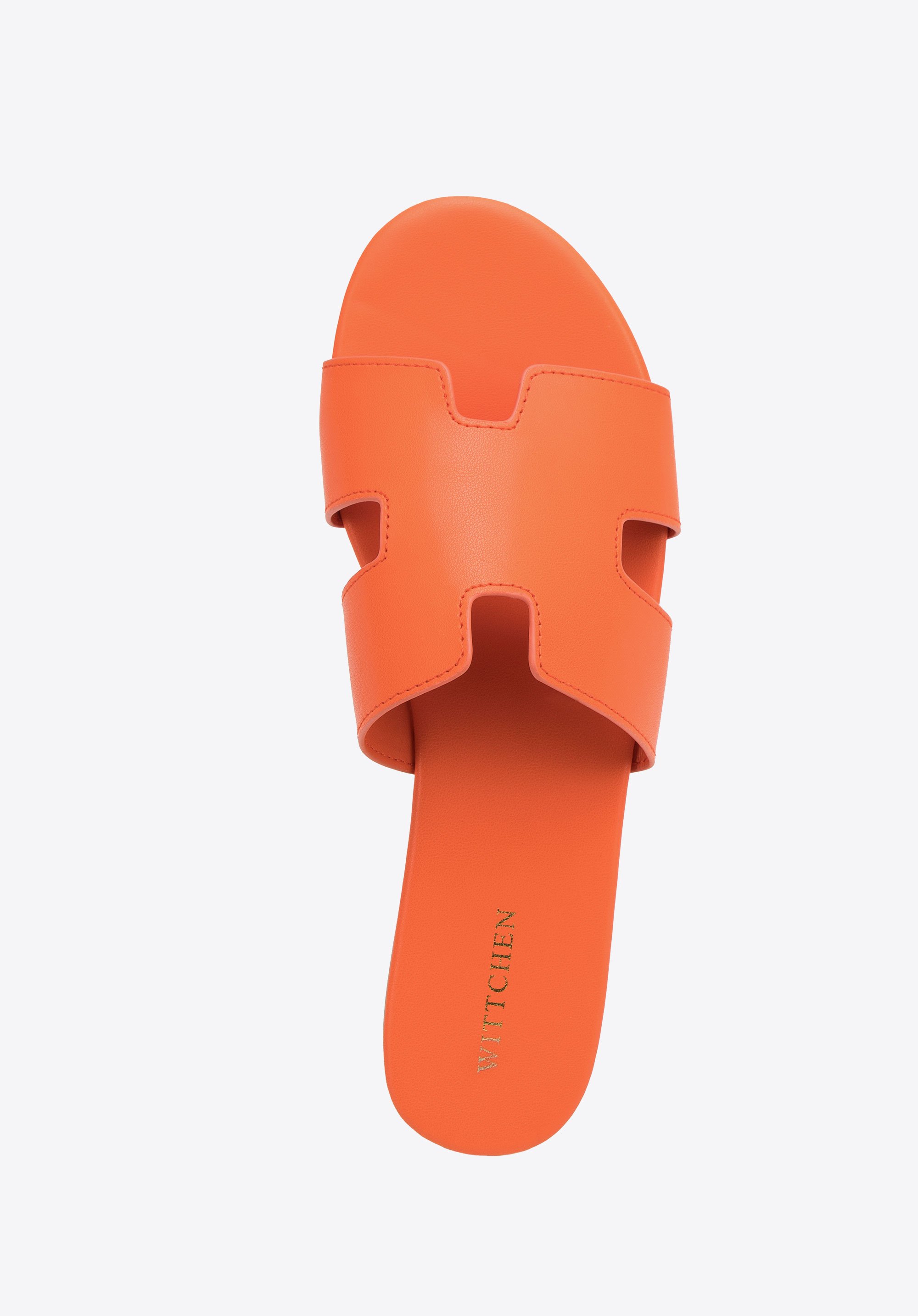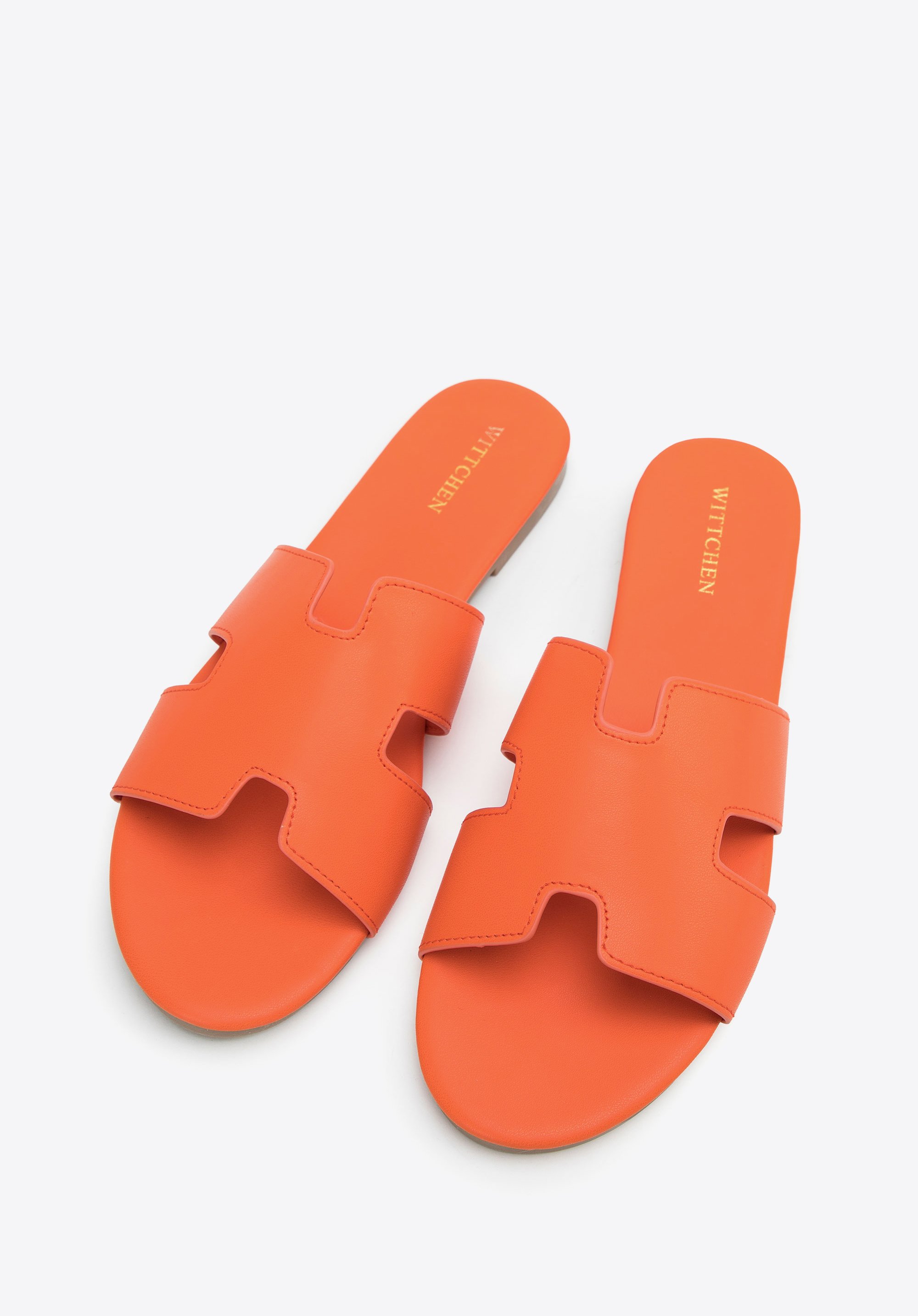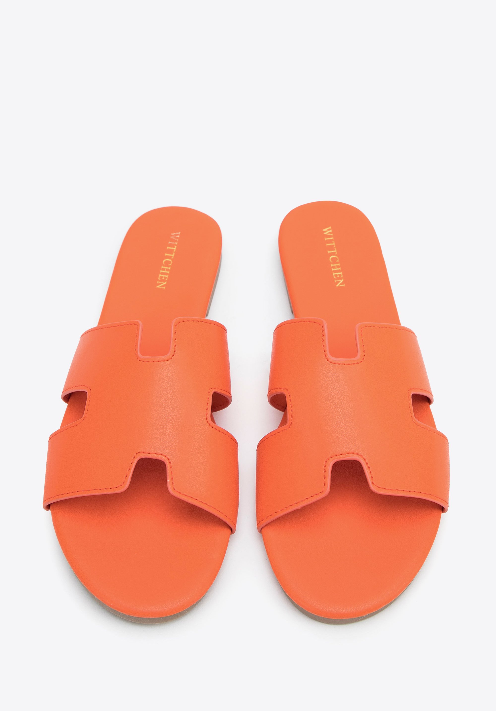 z wysokiej jakości skóry ekologicznej. Przód wycięty w kształt litery "H" zdobi je i stabilnie utrzyma stopę. Ten model jest