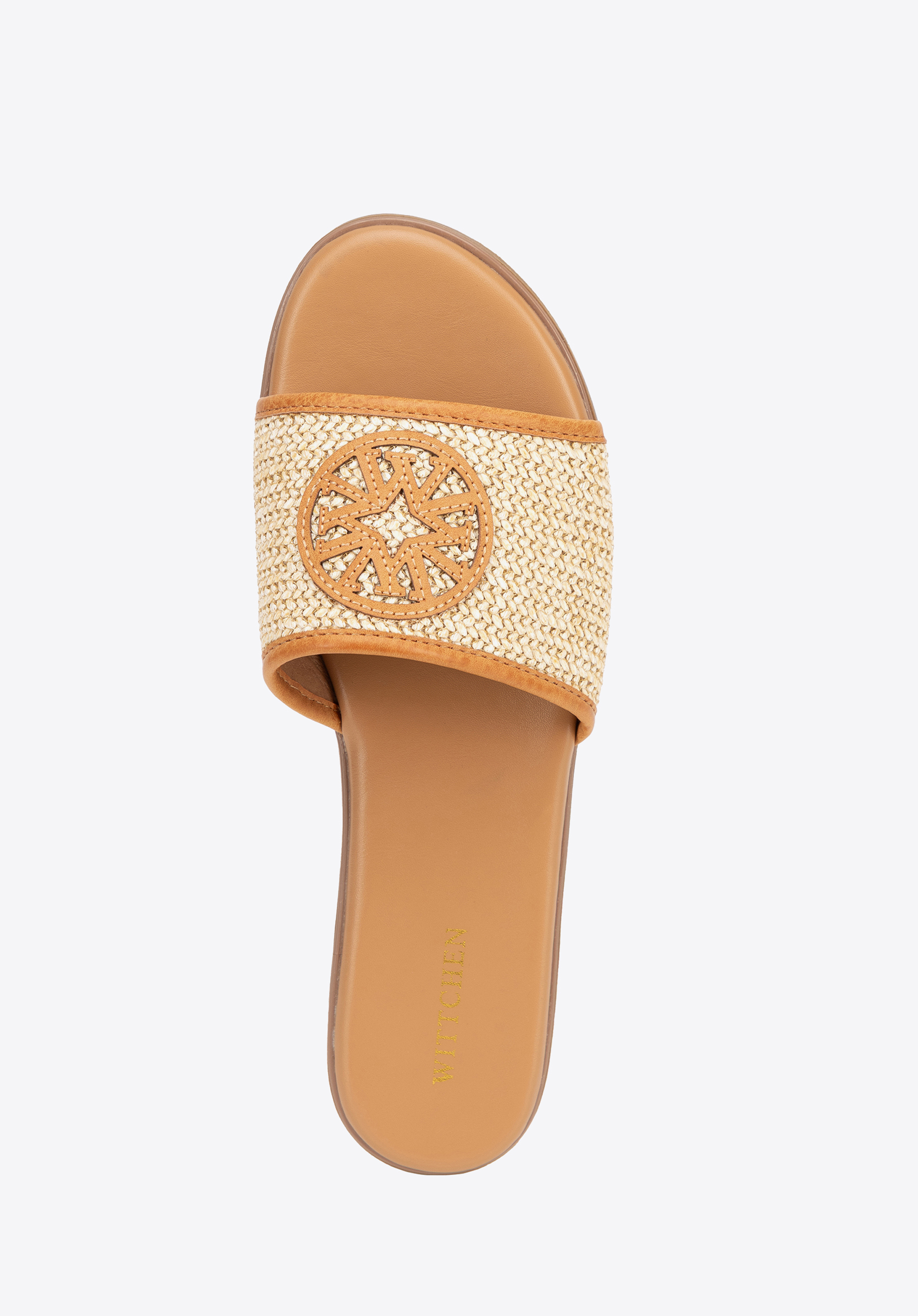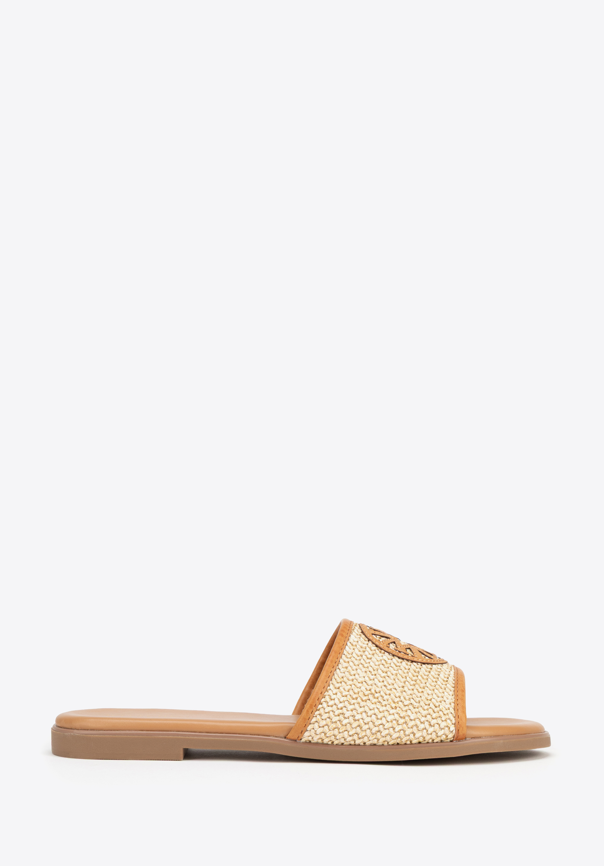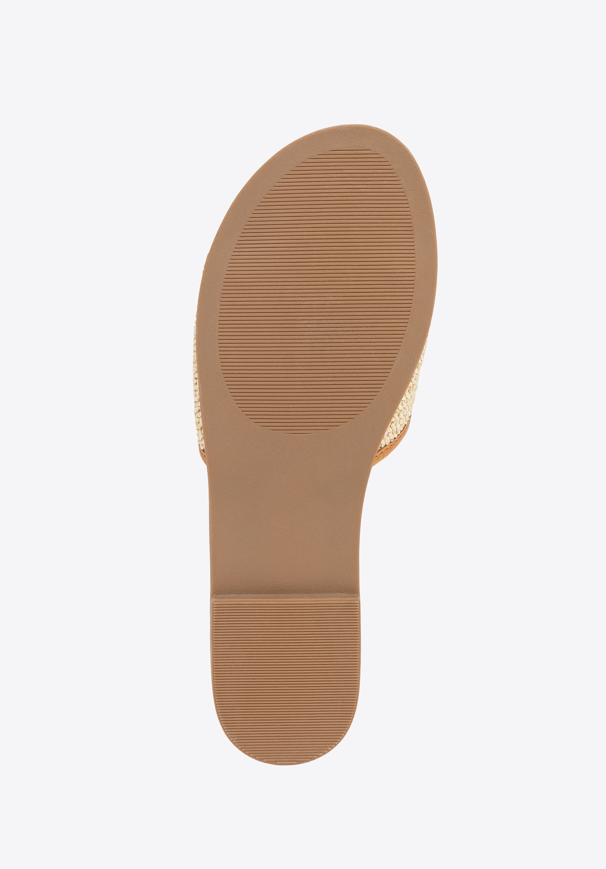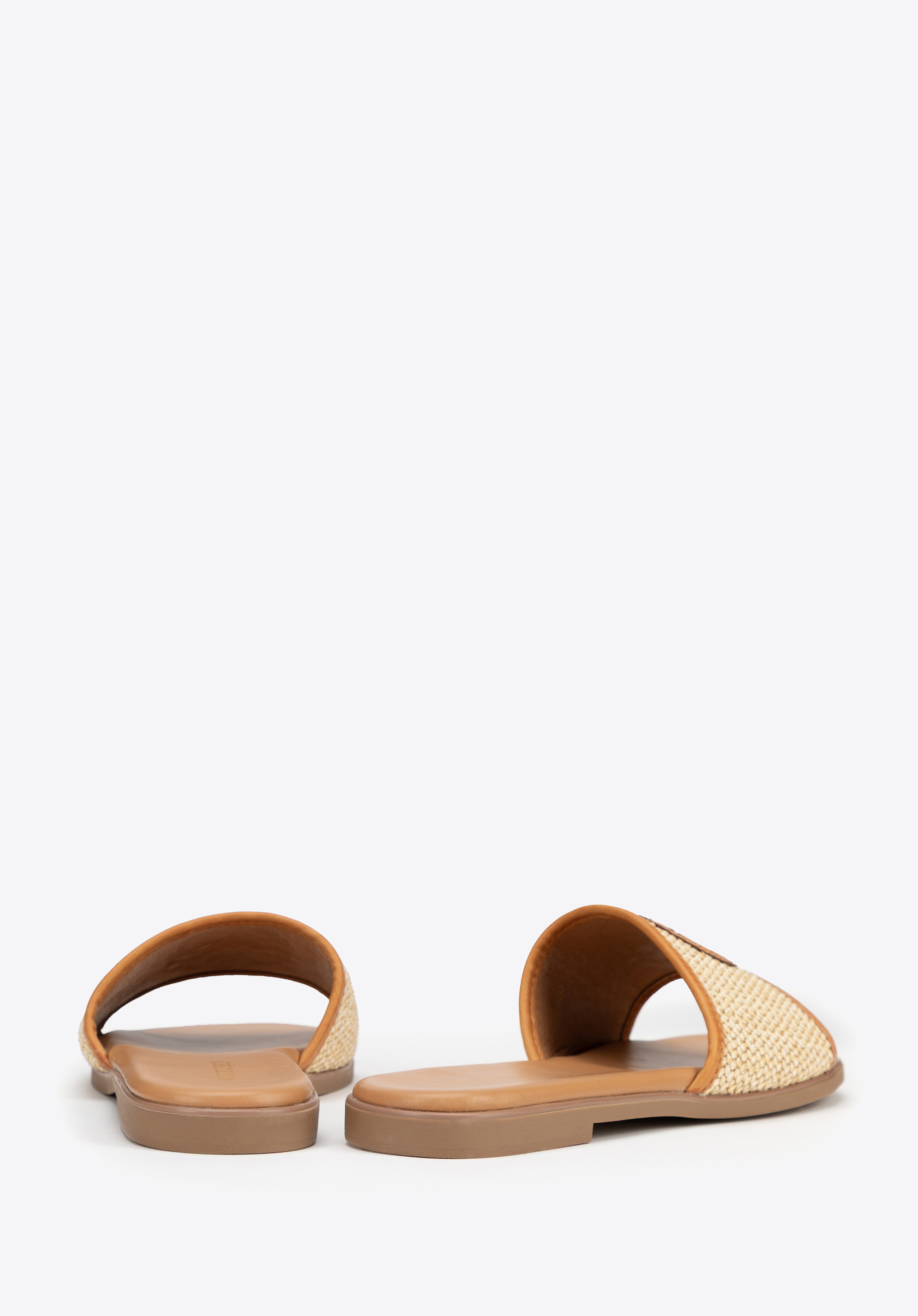 Damskie klapki z plecionej ekoskóry beżowo - brązowe