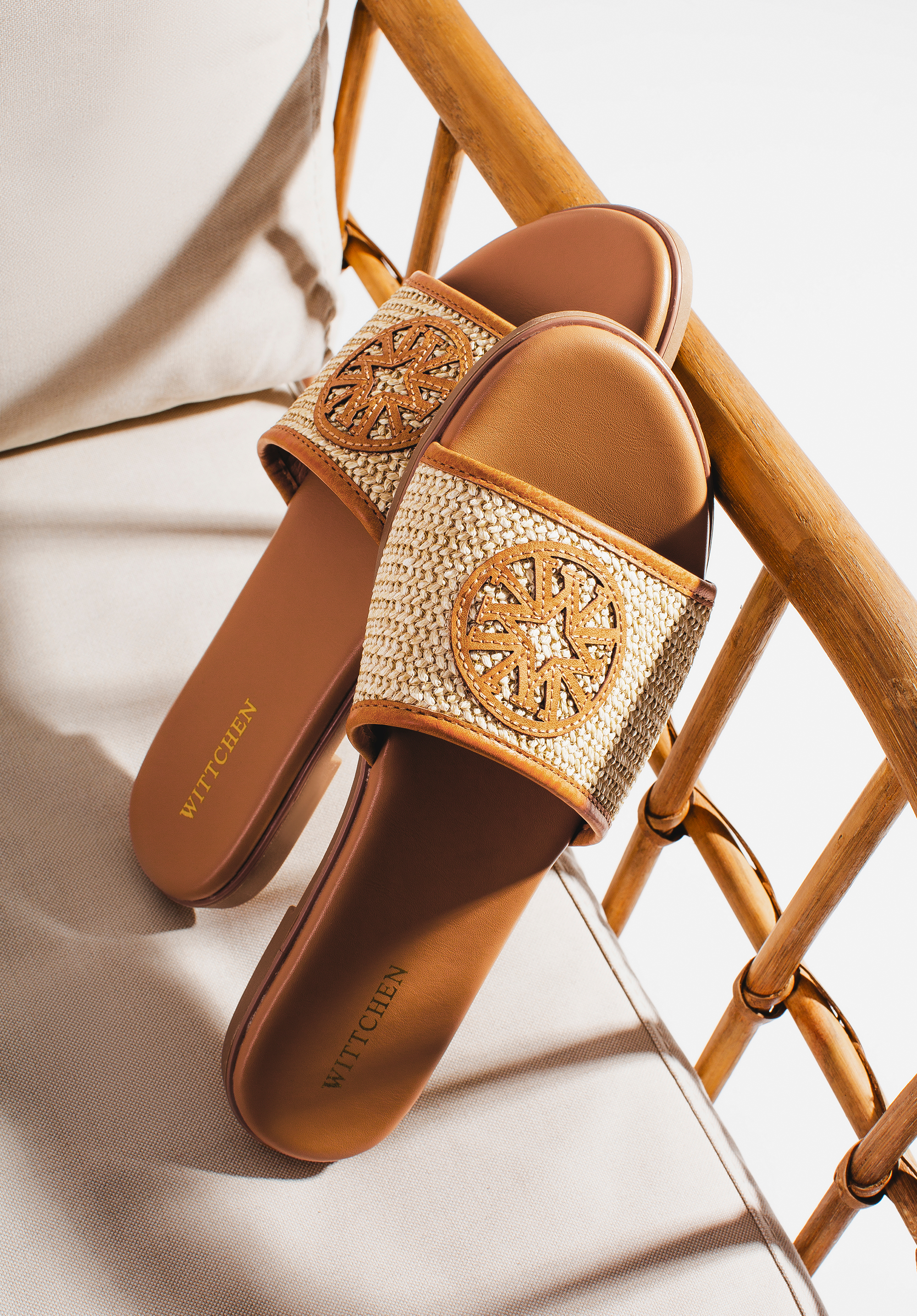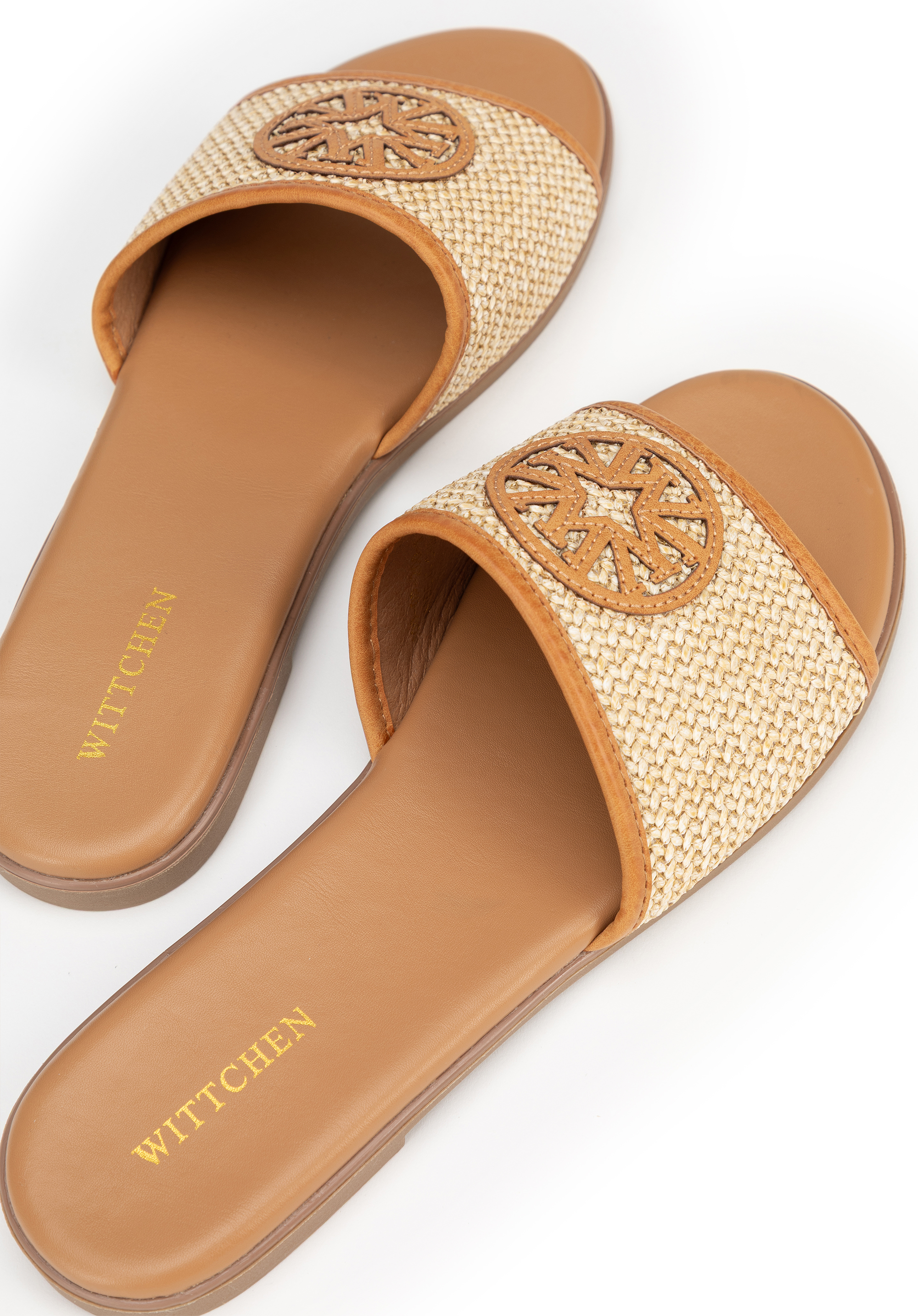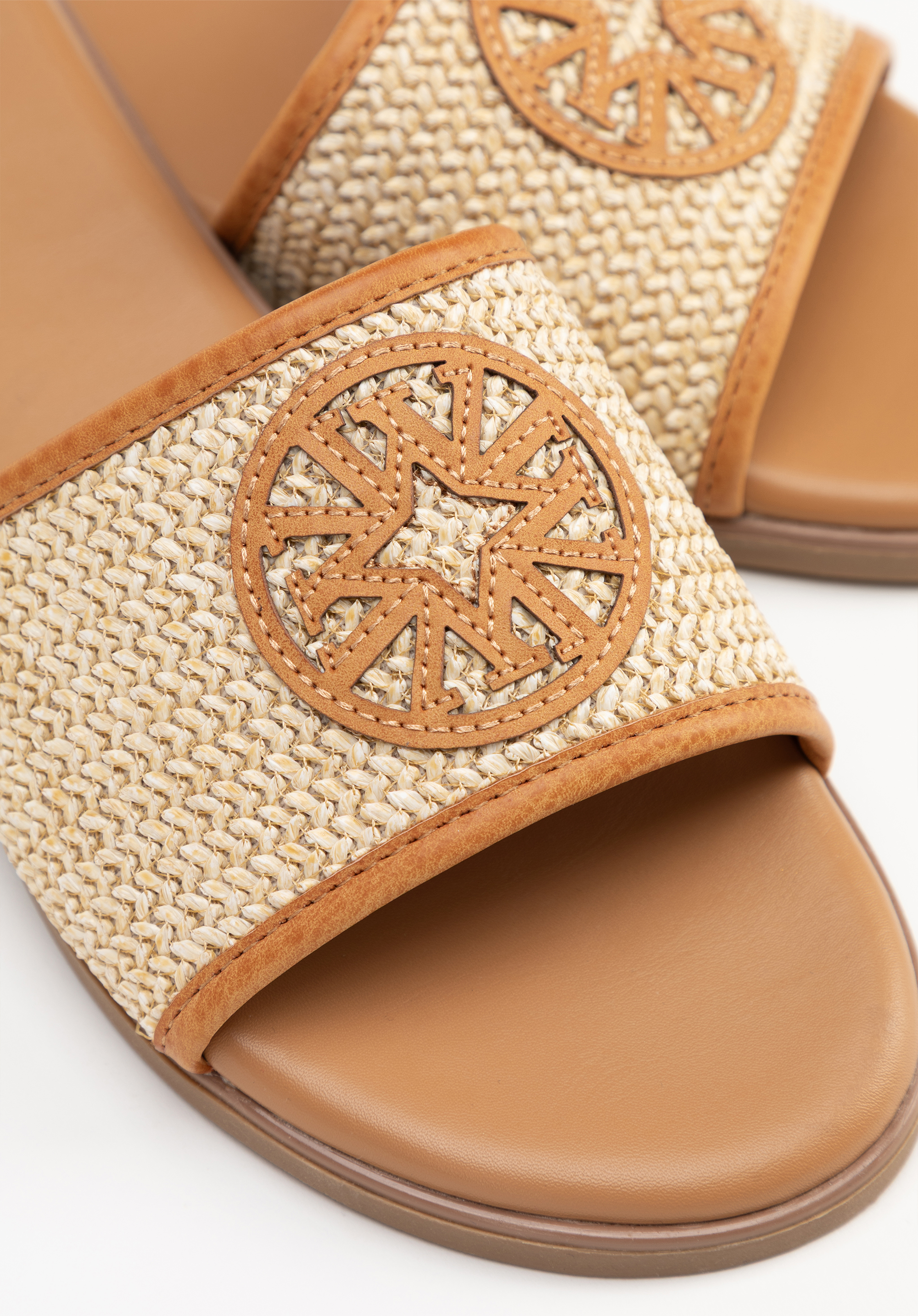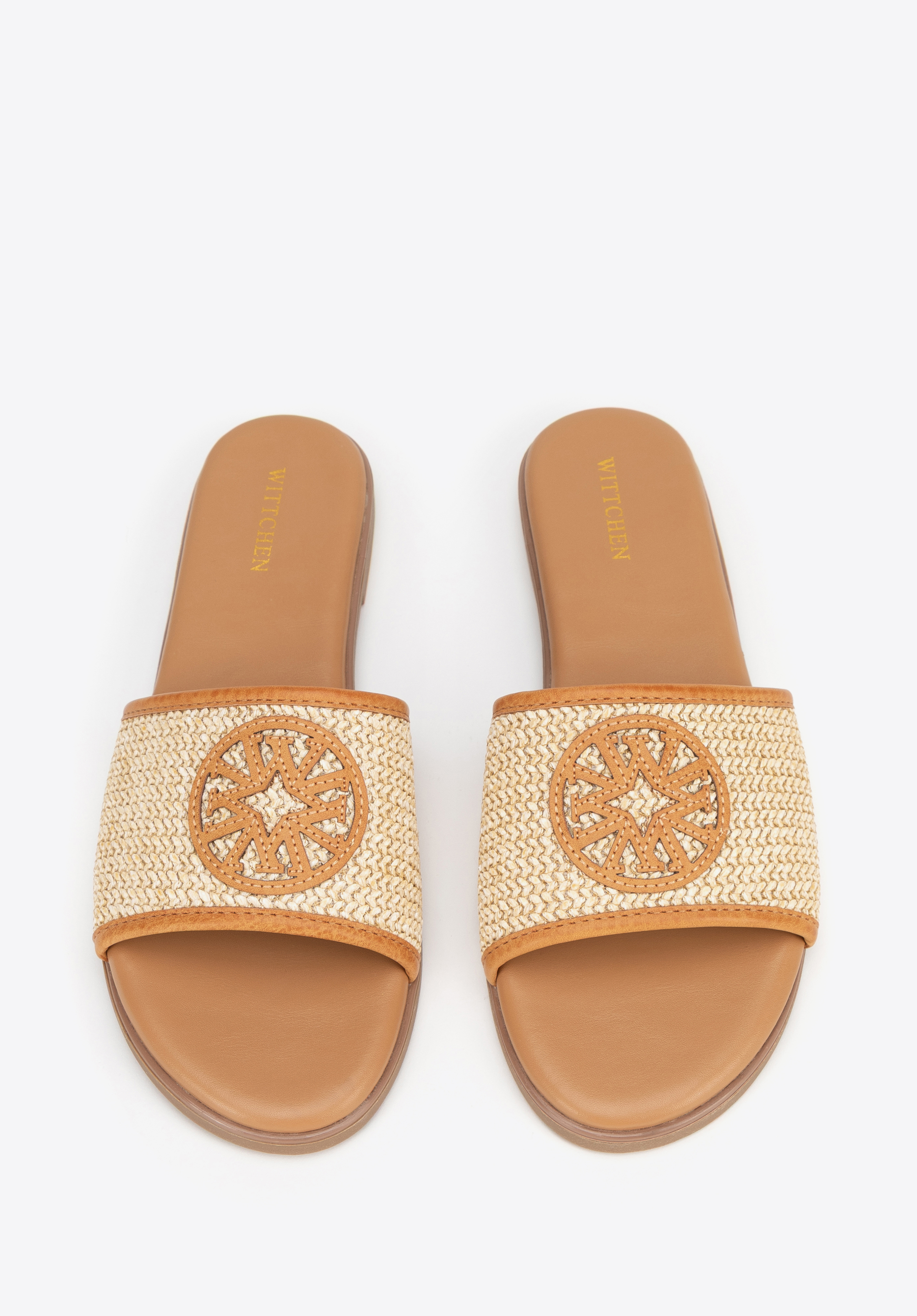 Damskie klapki z plecionej ekoskóry beżowo - brązowe