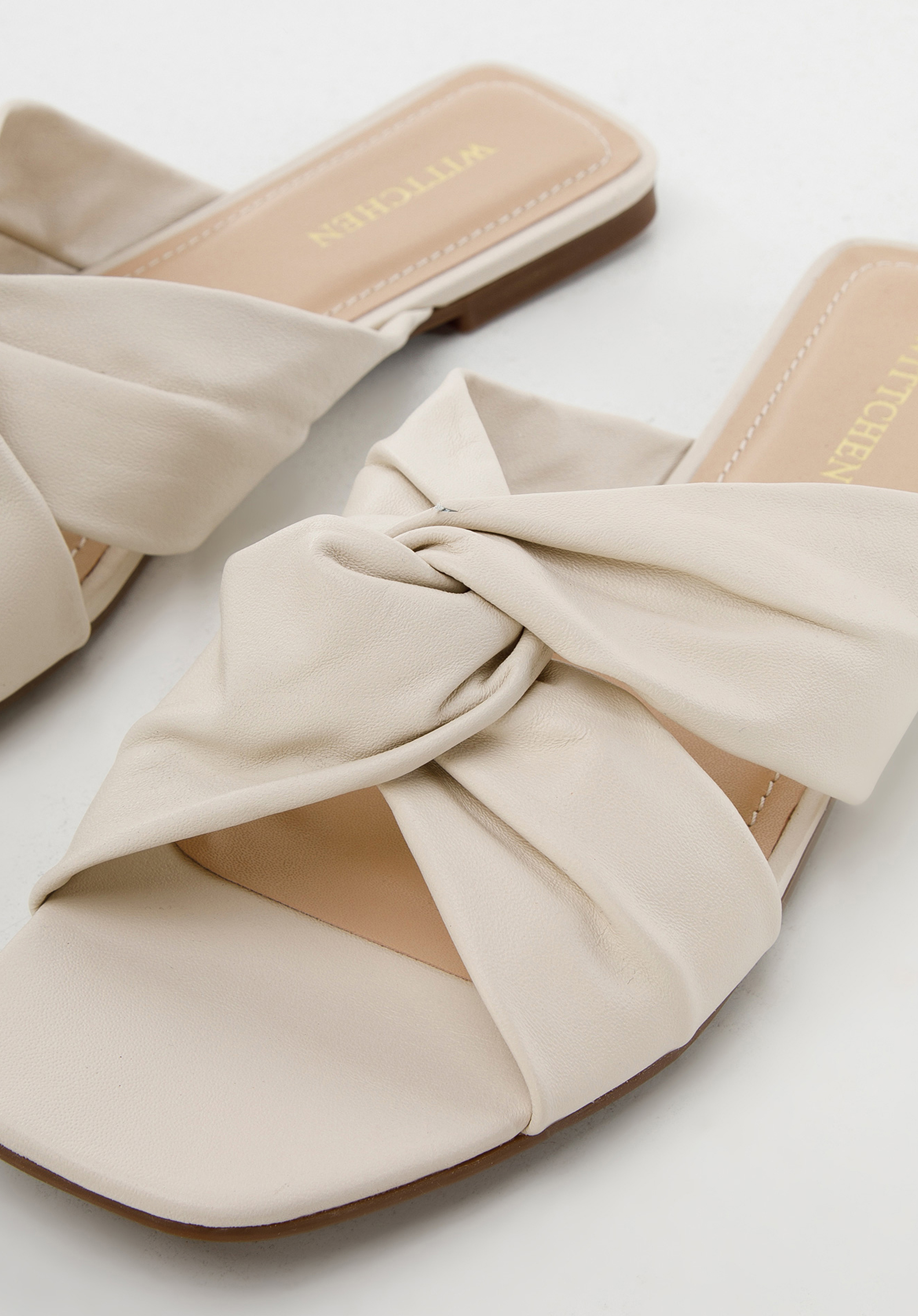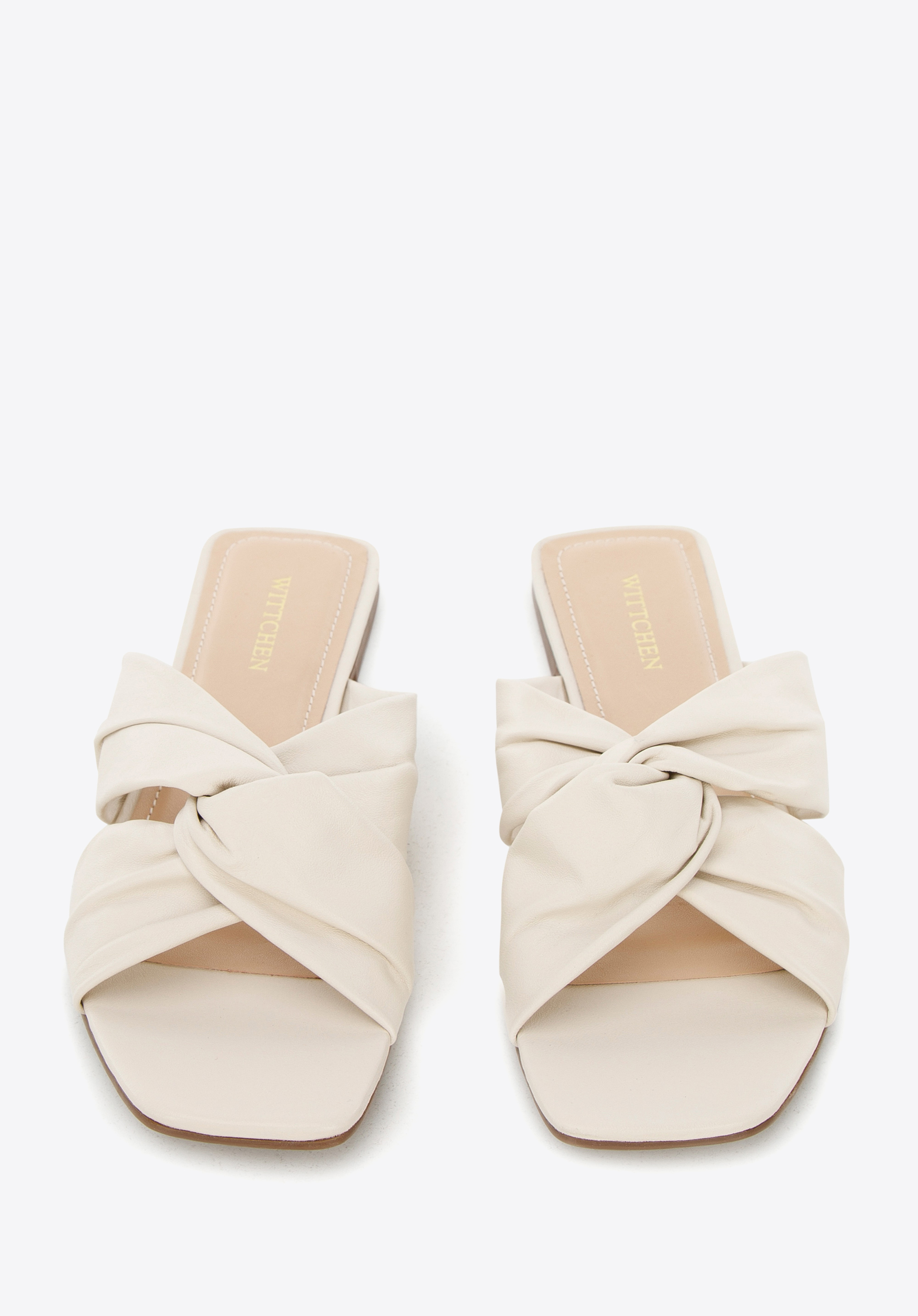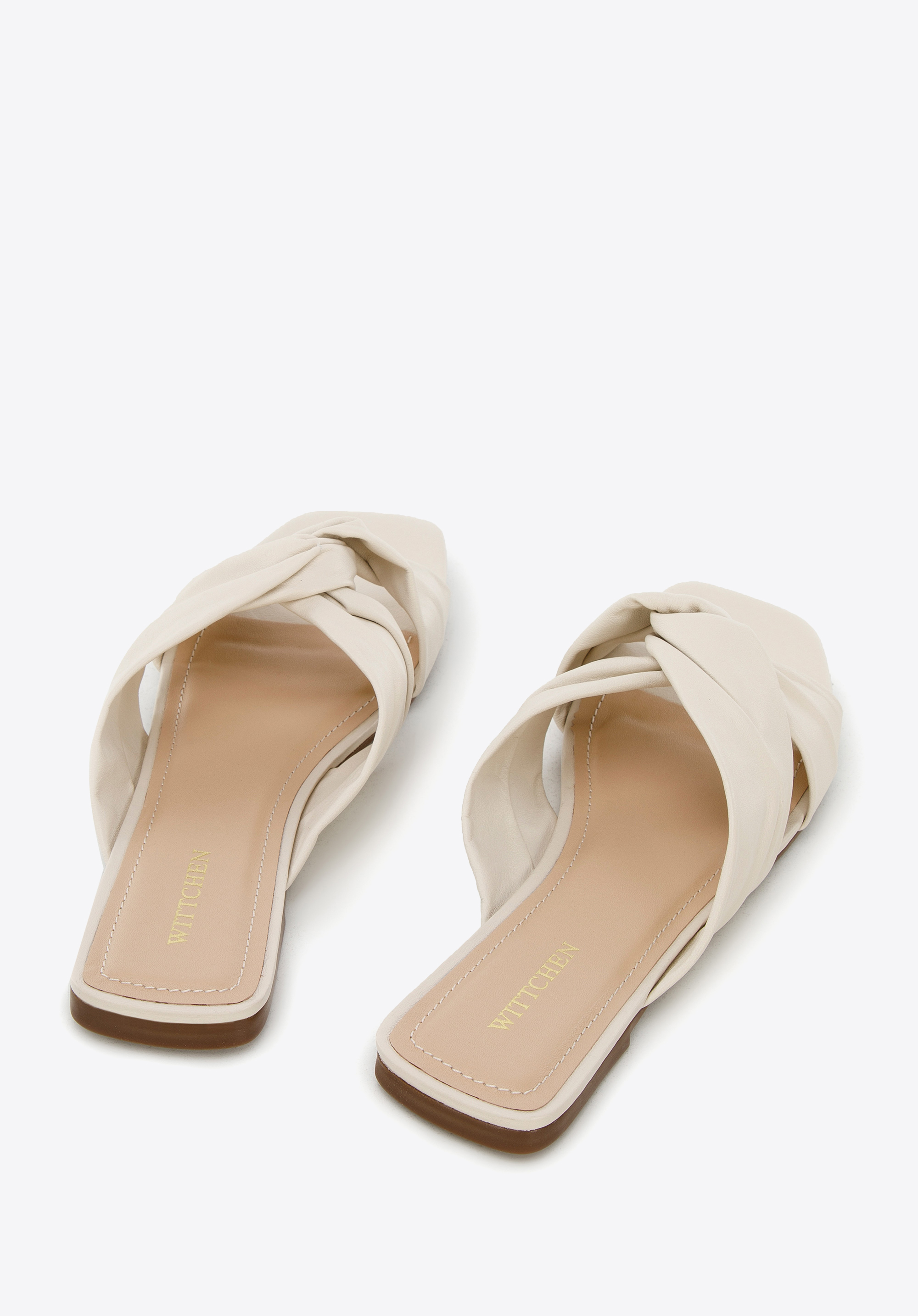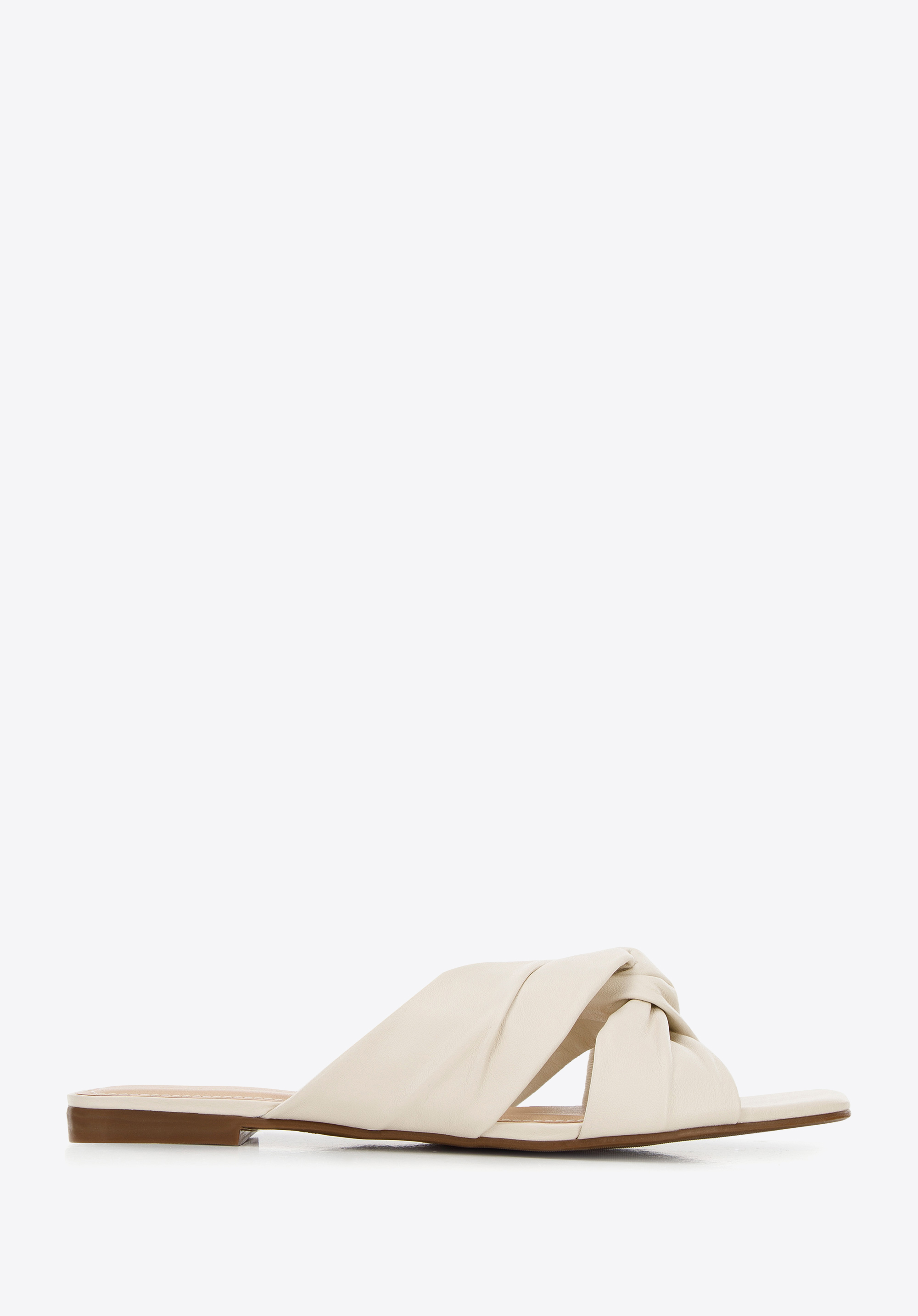 Skórzane klapki na płaskim obcasie.