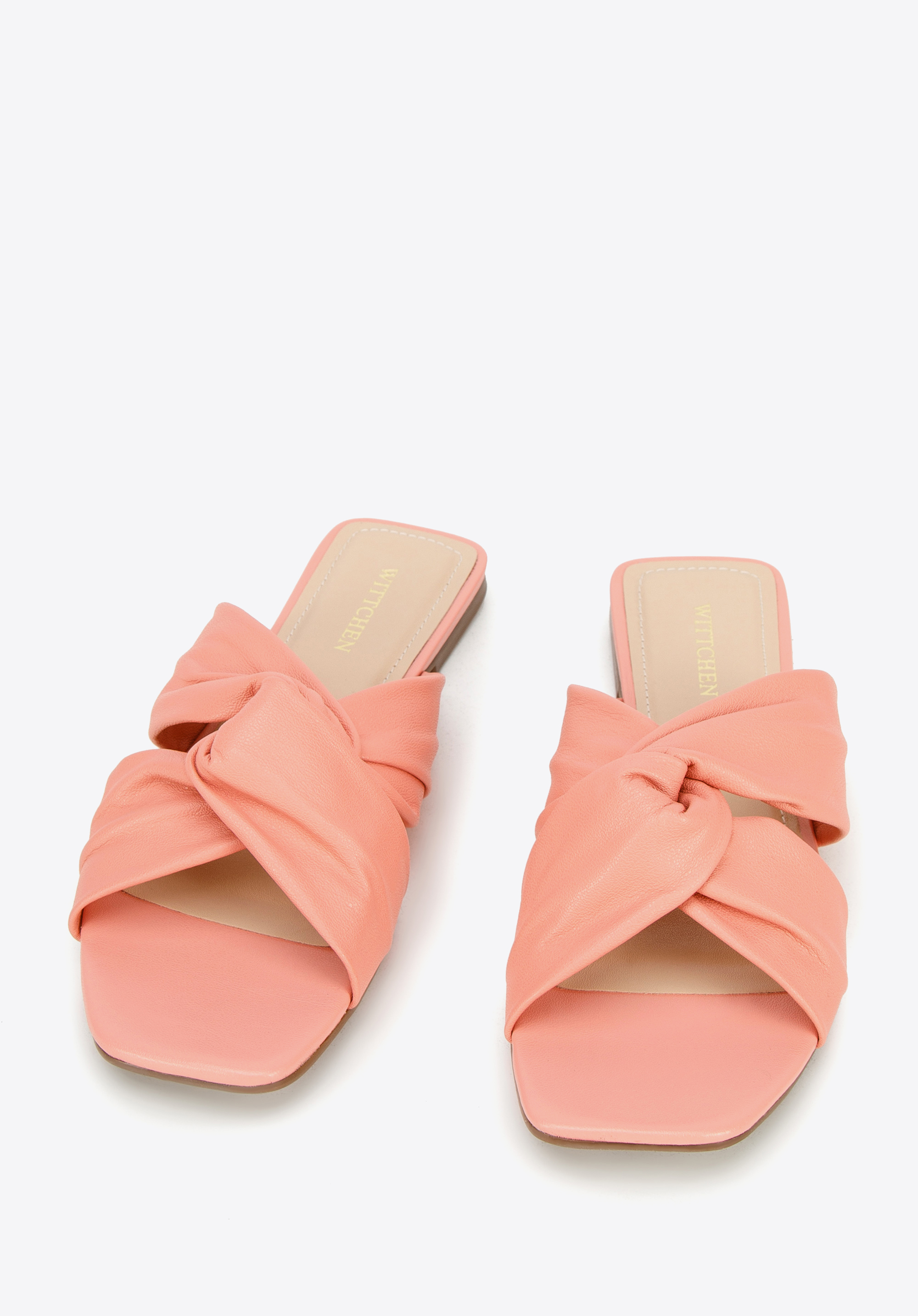 Skórzane klapki na płaskim obcasie.