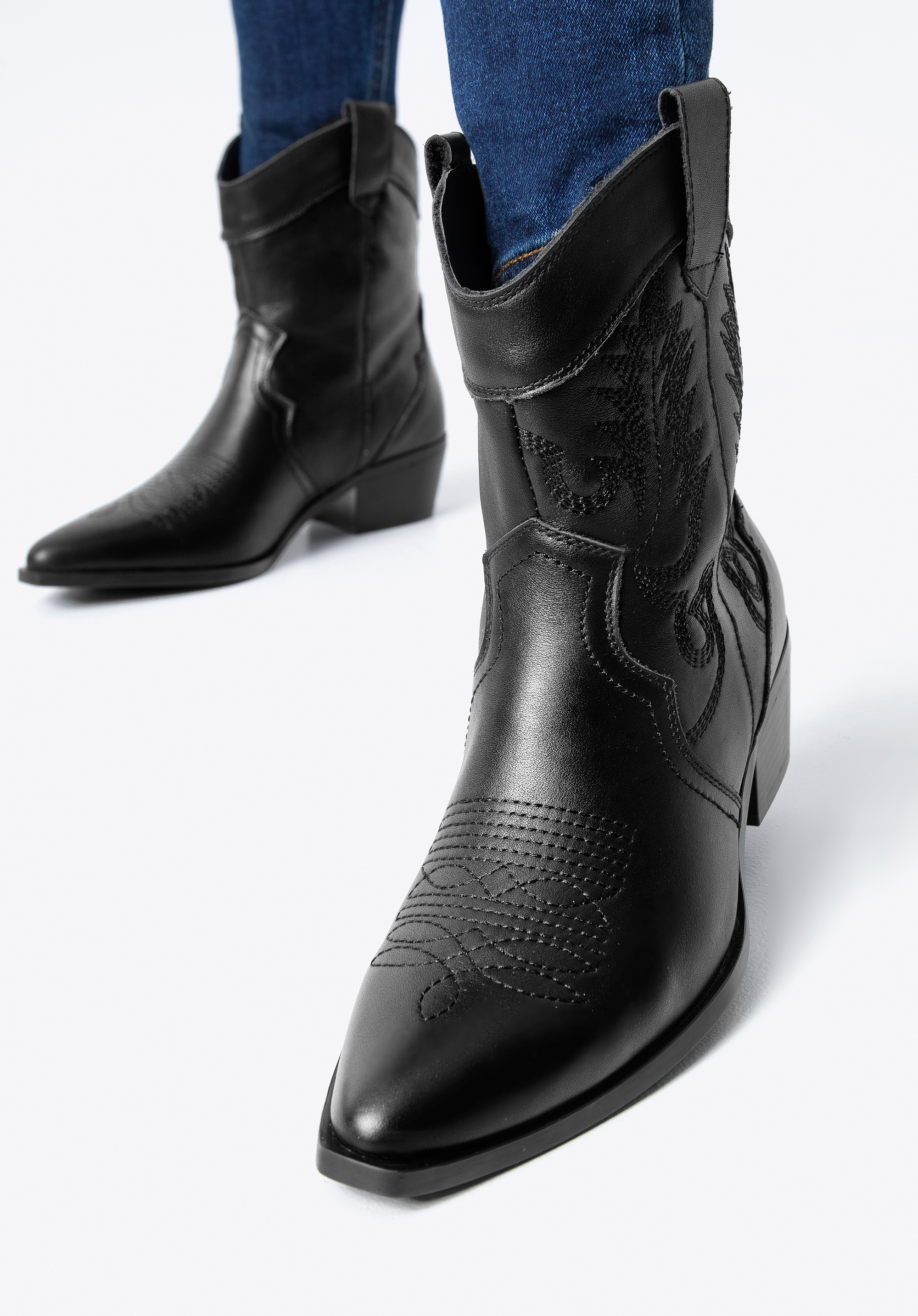 damskie kowbojki skórzane z haftem to świetny wybór na jesień i wiosnę.