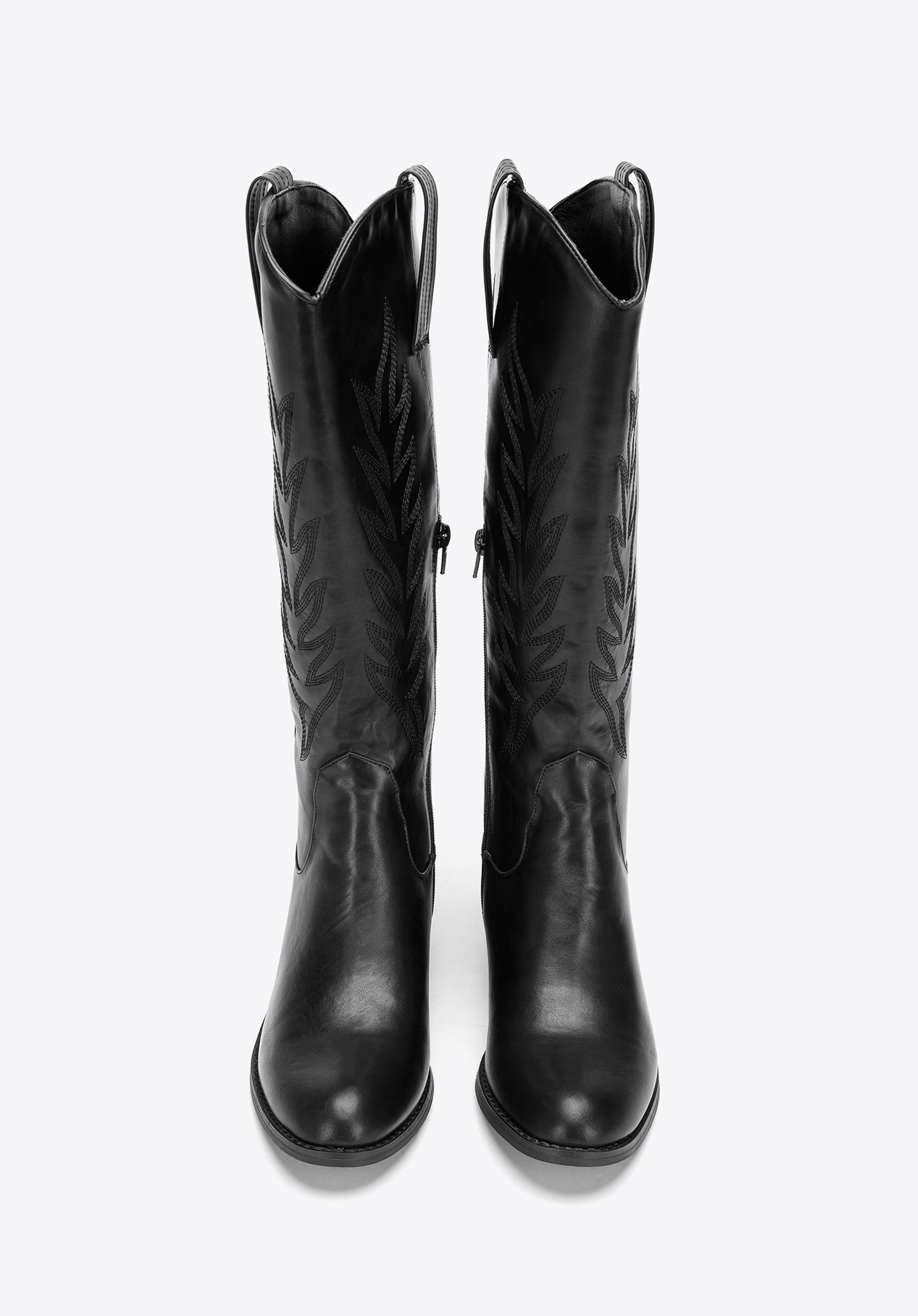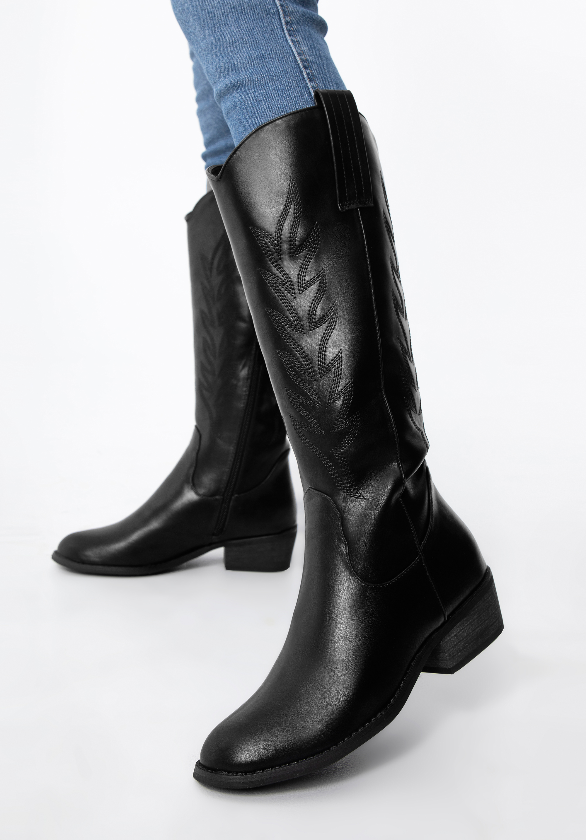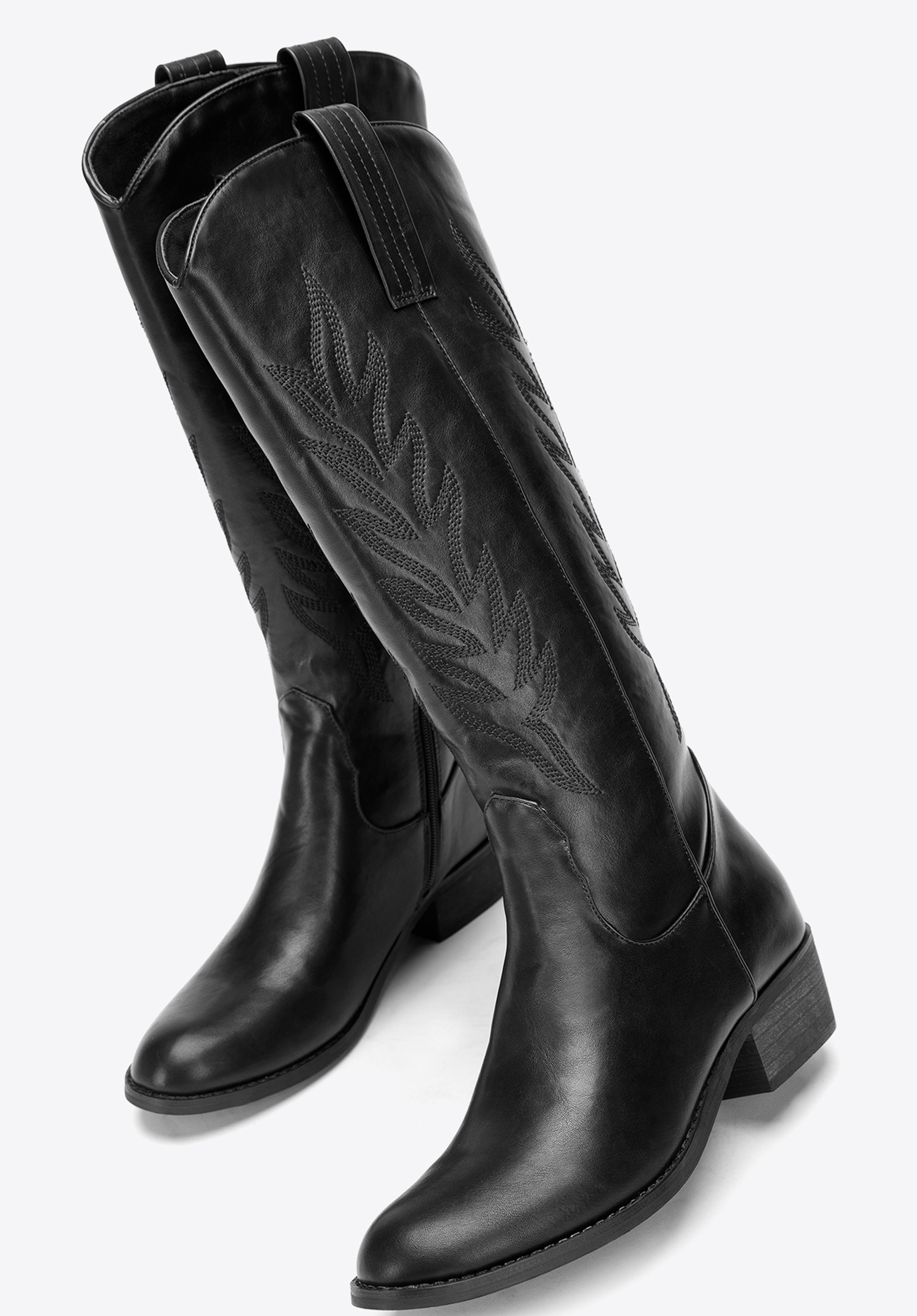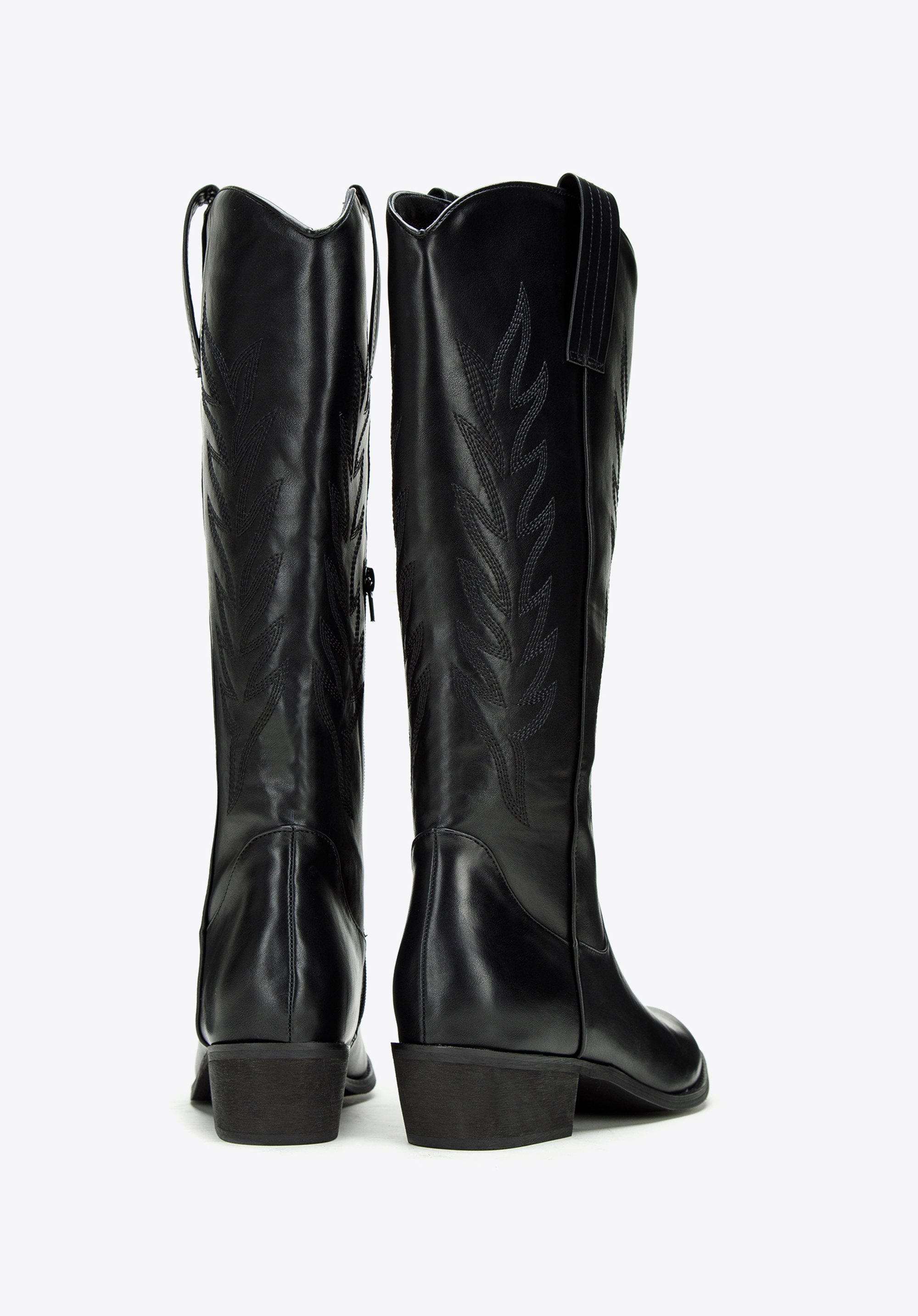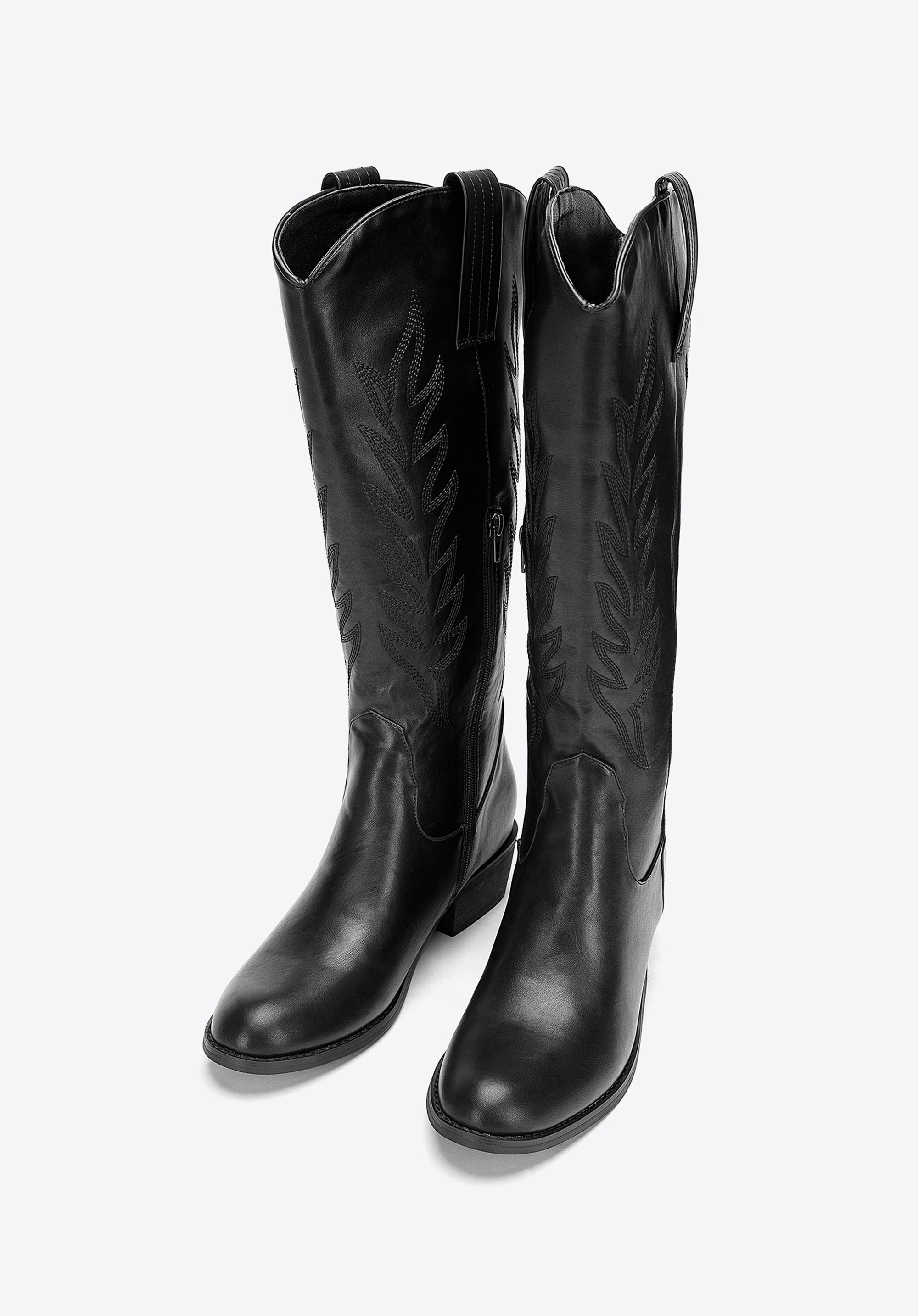 Damskie kowbojki z haftem wysokie będą idealnym uzupełnieniem jesiennych i wiosennych zestawów inspirowanych stylem western. Wysoka cholewka z dekoracyjnym haftem, stabilny obcas i wygodny suwak zapewniają komfort noszenia oraz wyrazisty efekt wizualny.