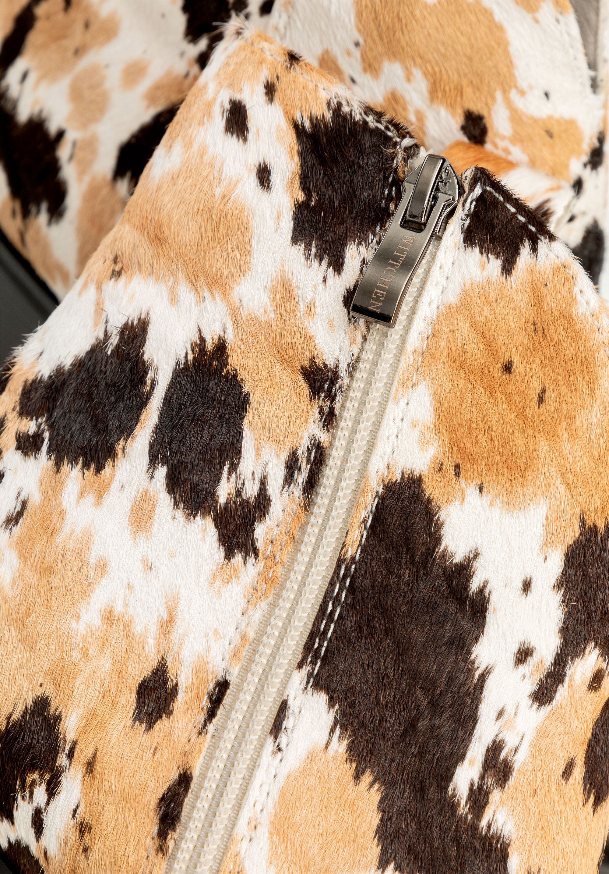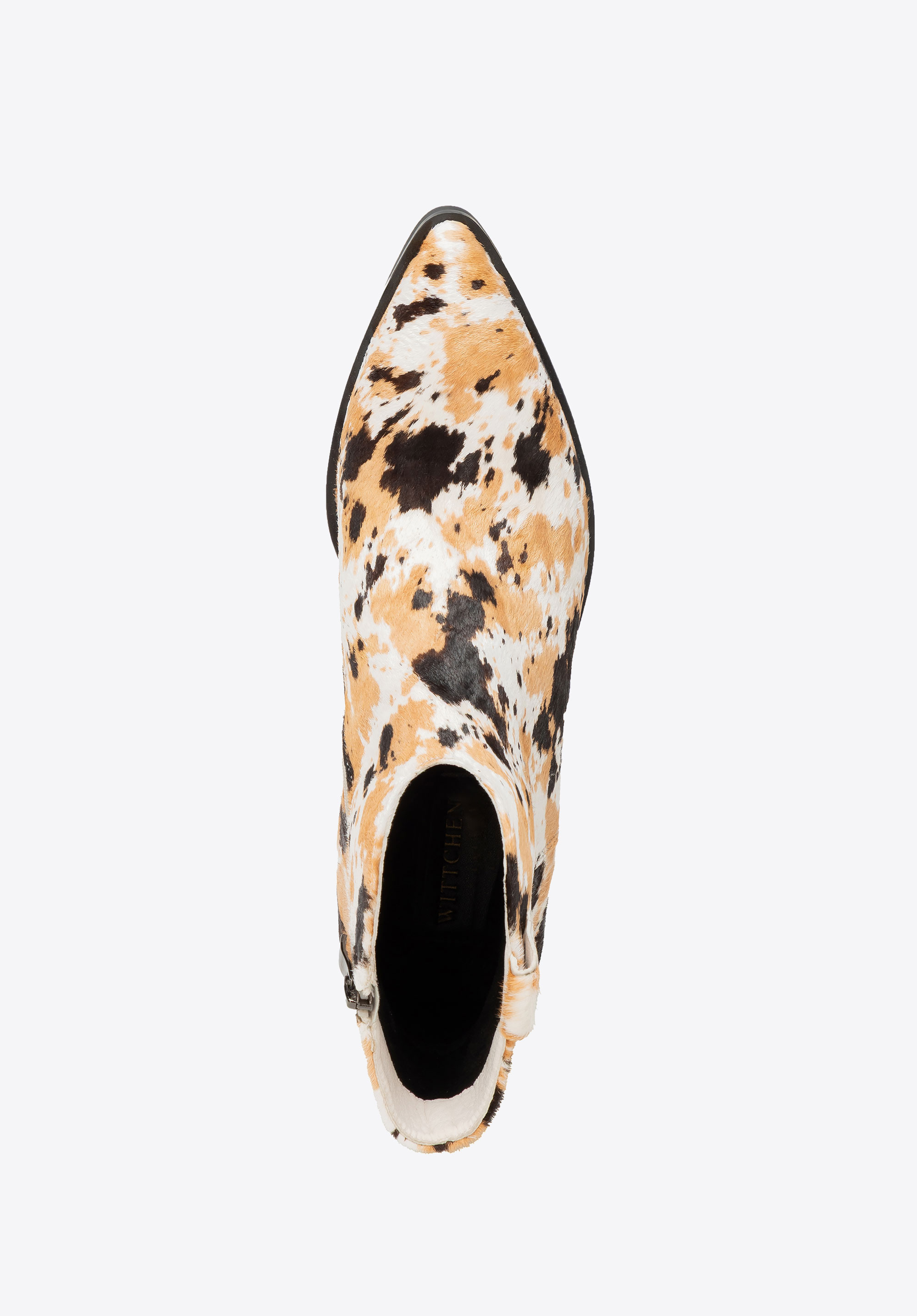 Odkryj kowbojki, które łączą klasyczny fason z nowoczesnym, przyciągającym wzrok wzorem krowich łat. Wykonane z naturalnego włosia, przyciągają spojrzenia unikalnym designem, a szpiczasty nosek dodaje im charakterystycznego, modowego pazura. Miękka wkładka i wyściółka z przyjemnego materiału gwarantują komfort noszenia przez cały dzień, a zamek od wewnętrznej strony ułatwia szybkie zakładanie i zdejmowanie.