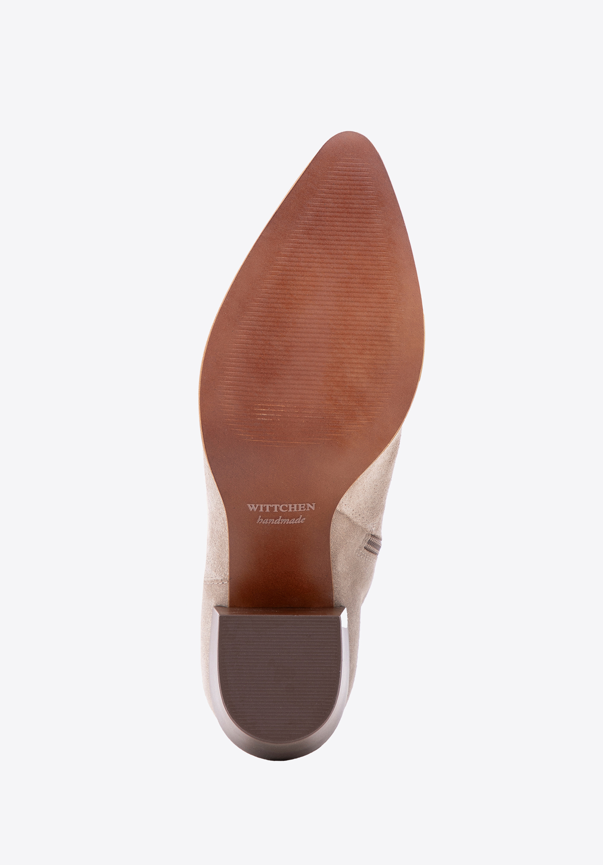 - Zapięcie: Kowbojki wyposażone są w praktyczne zapięcie – wsuwana konstrukcja z zamkiem sięgającym do połowy łydki, co zapewnia łatwe i szybkie zakładanie oraz stabilność.