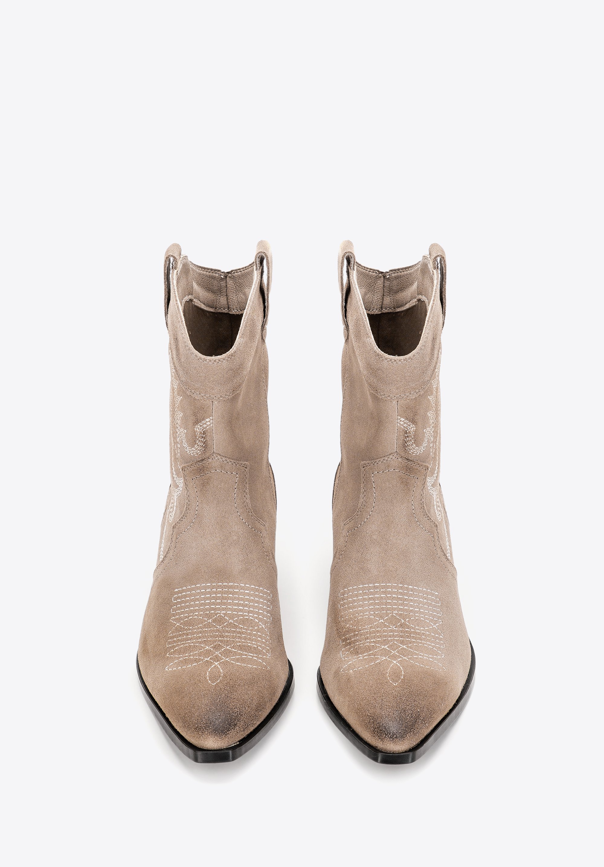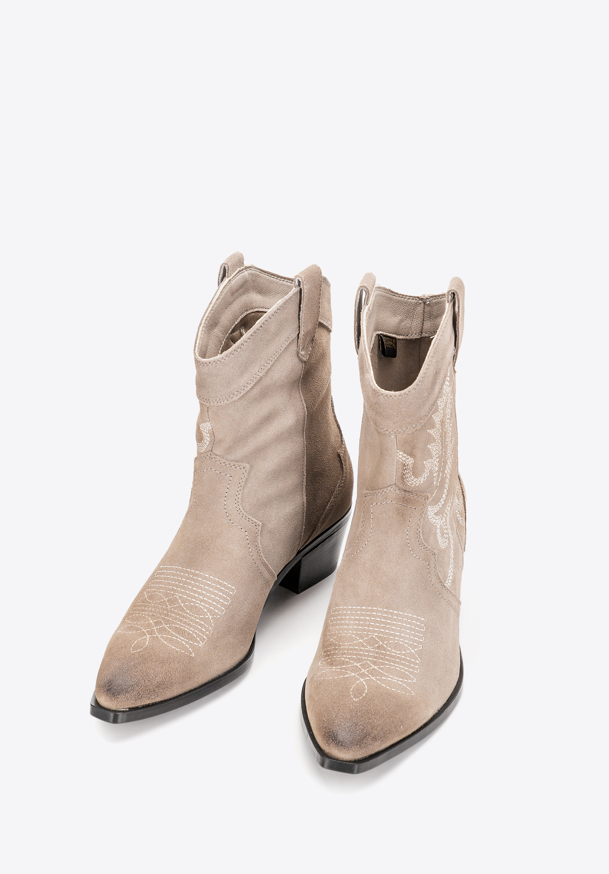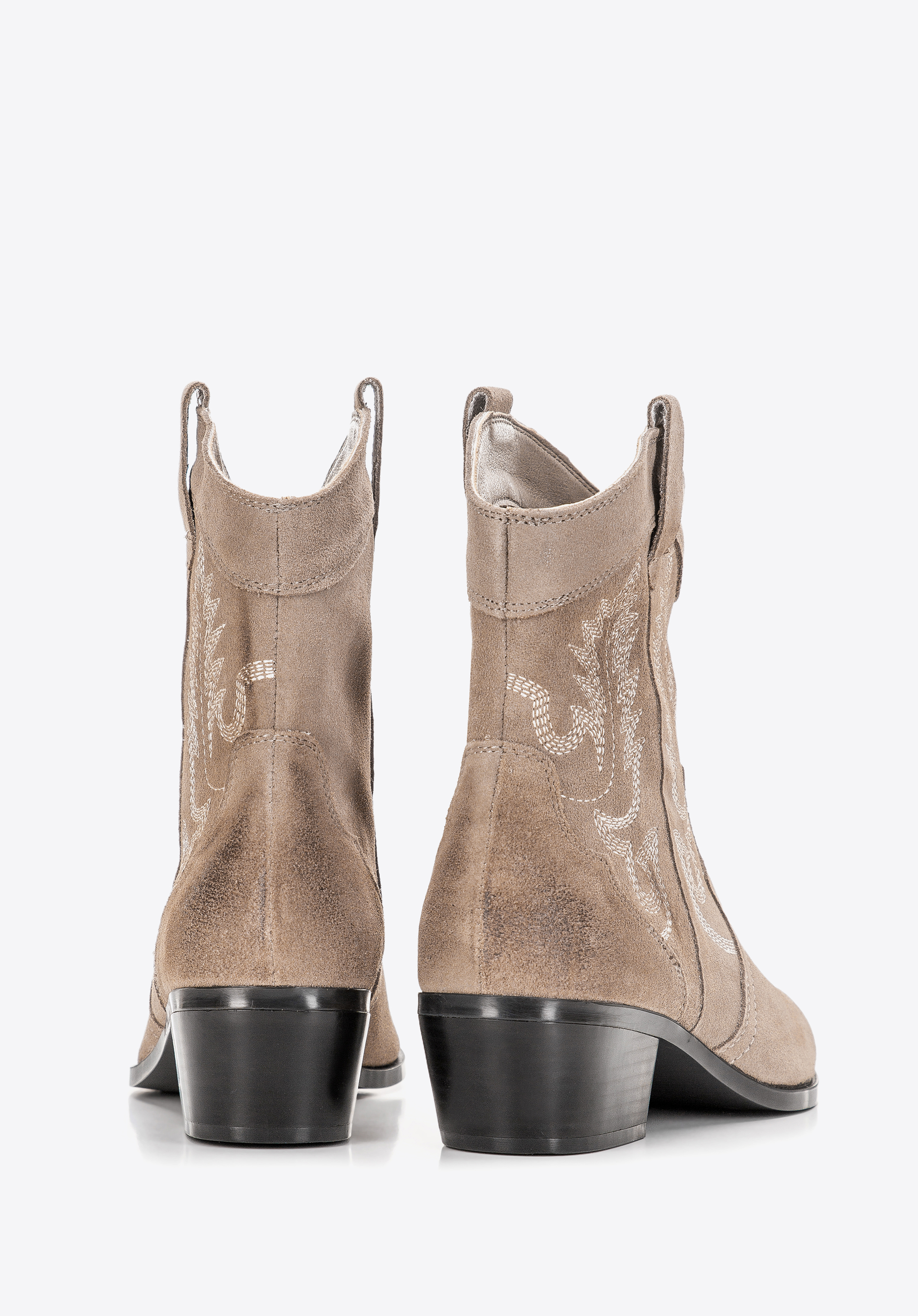 damskie kowbojki zamszowe z haftem możesz nosić zamiennie z ulubionymi botkami, dodadzą charakteru każdej Twojej stylizacji.
