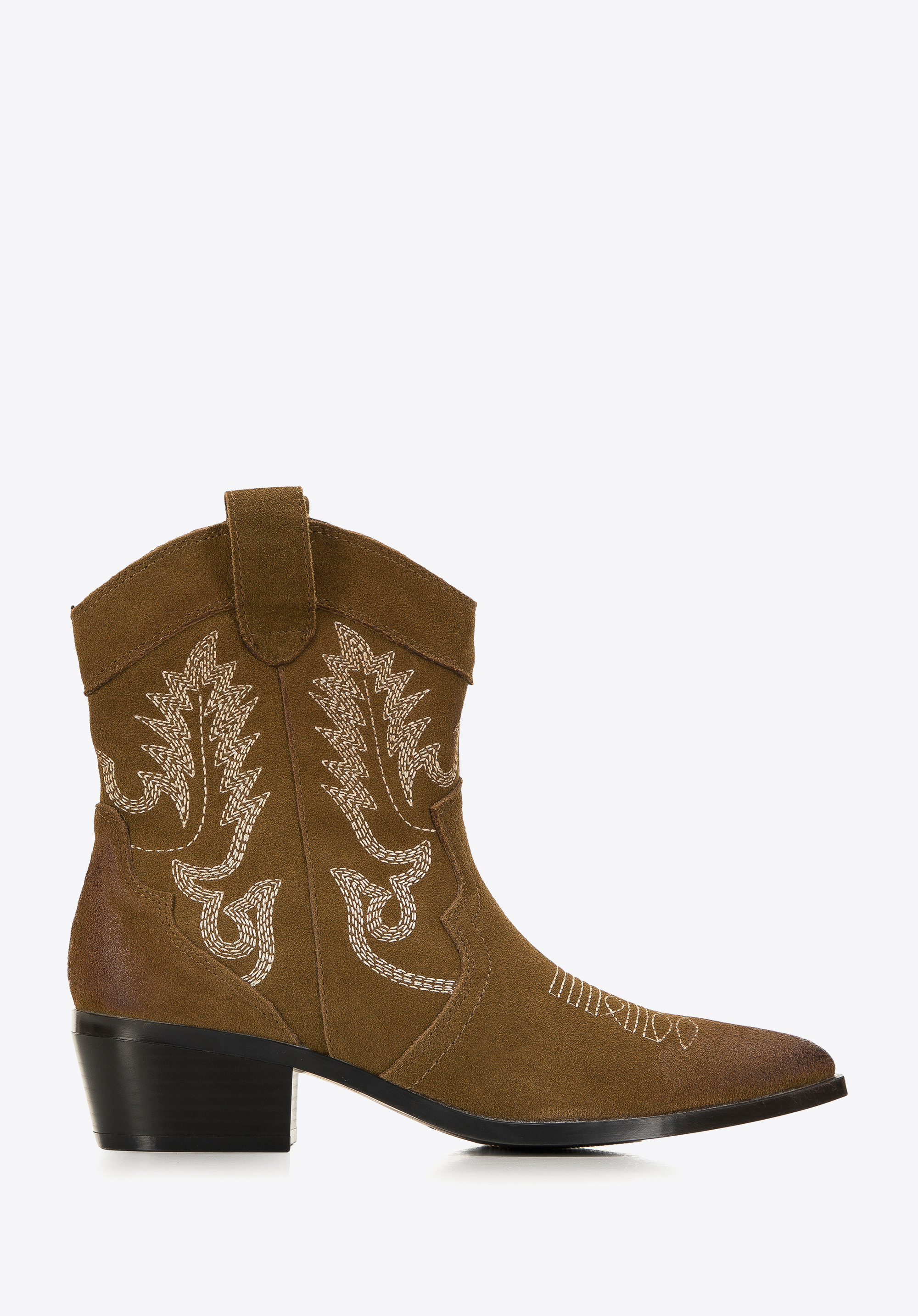 damskie kowbojki zamszowe z haftem możesz nosić zamiennie z ulubionymi botkami, dodadzą charakteru każdej Twojej stylizacji.
